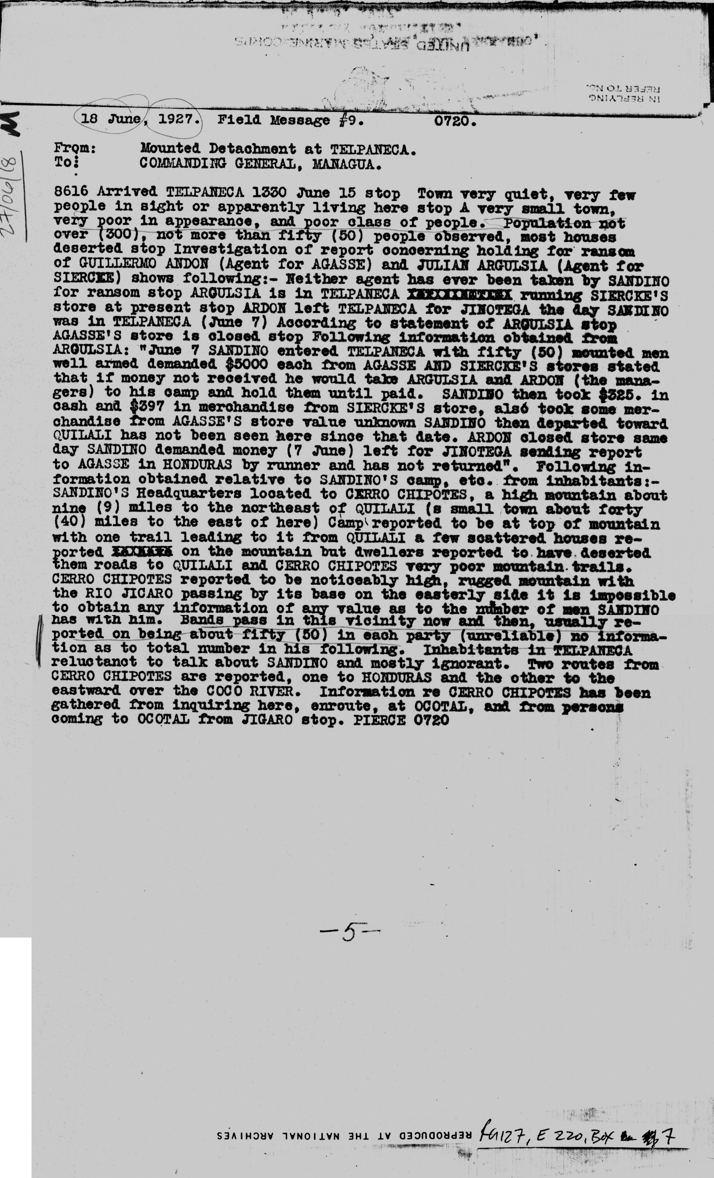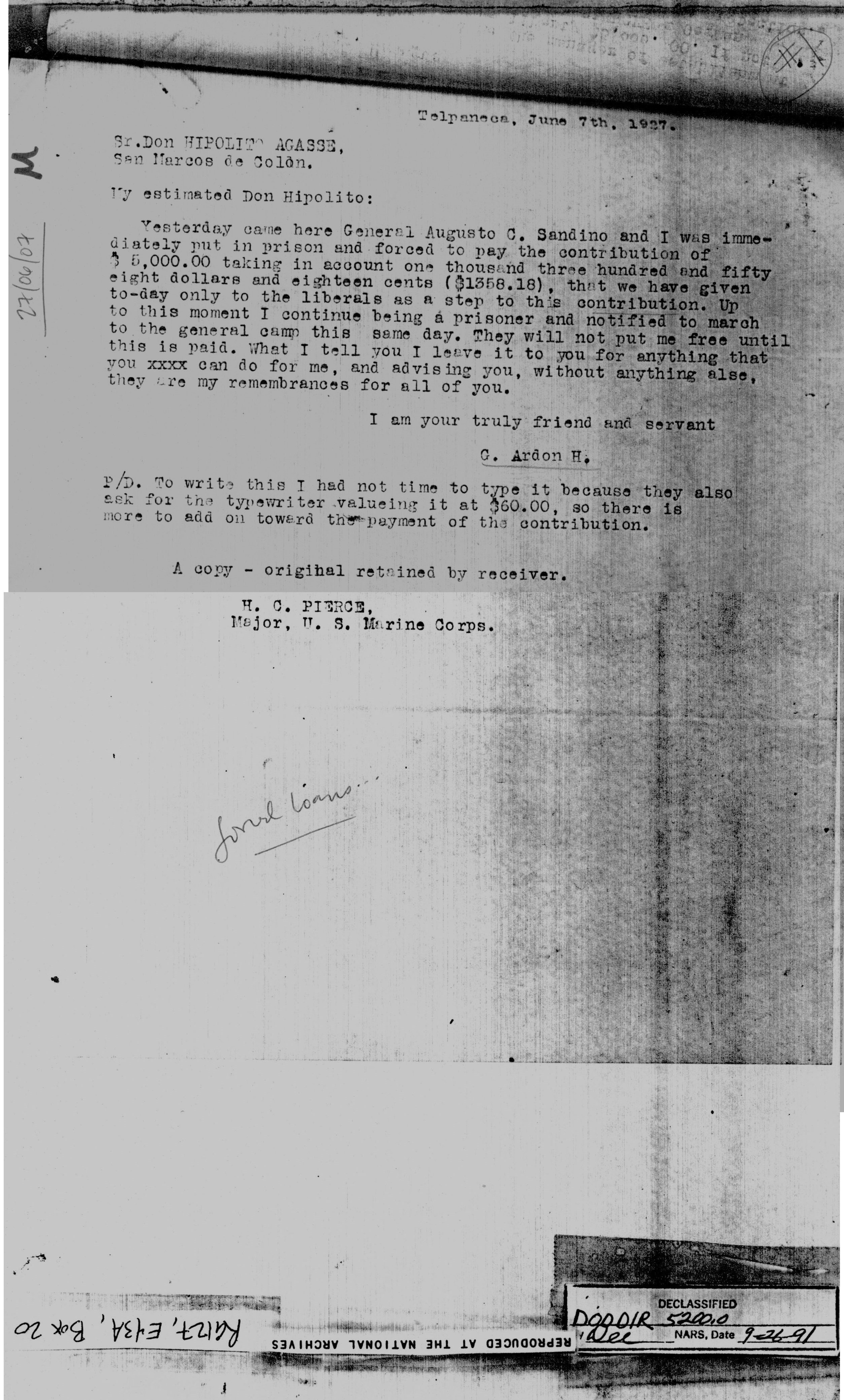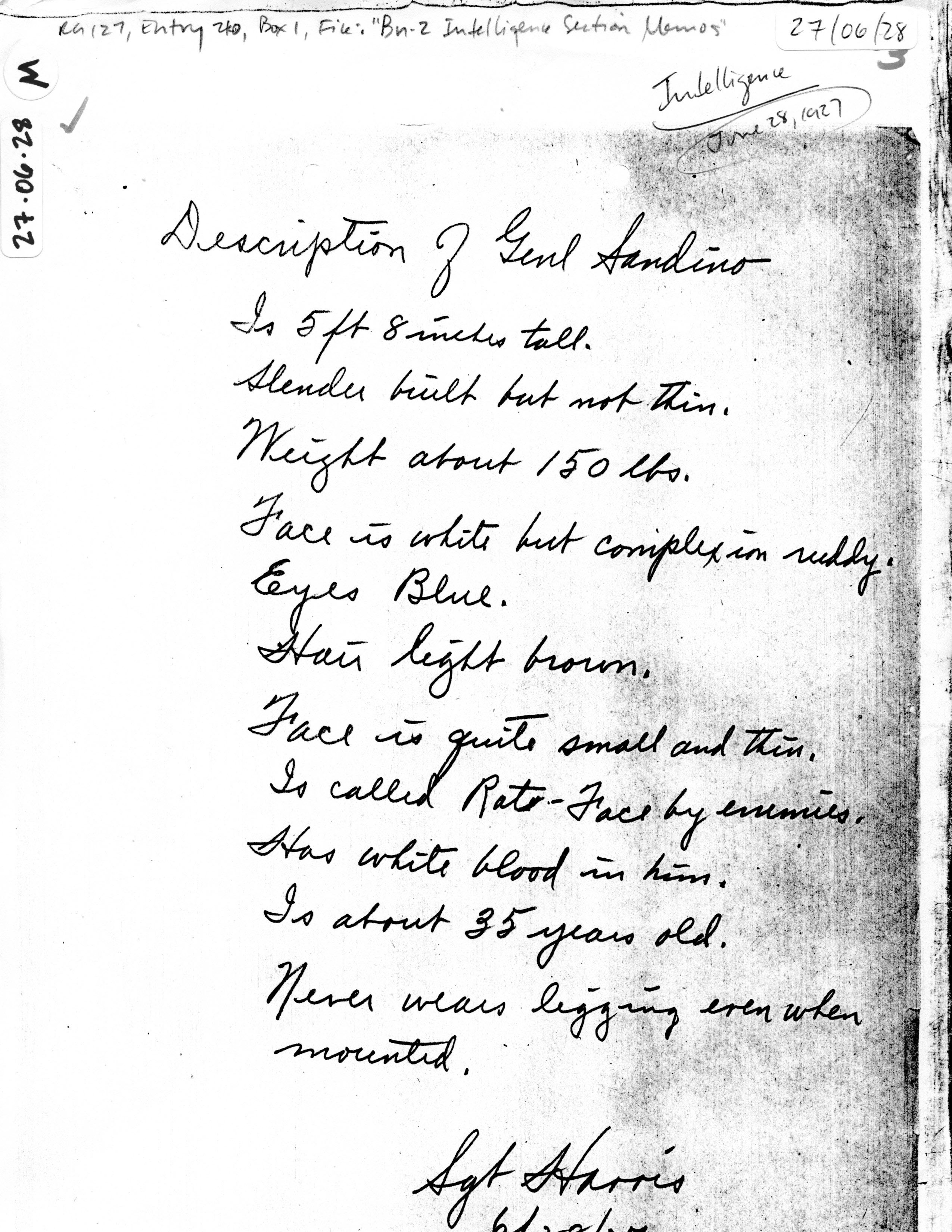 Gen'l Sandino," Sgt. Harris.