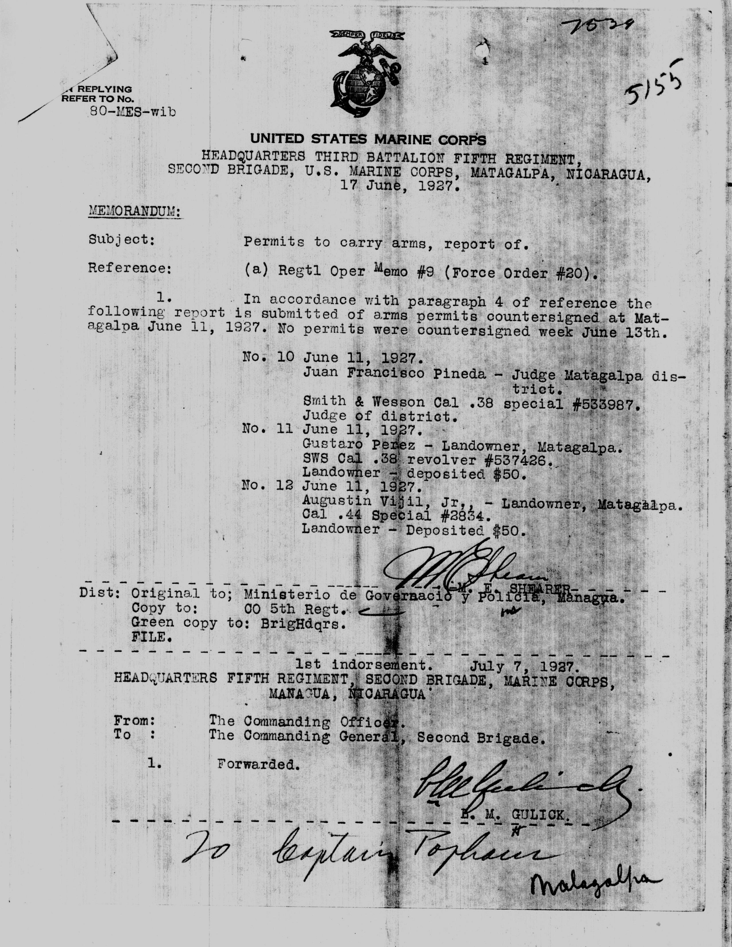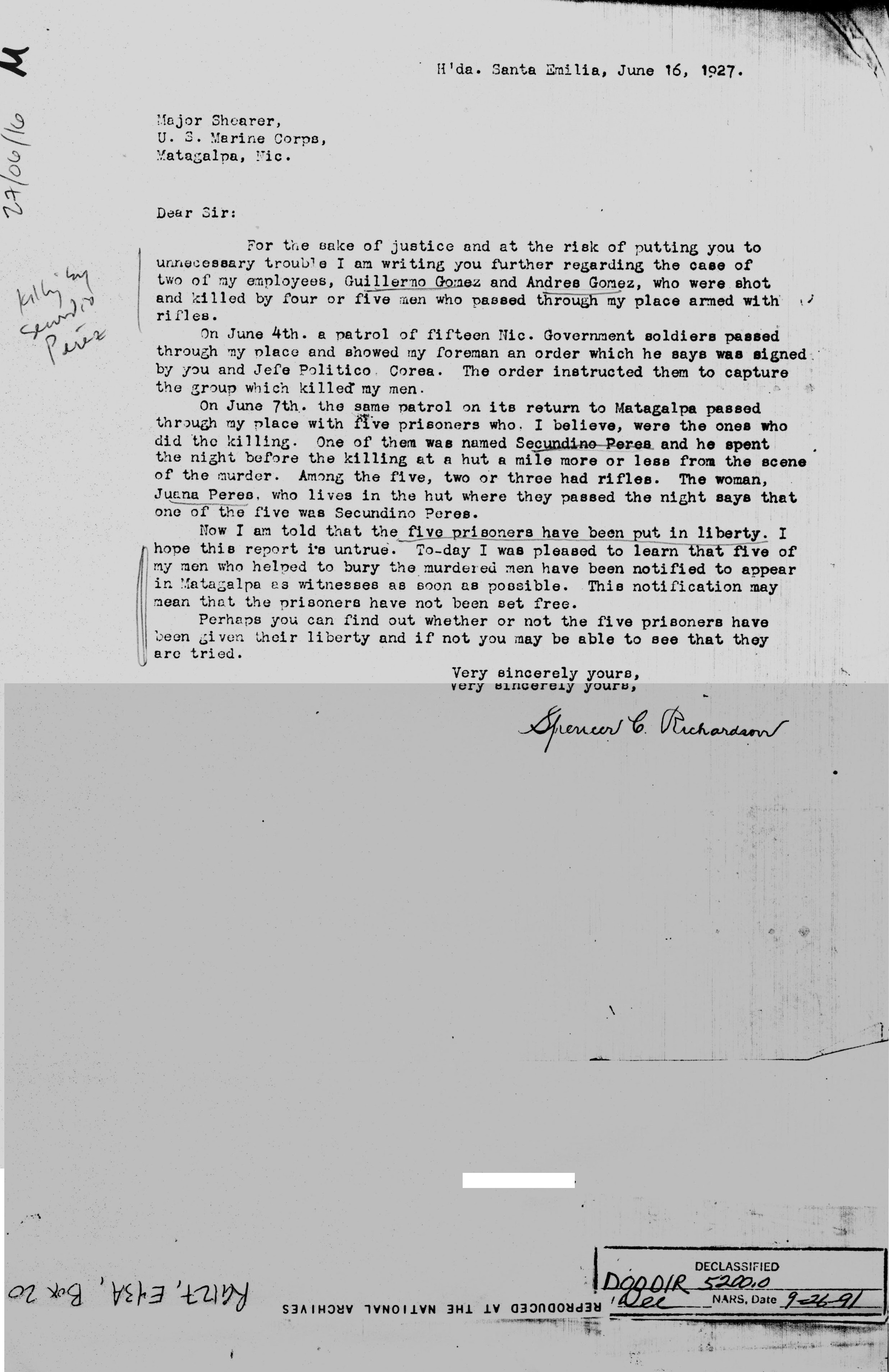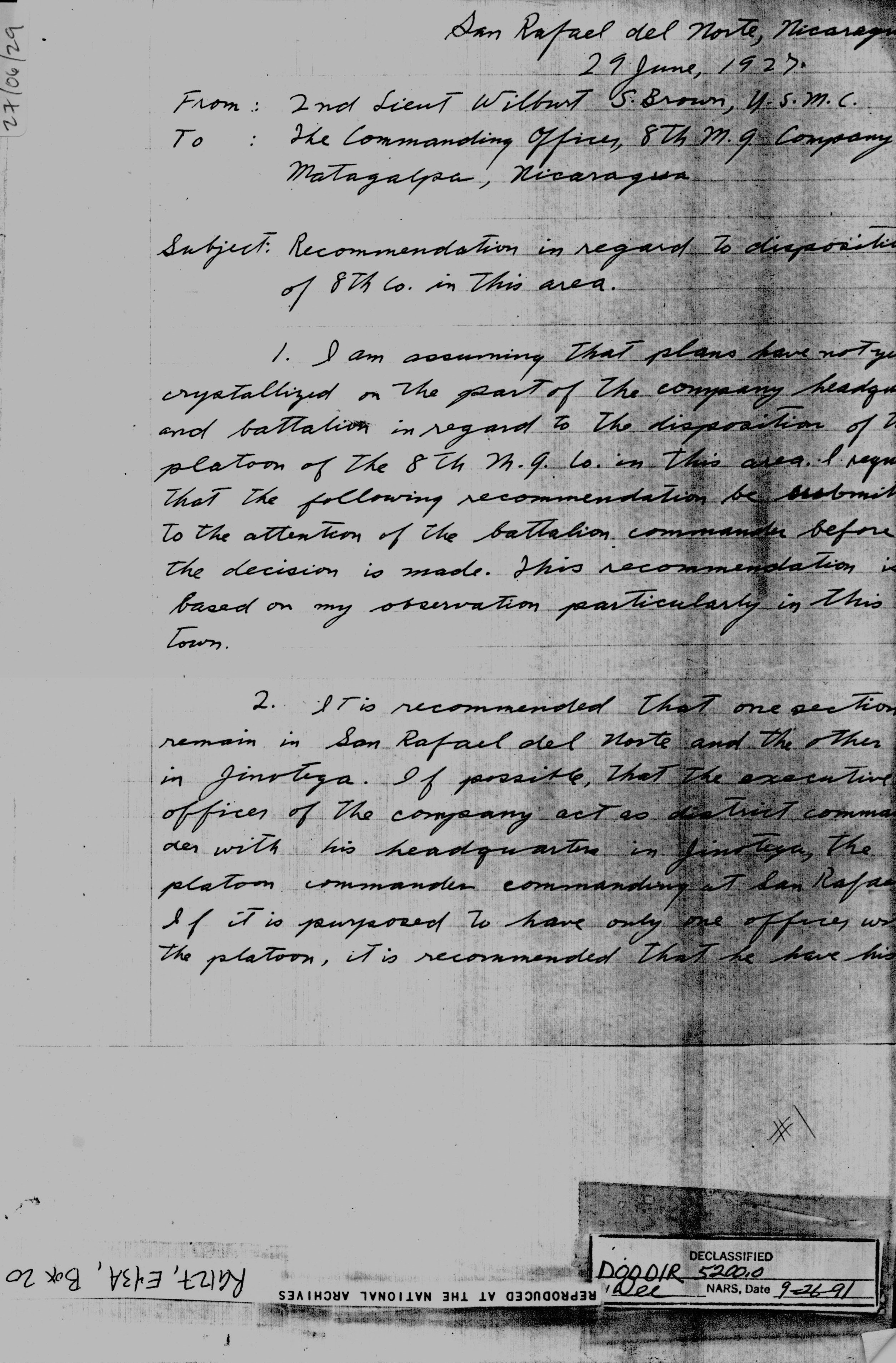 Gen'l Sandino," Sgt. Harris.