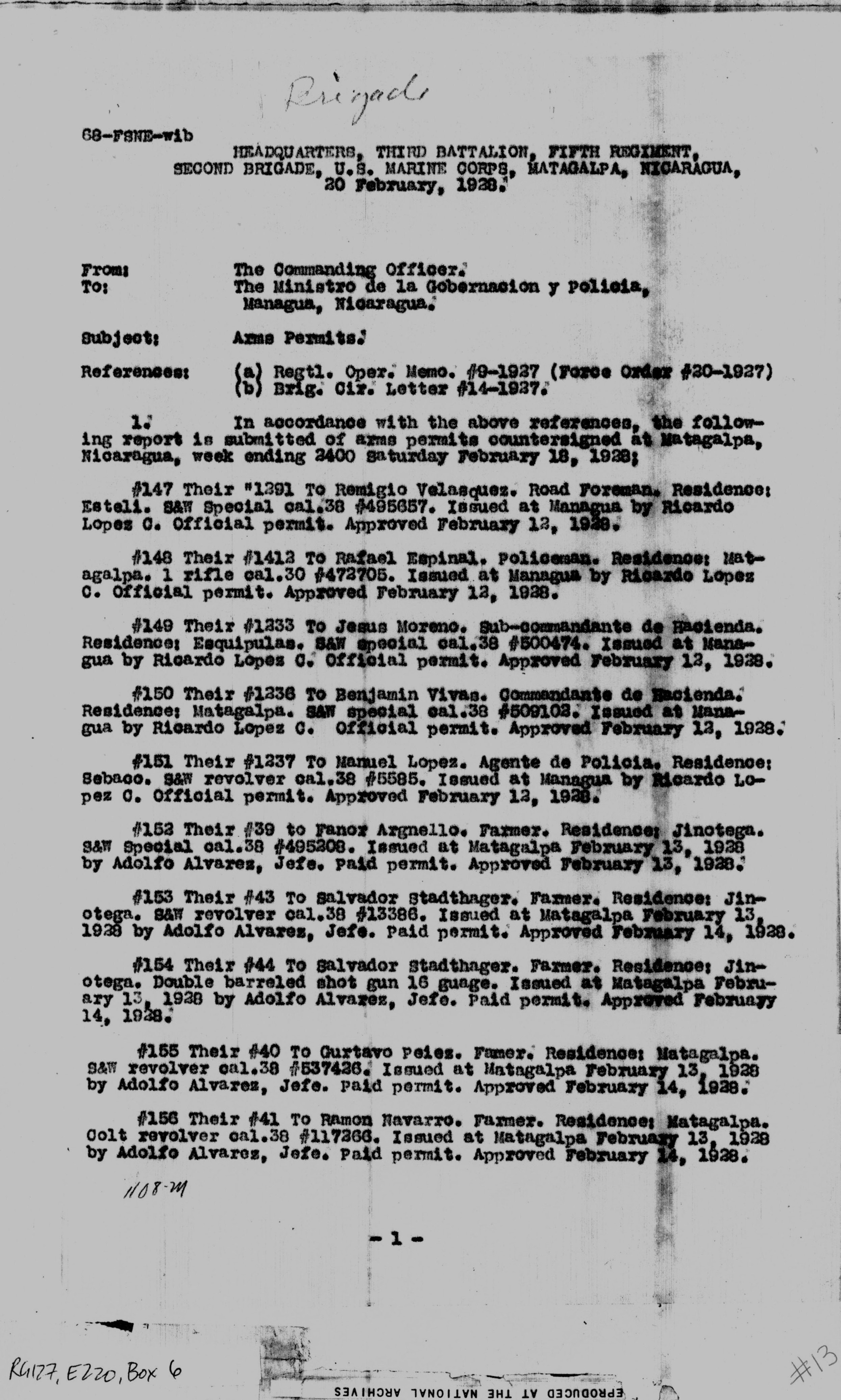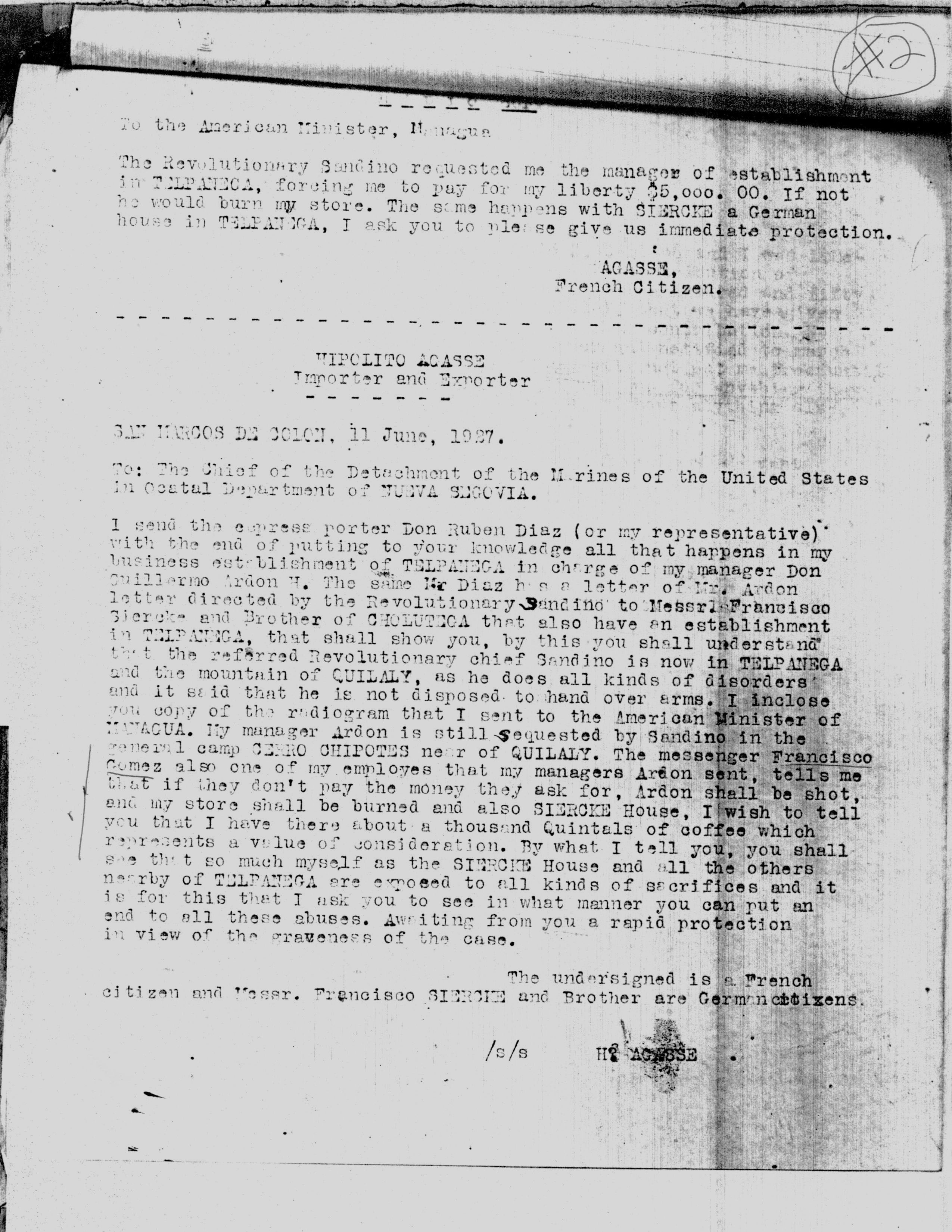 M.G. Company, Matagalpa, p. 1.