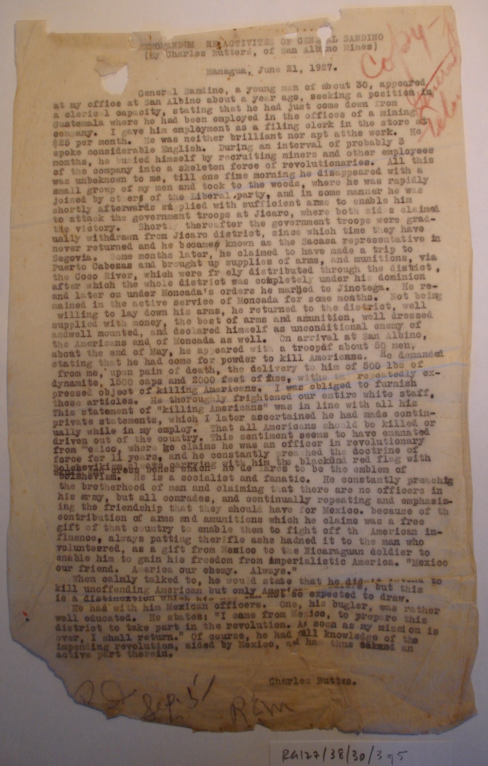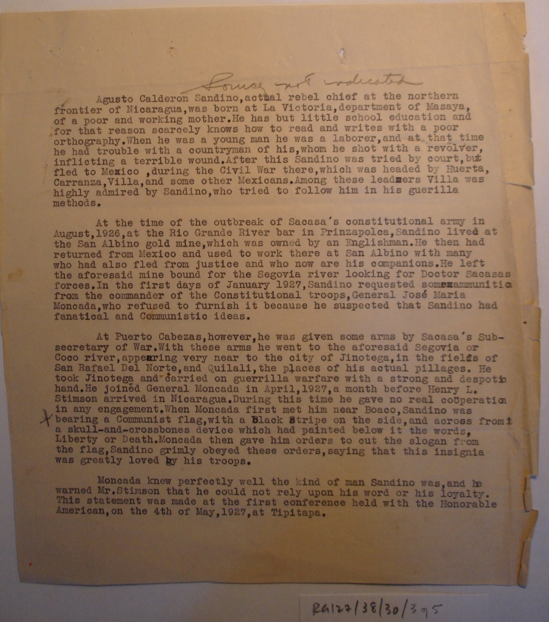 as being with Sandino," GN-2 notes.