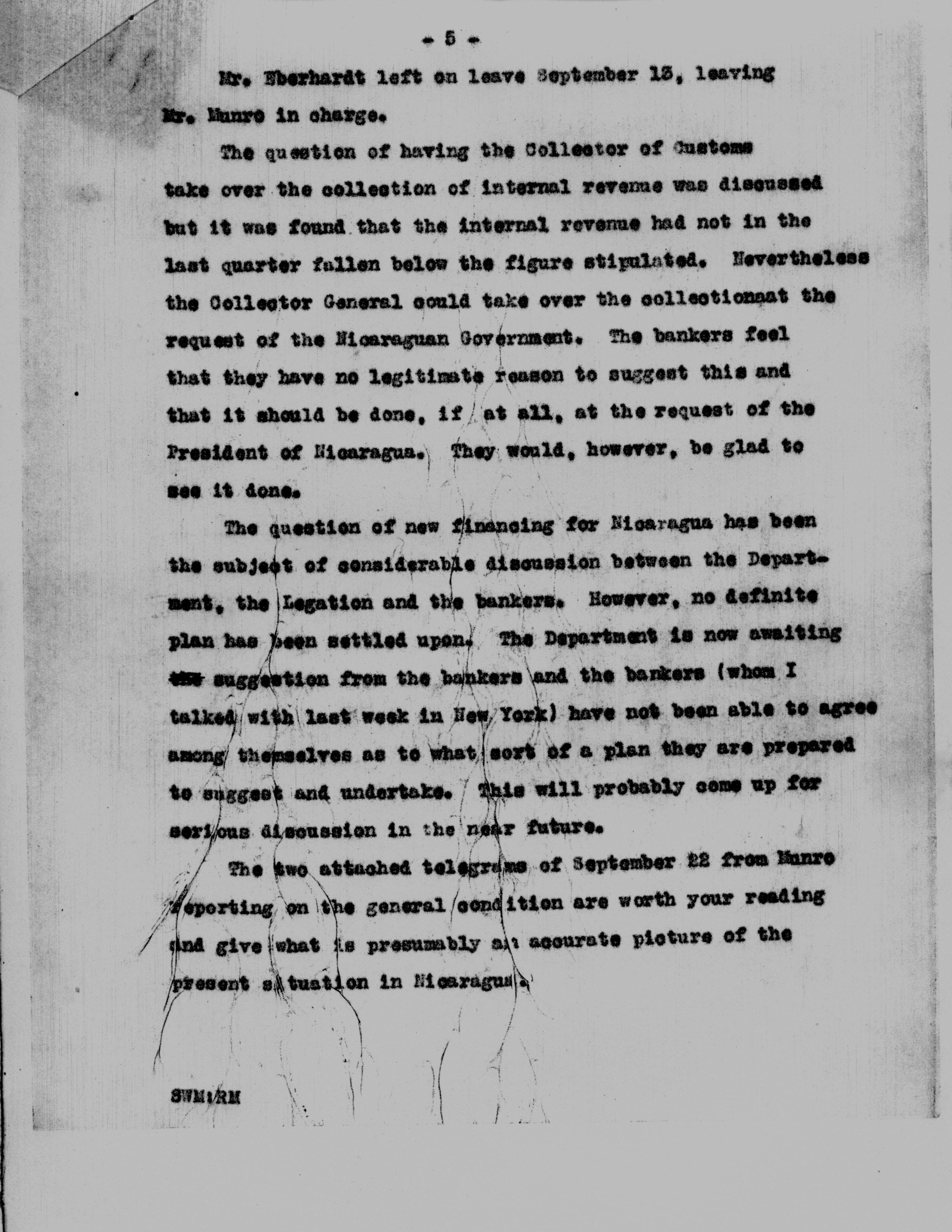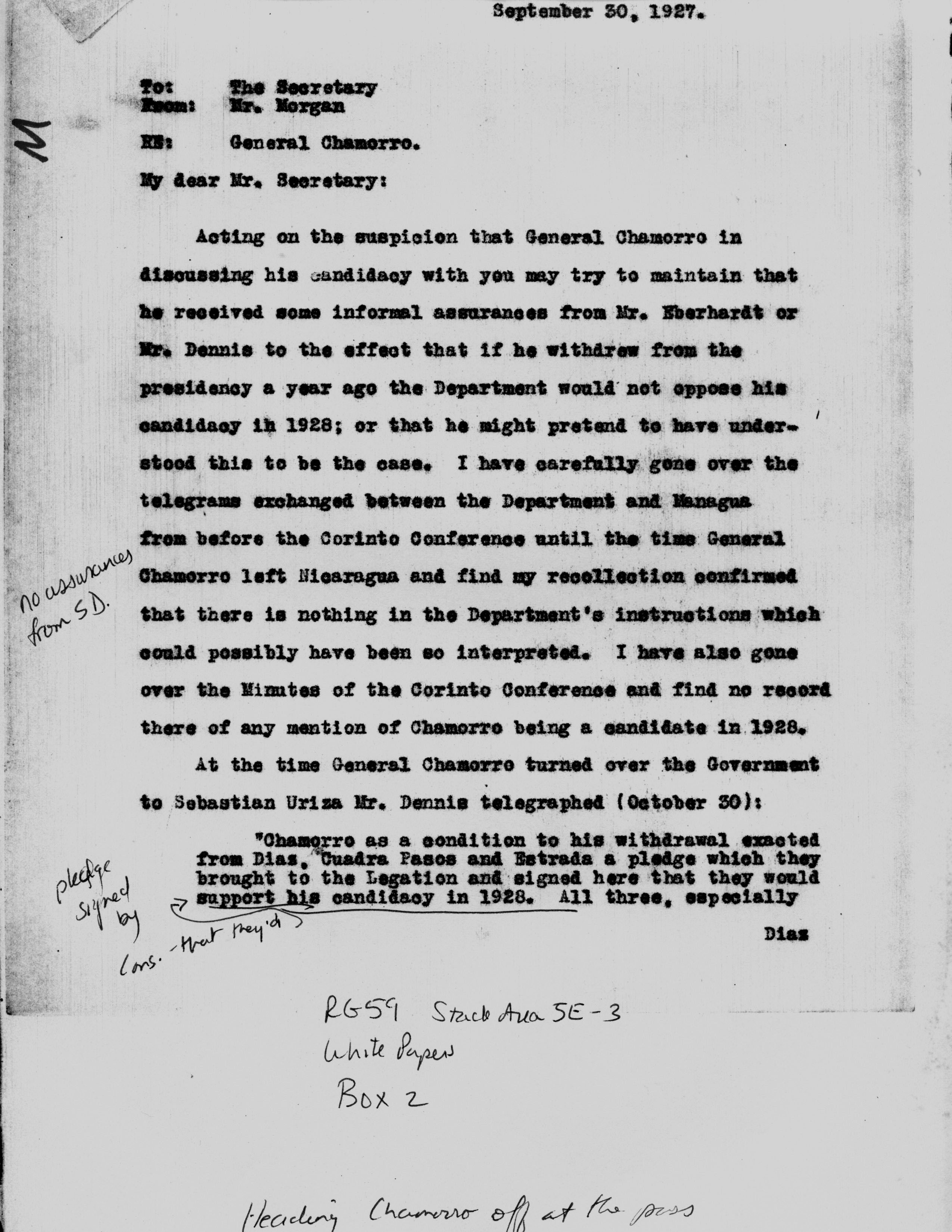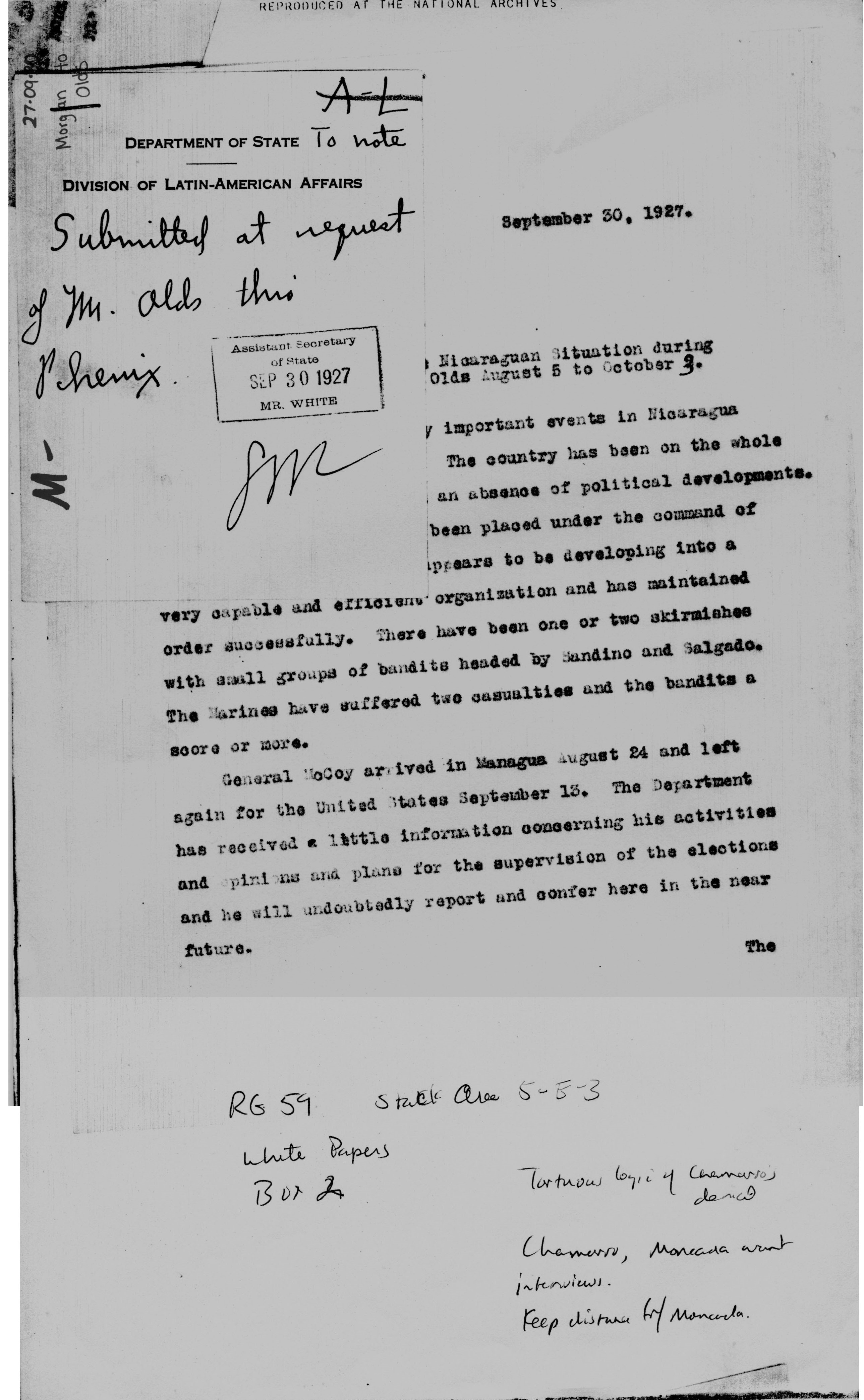 6 Sept., 1927. ¶ To Major Erskine, U.S.M.C., ¶