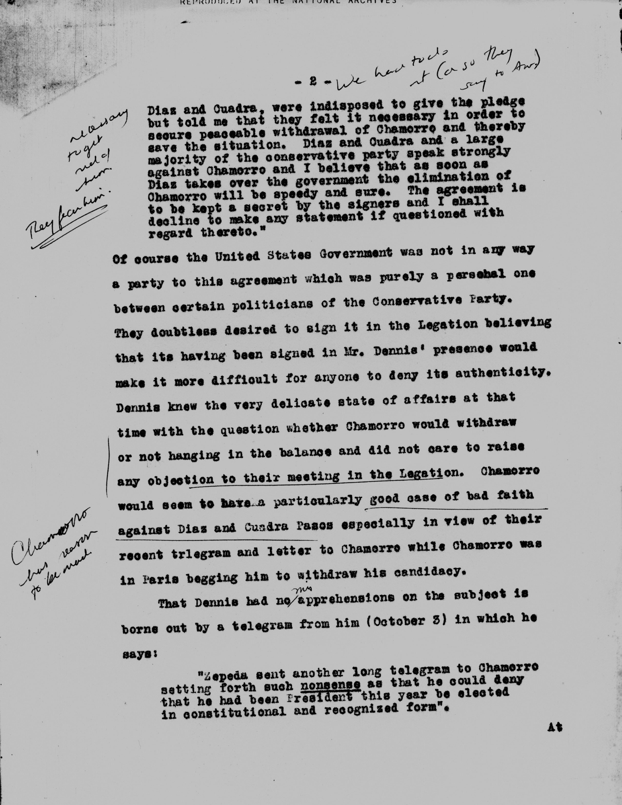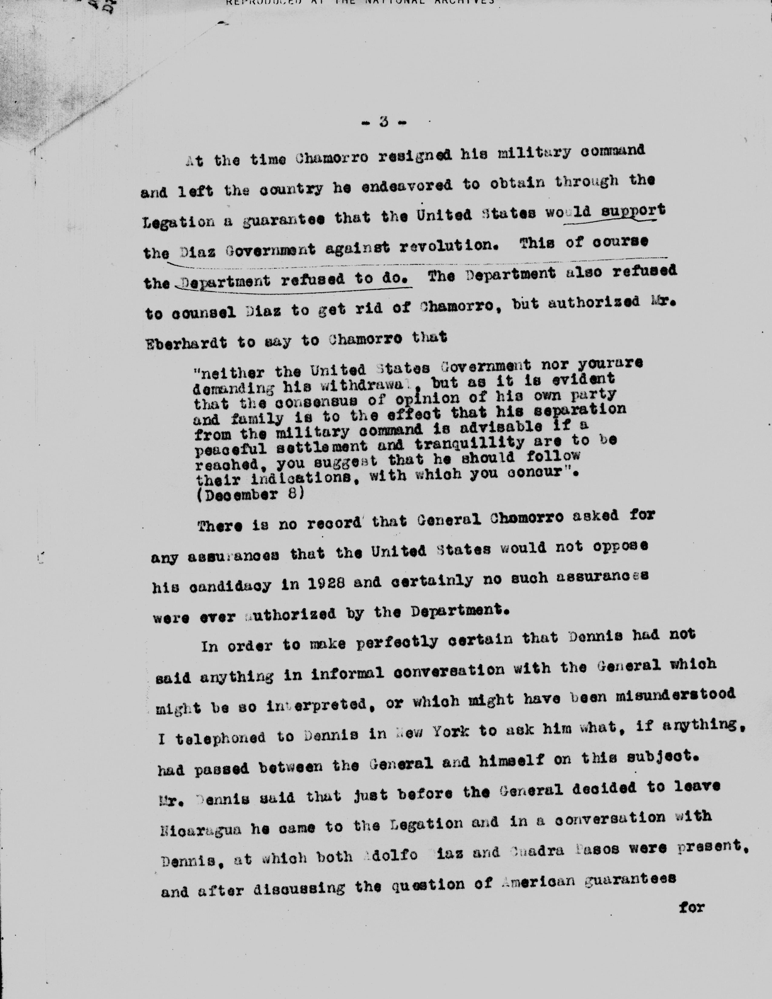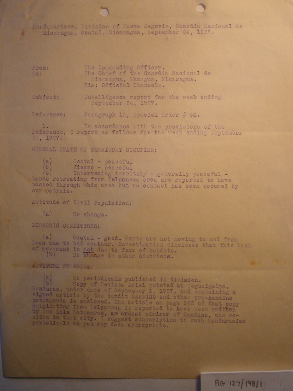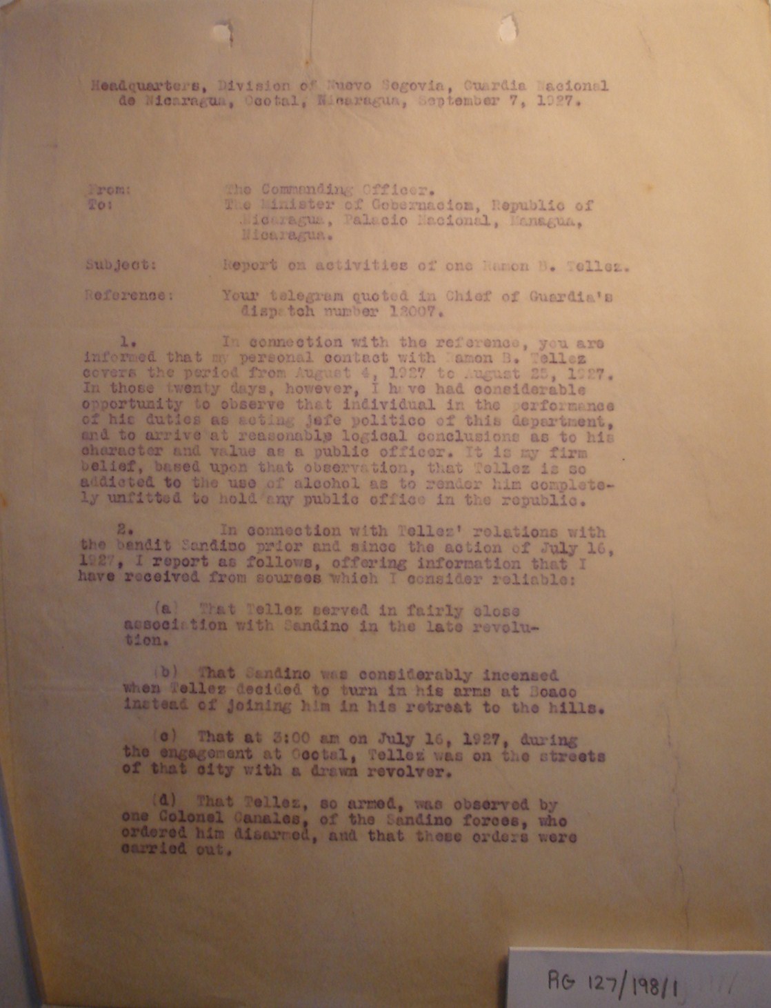 Incer O., Teustepe, to C.O., 5th Regt., Managua.