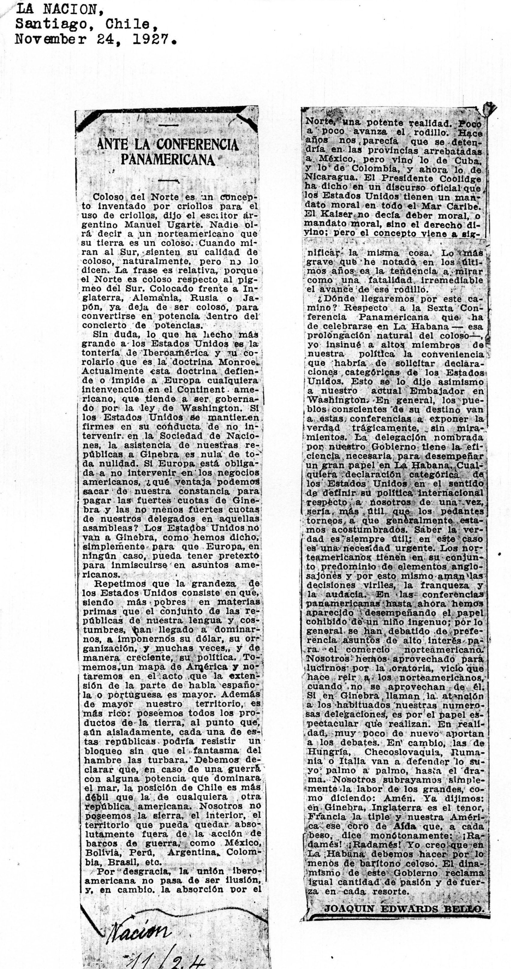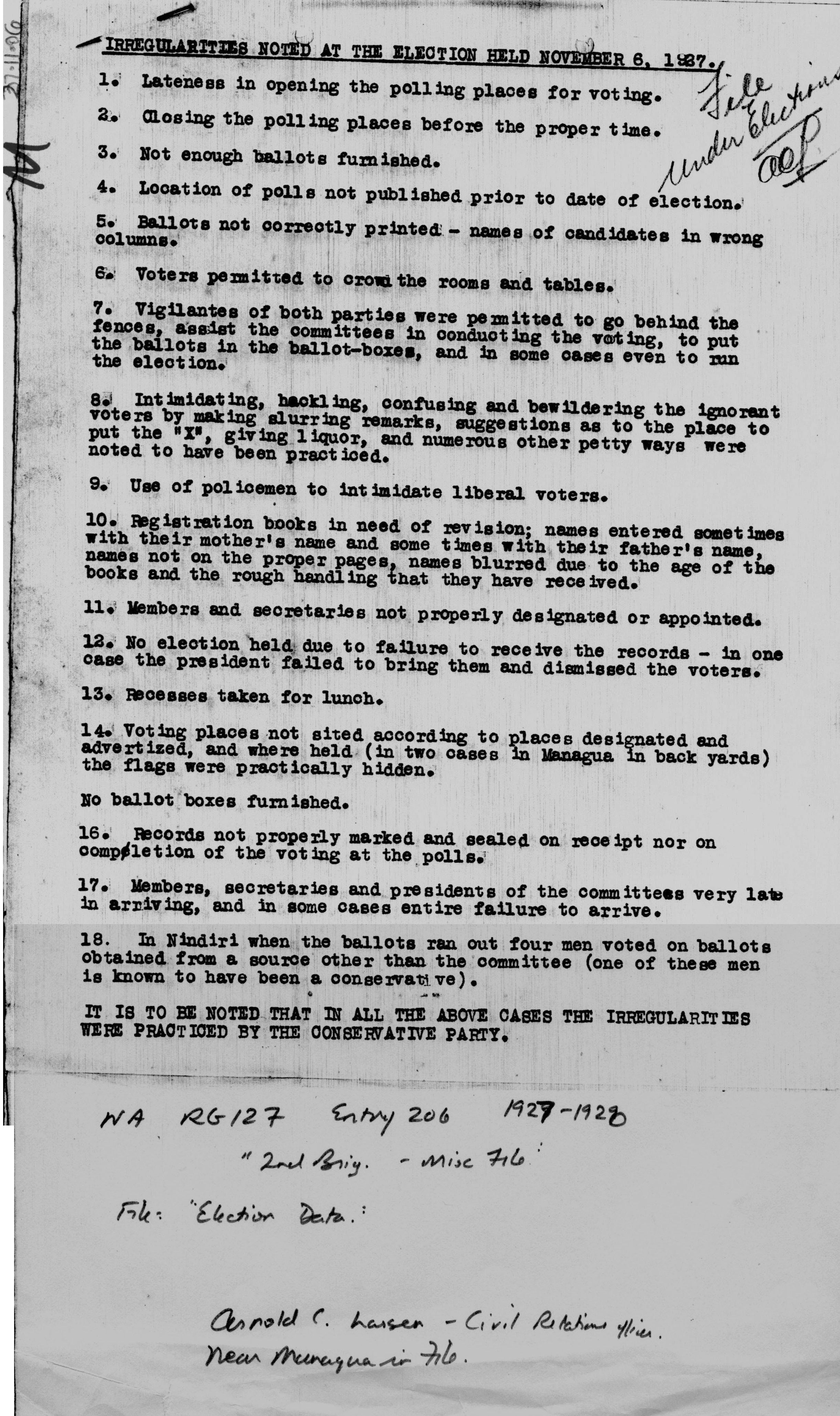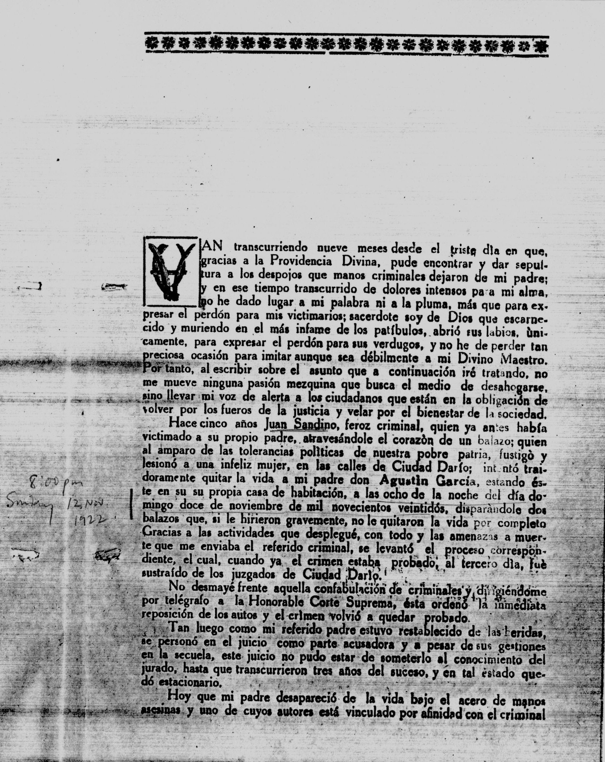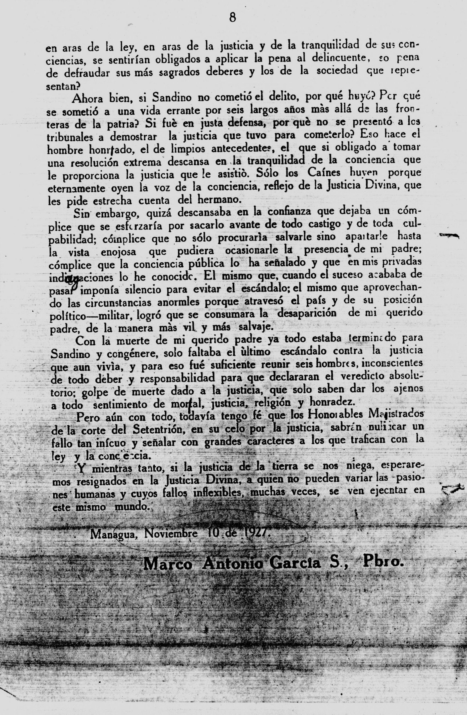 NUEVA SEGOVIA, NICARAGUA. ¶ 27 NOVEMBER 1927. ¶