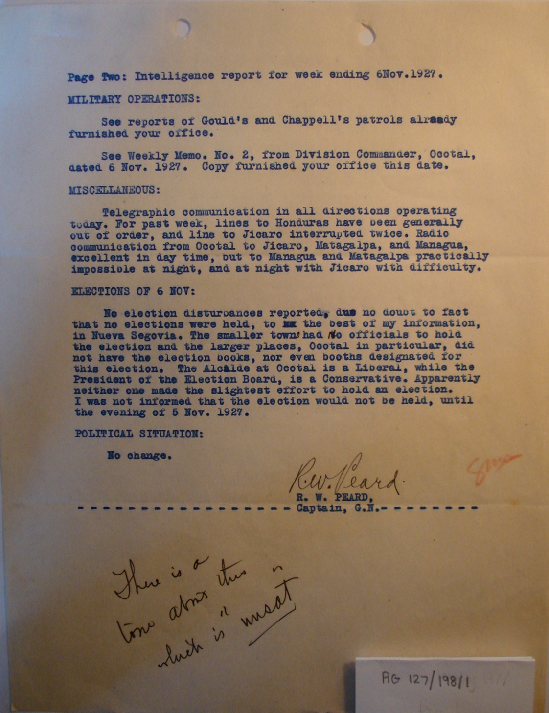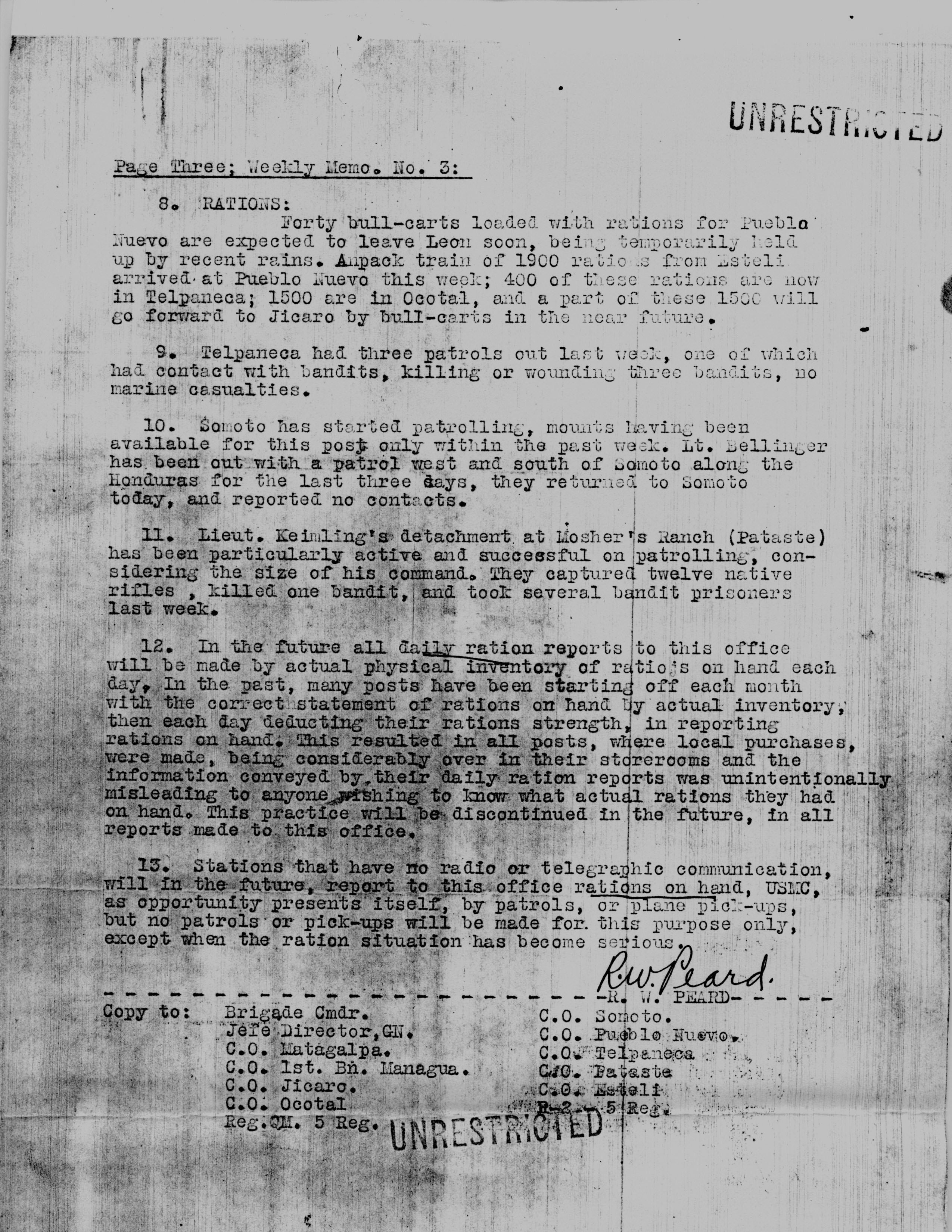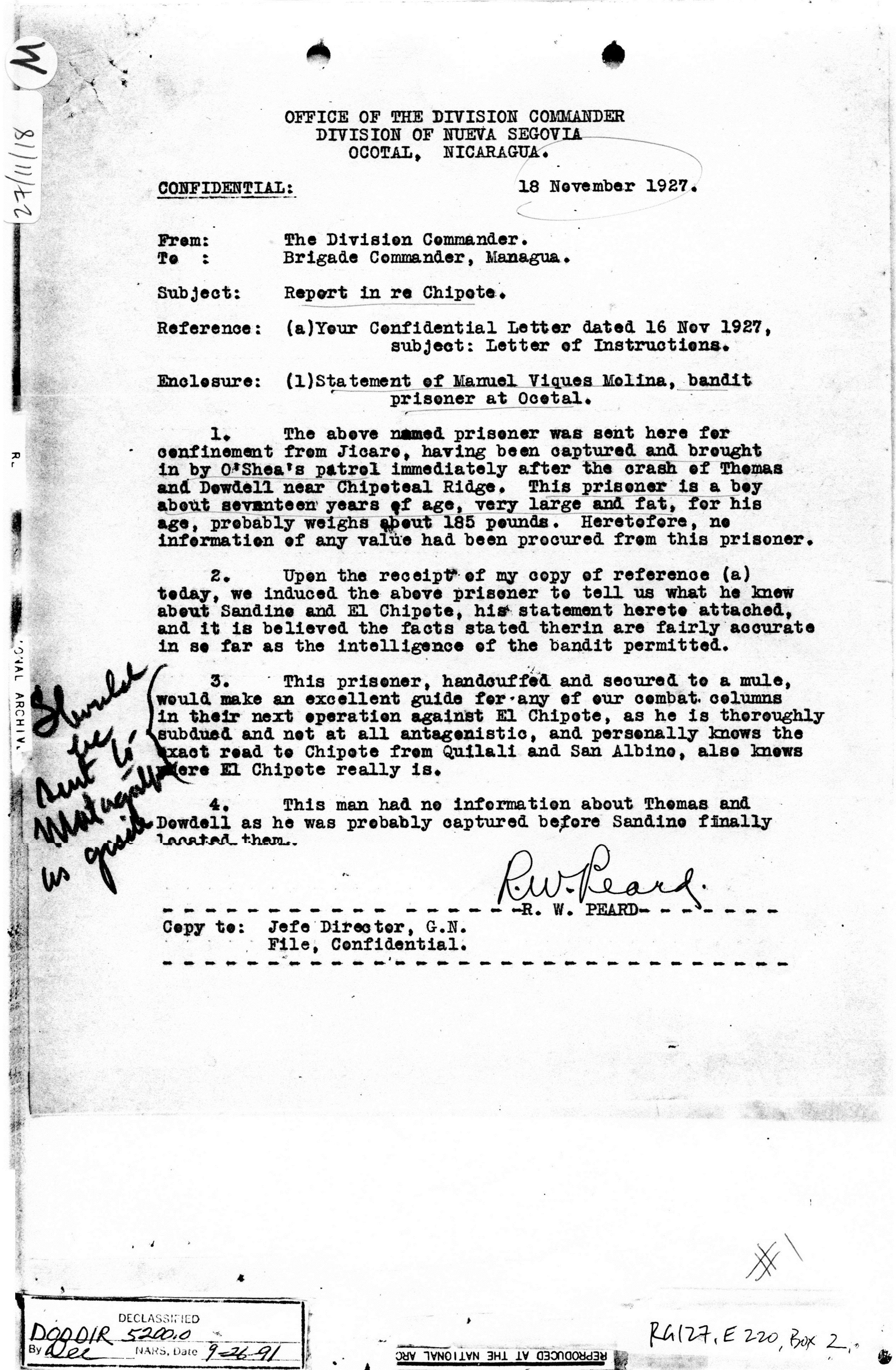 Memorandum No. 2, Major R. W. Peard, Ocotal, p.