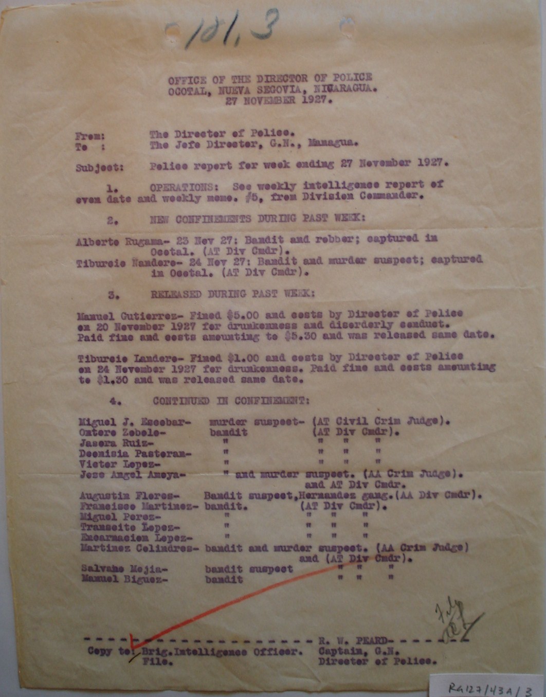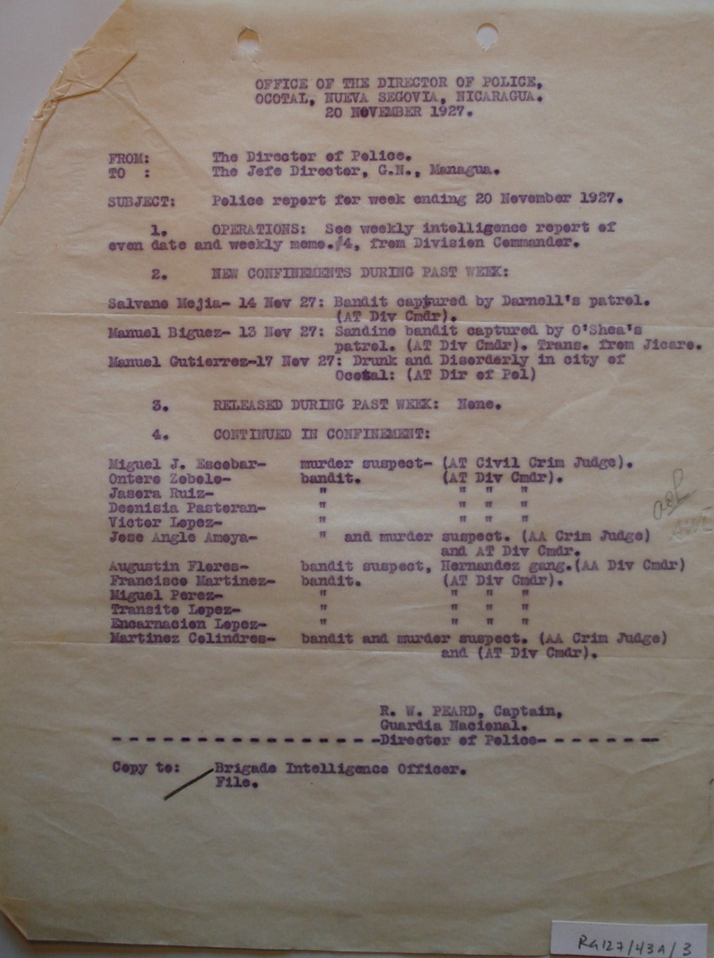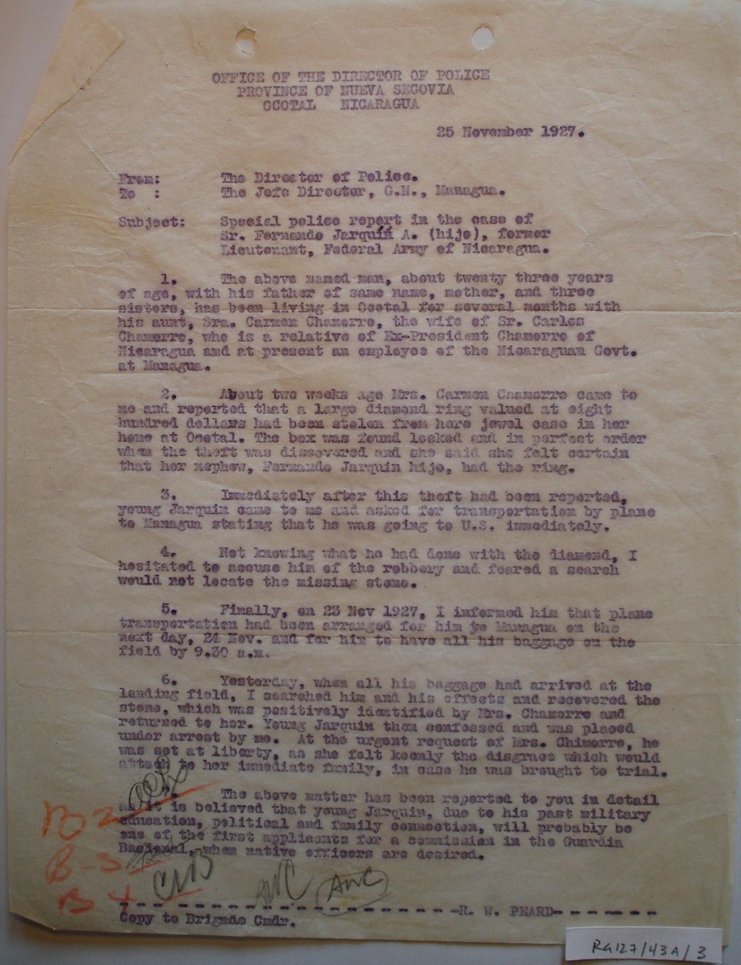 Director, G.N., Managua. ¶ Subject: Police