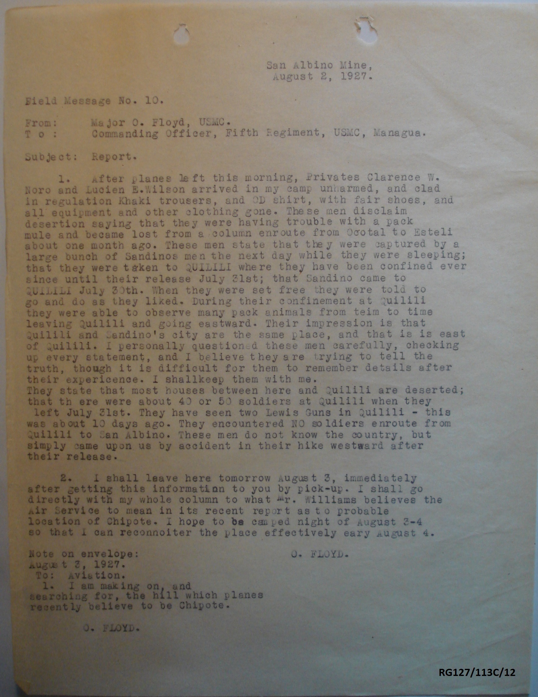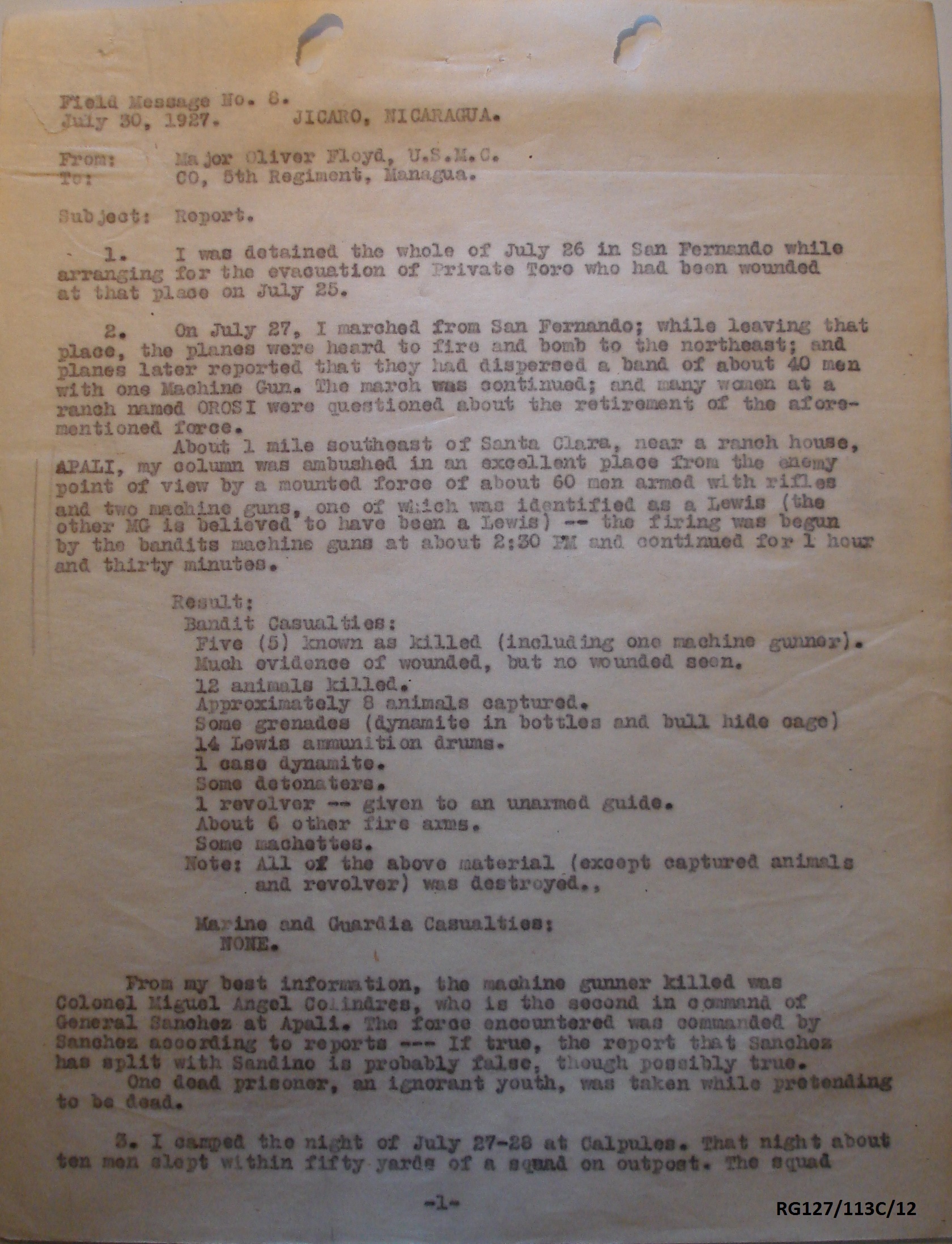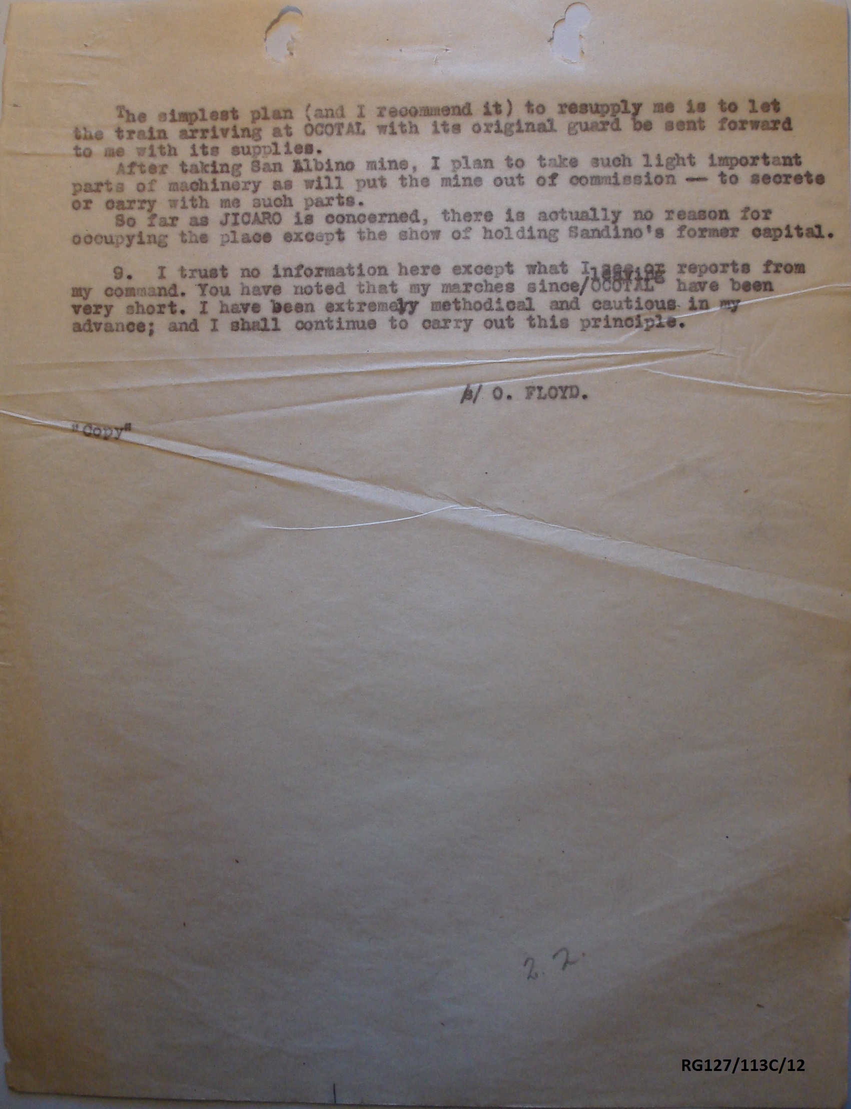 SANDINO IS AN ENEMY IN BEING UNTIL HE IS DEFINITELY