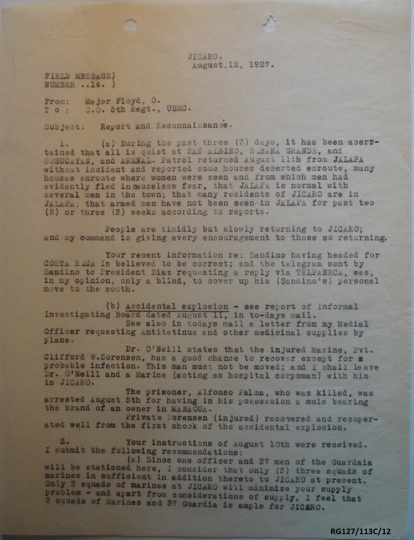HEADQUARTERS, SECOND BRIGADE MARINE CORPS, MANAGUA,