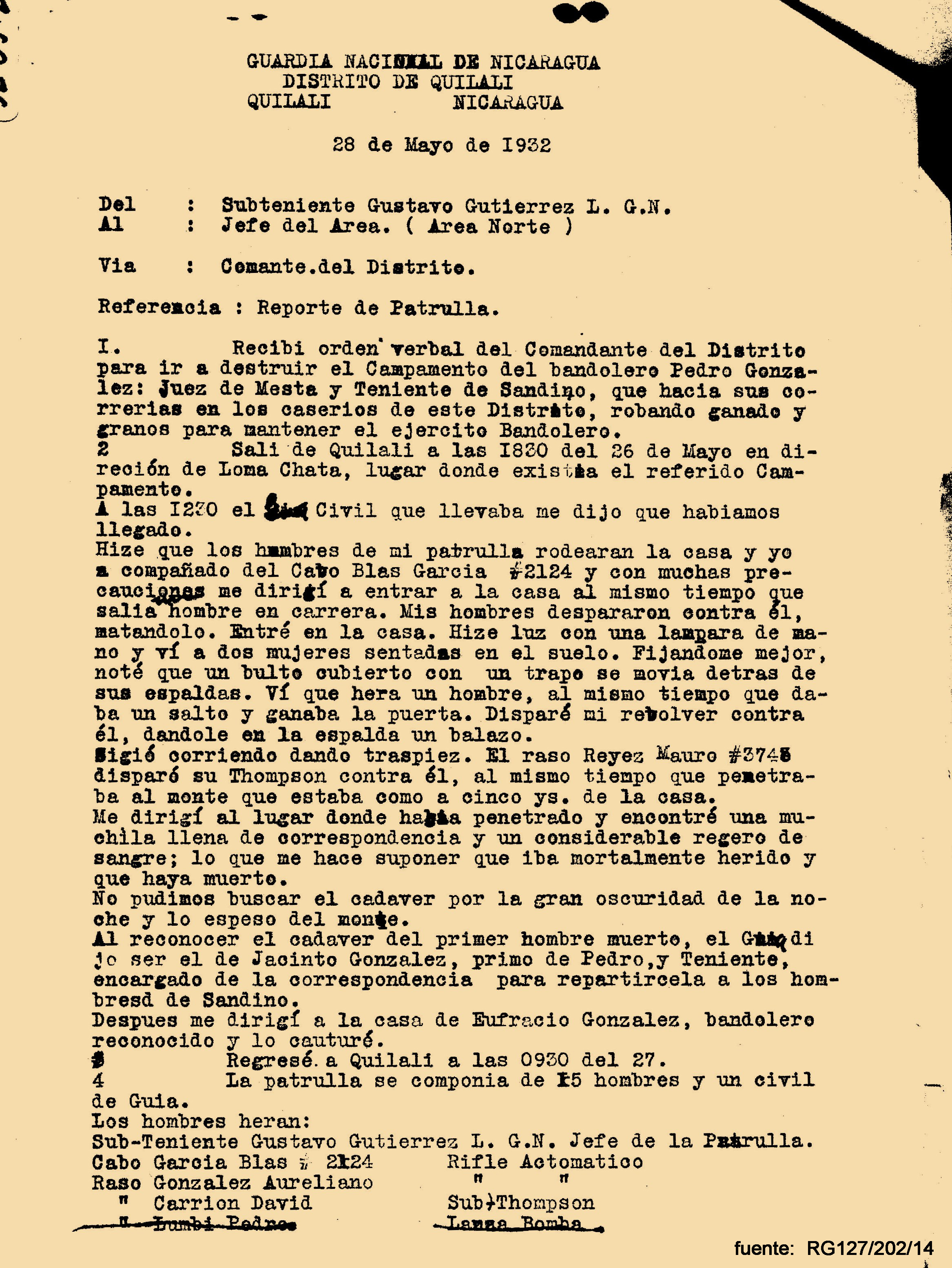 near Quilalí, 27 May 1932 (list in progress)