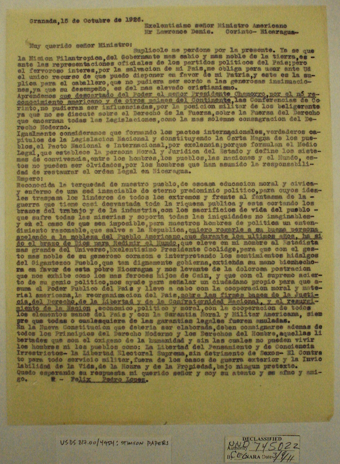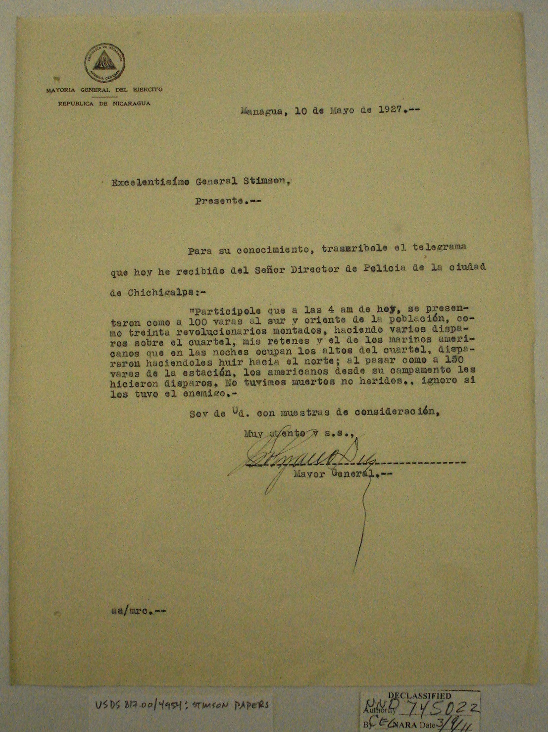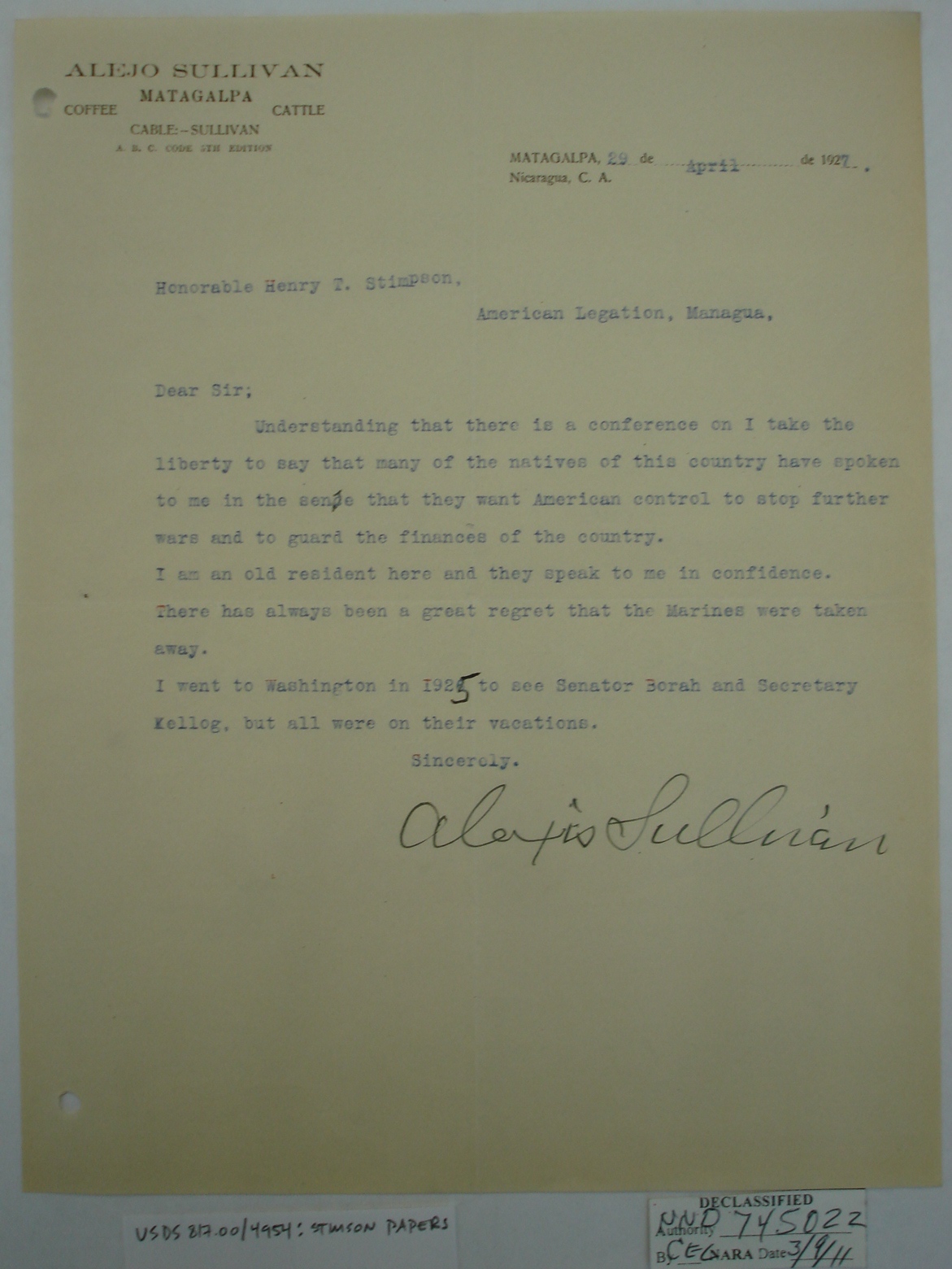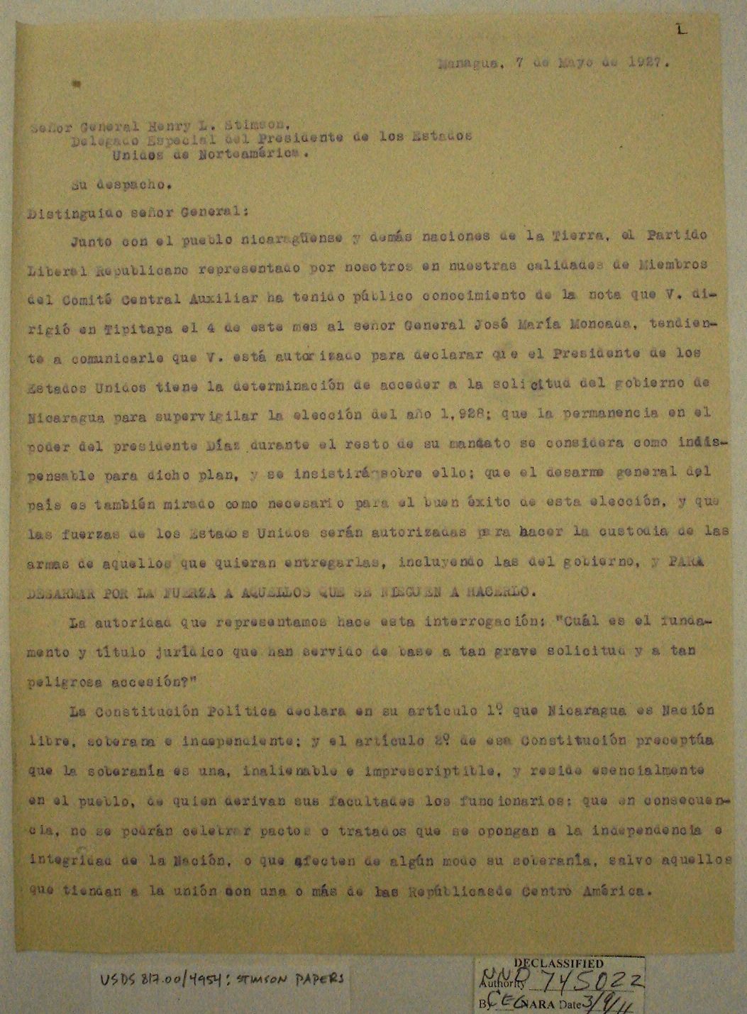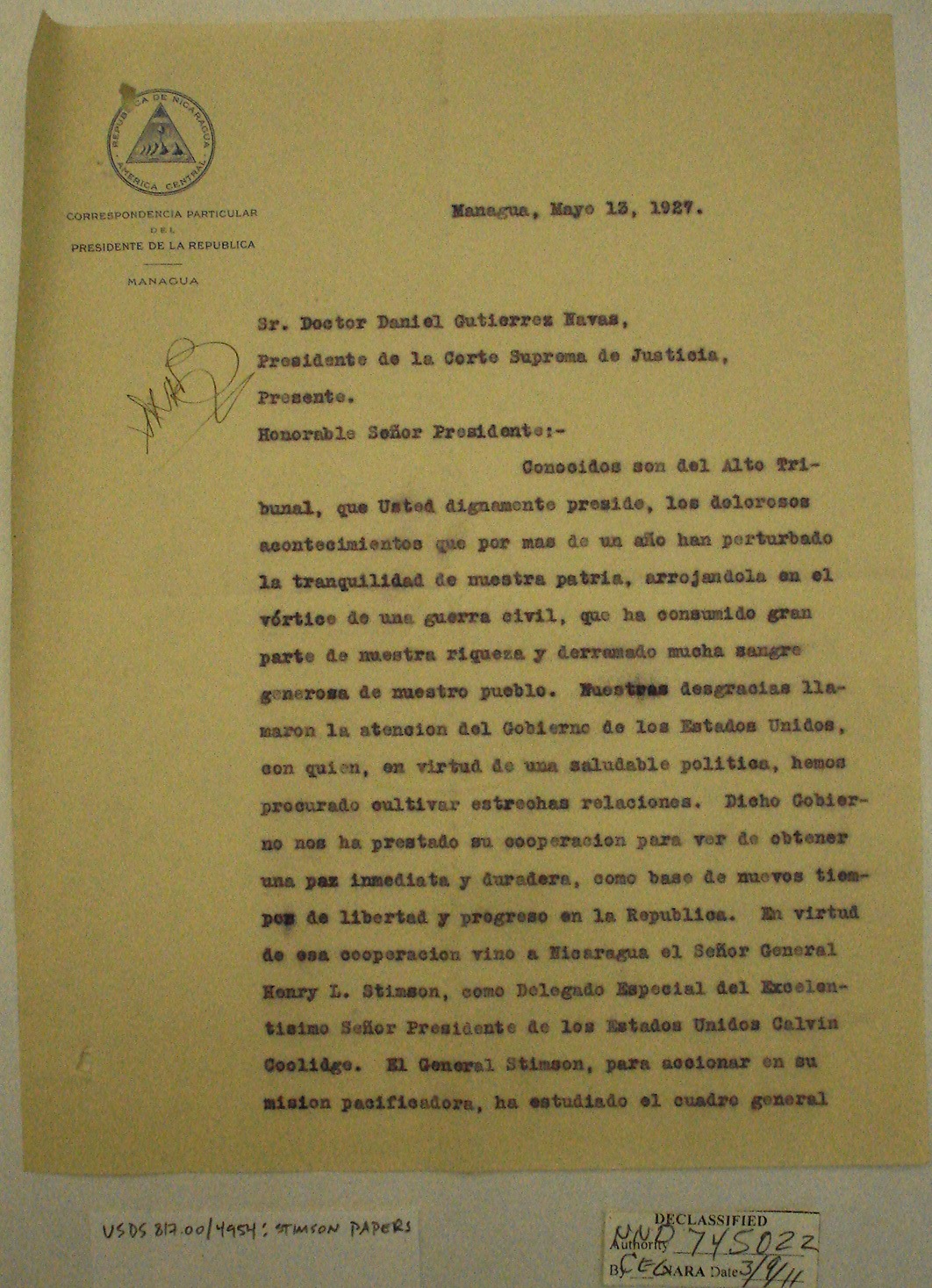 Nicaraguans' Letters to Henry Stimson