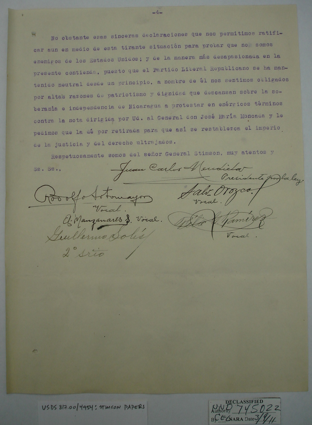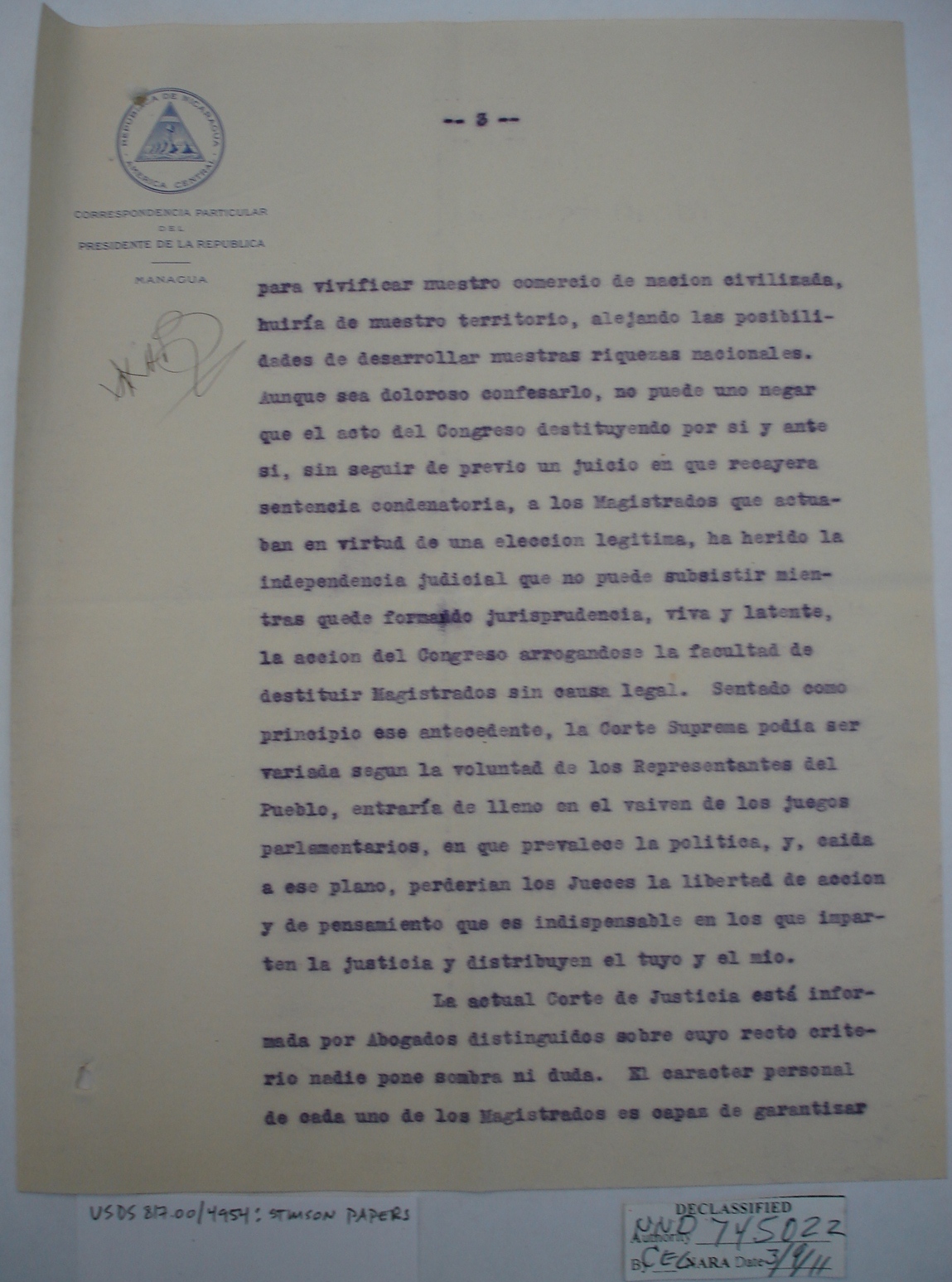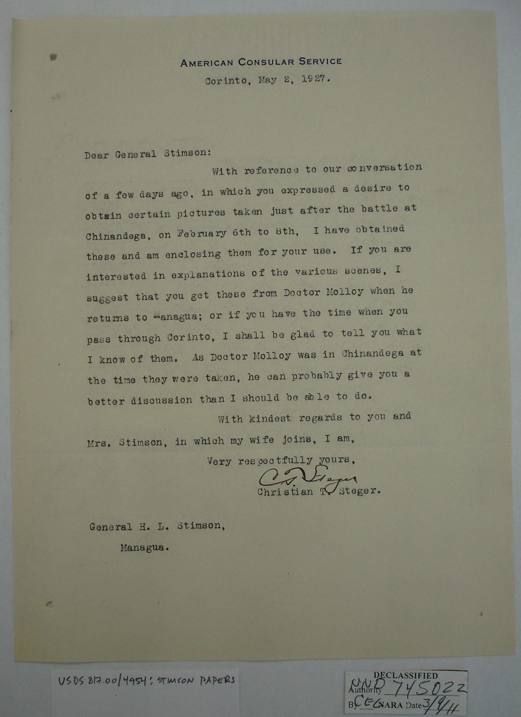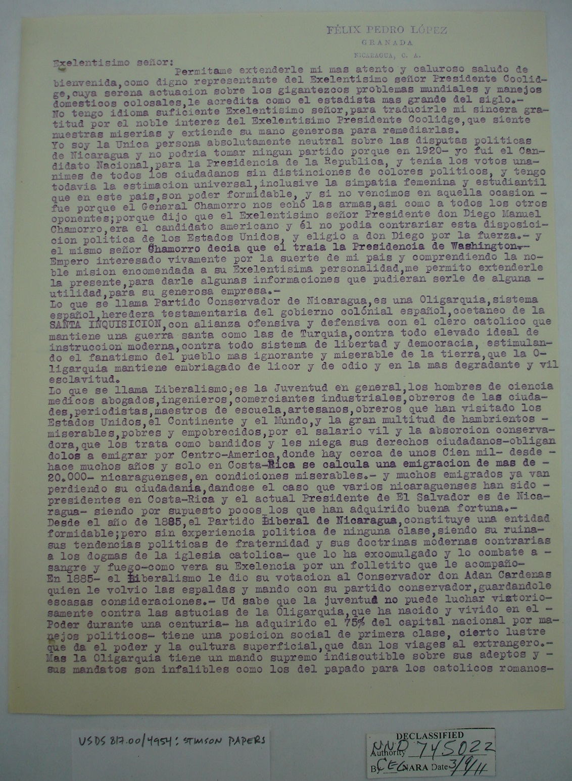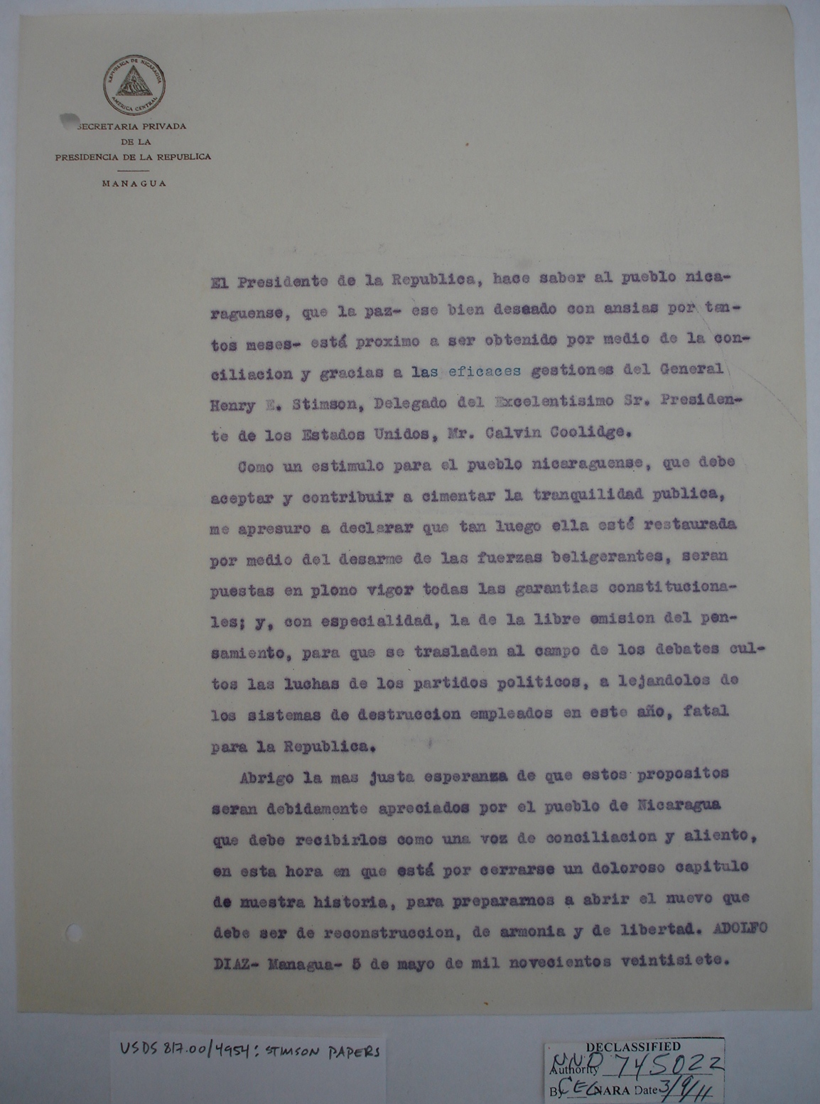 Nicaraguans' Letters to Henry Stimson
