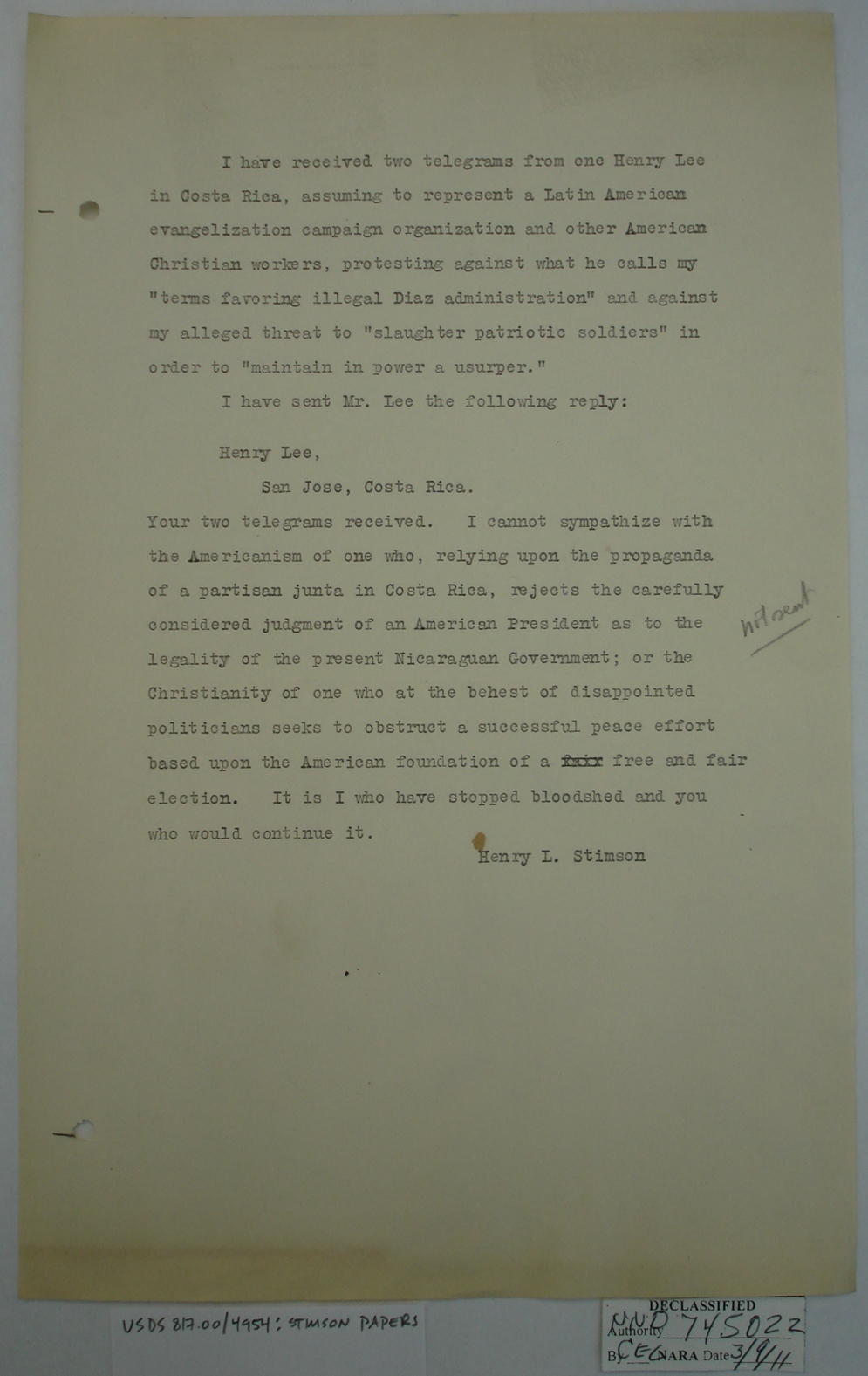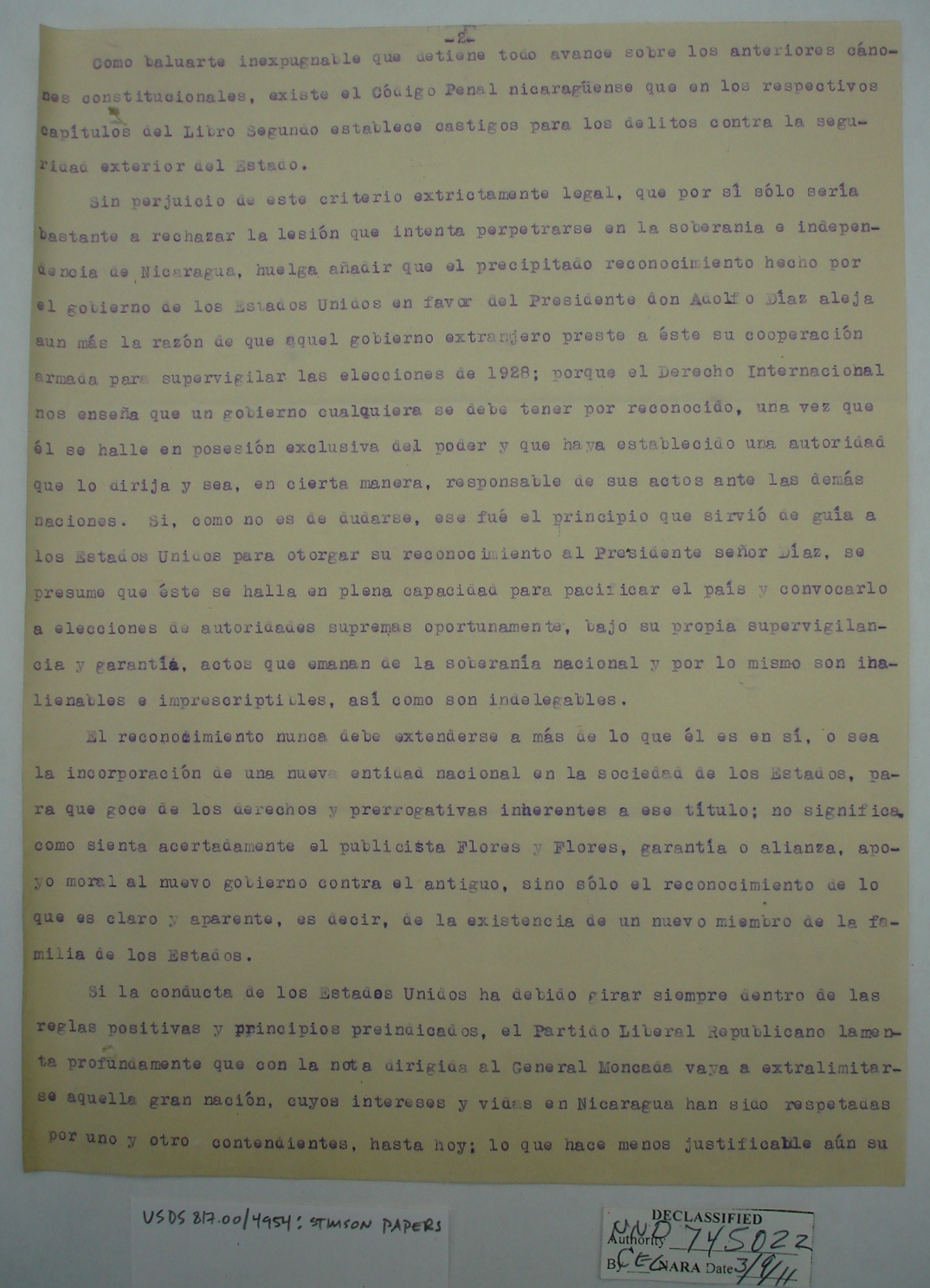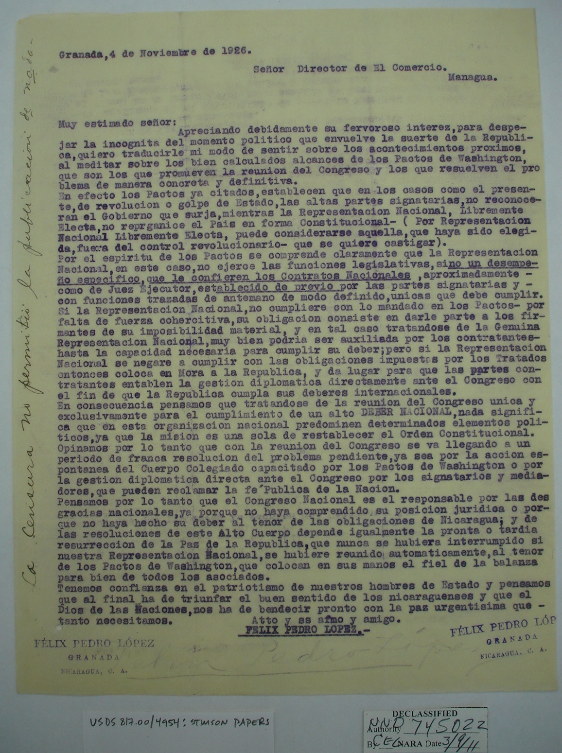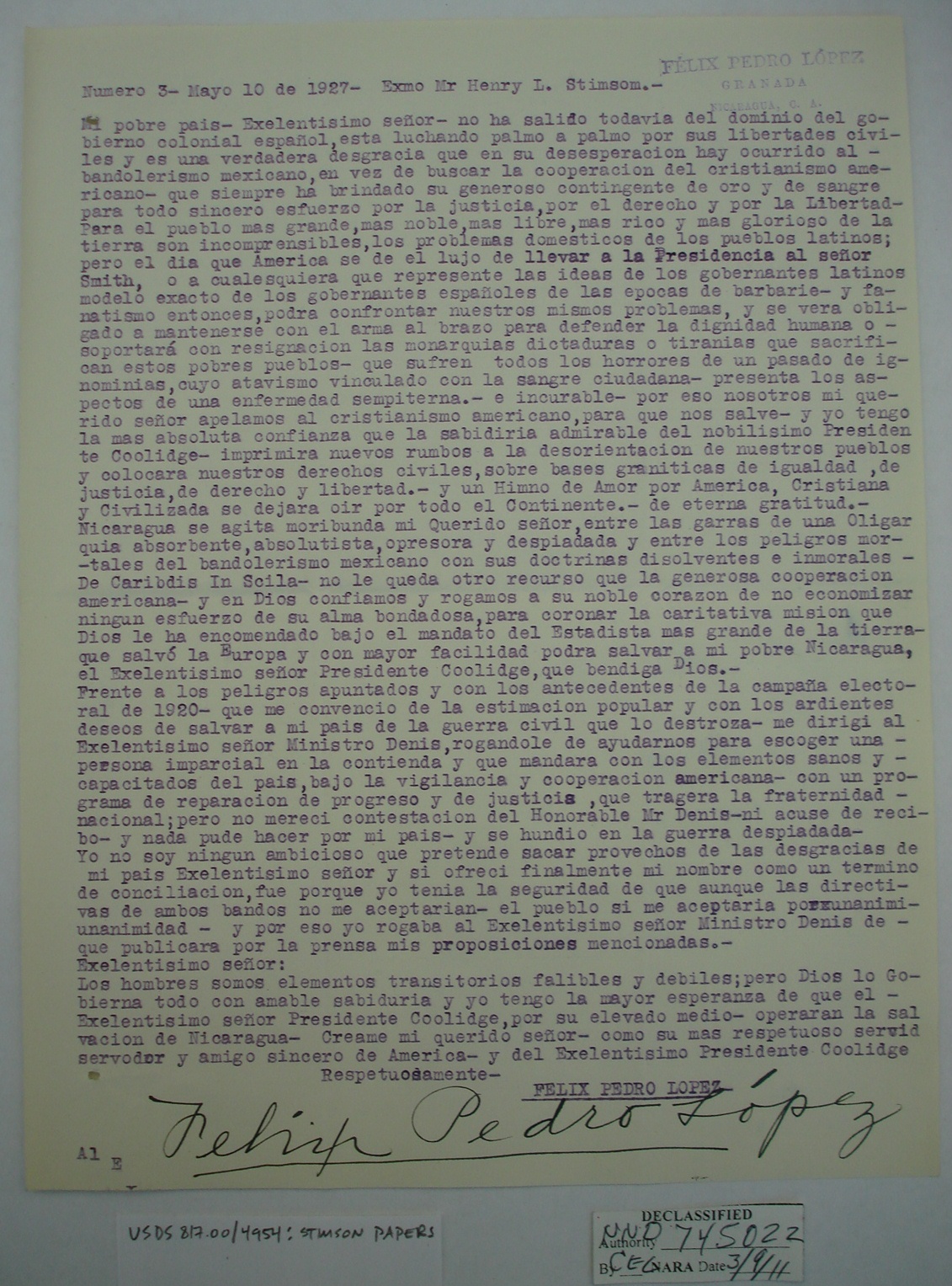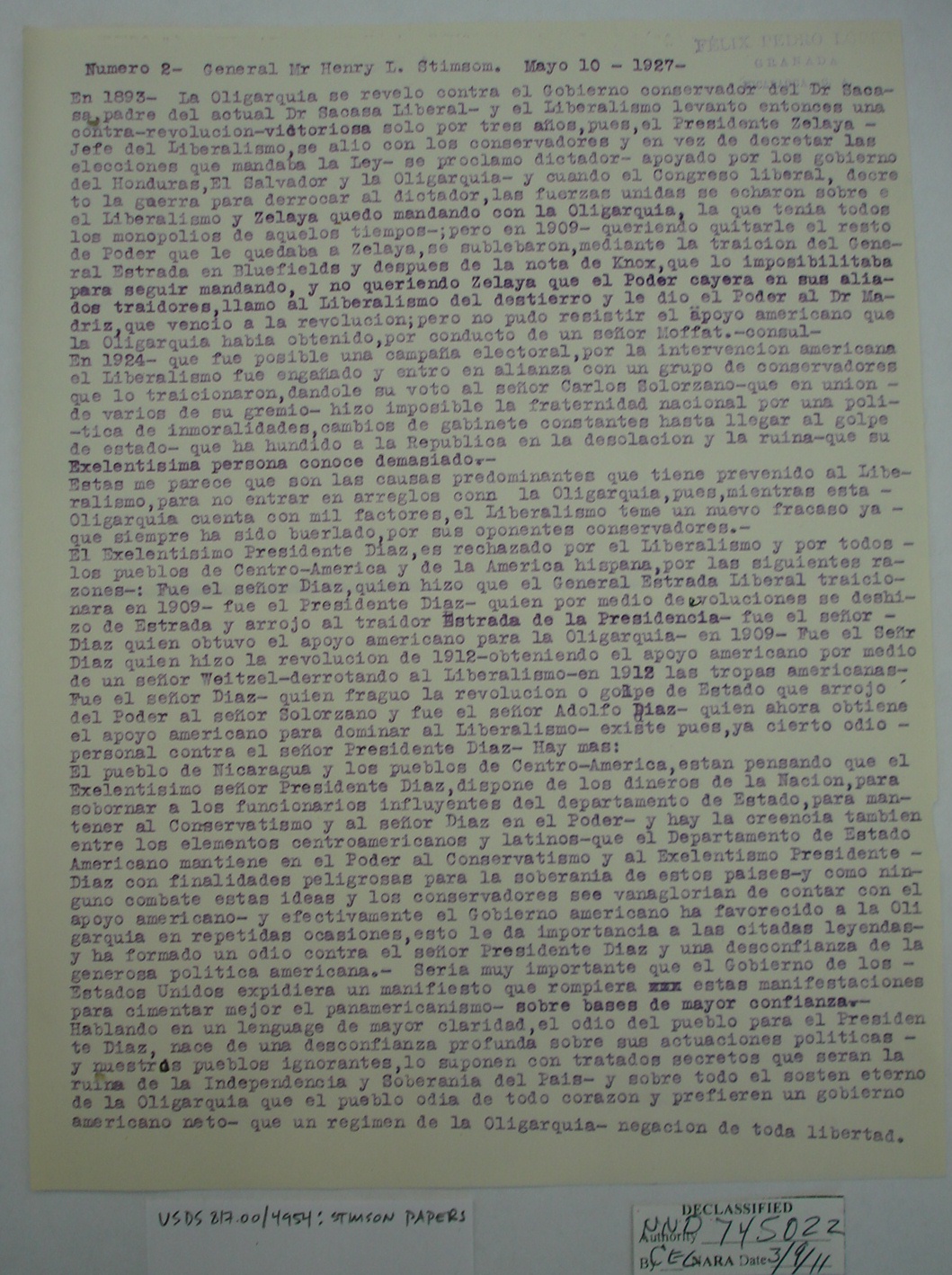 Nicaraguans' Letters to Henry Stimson
