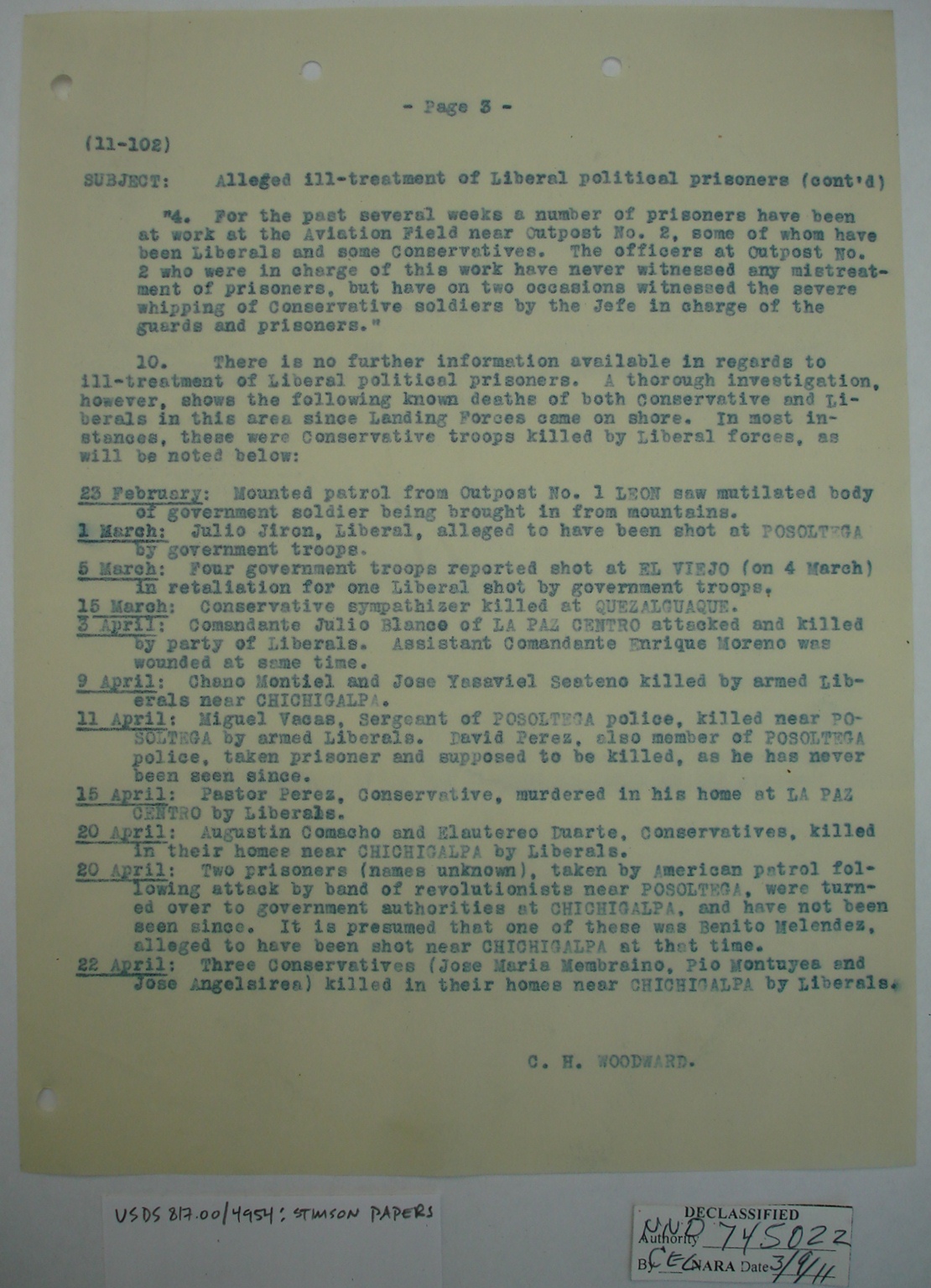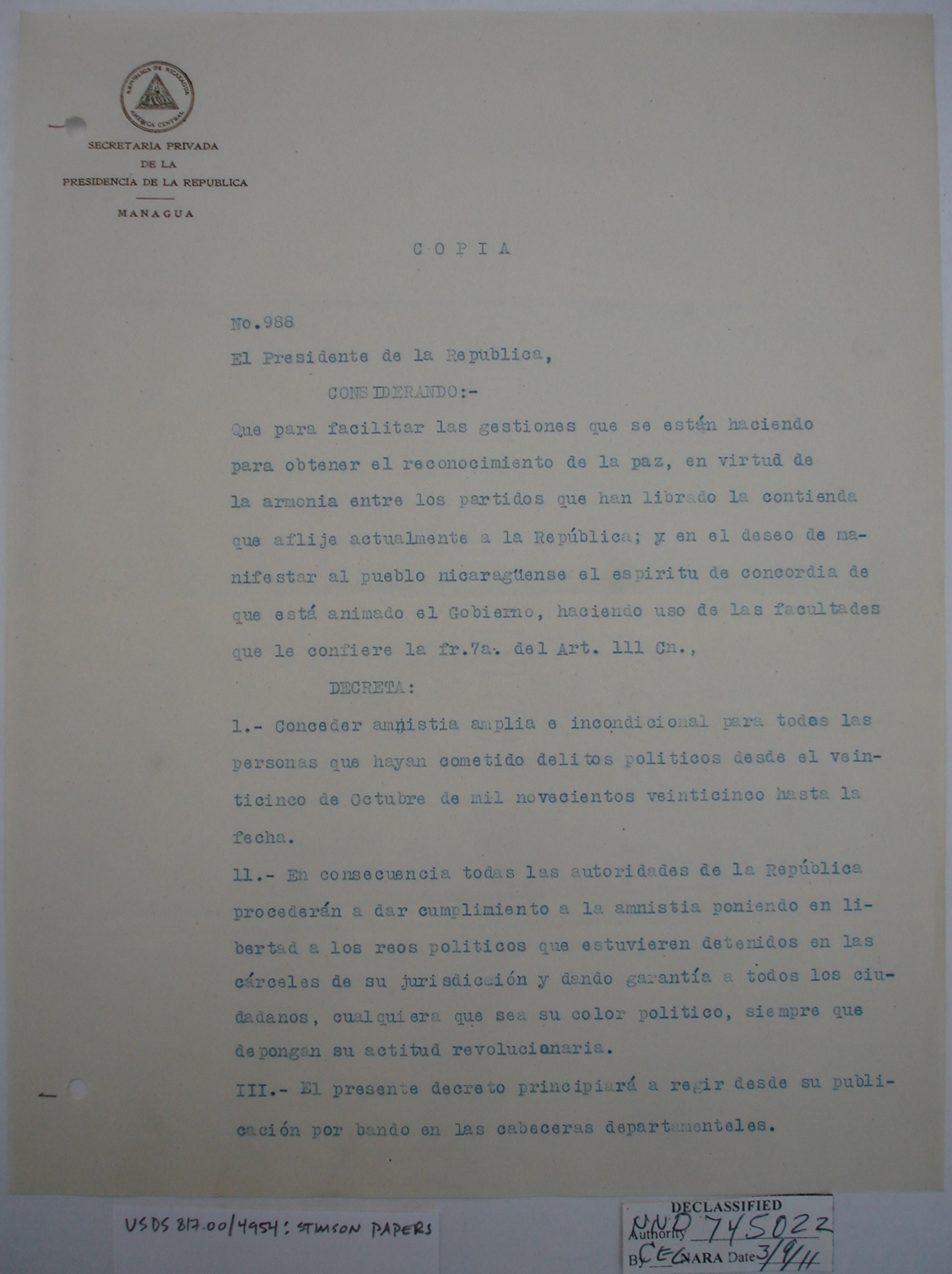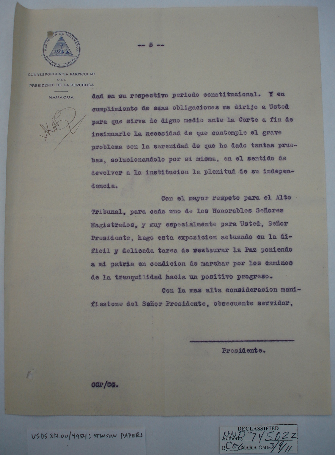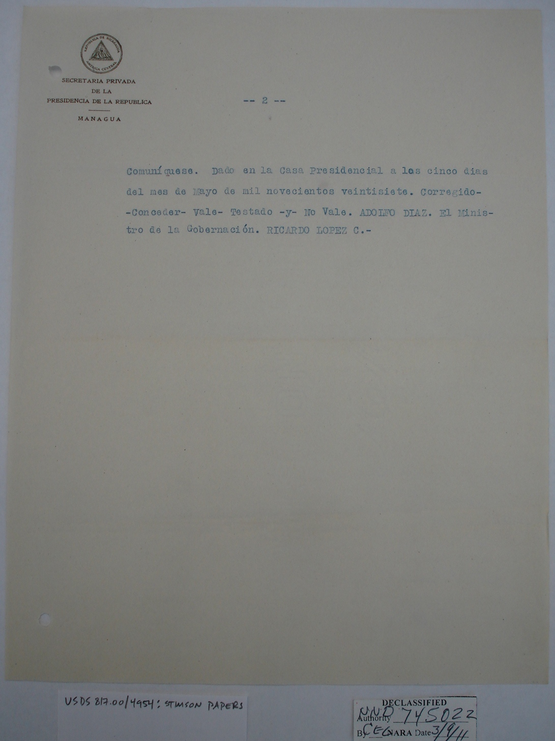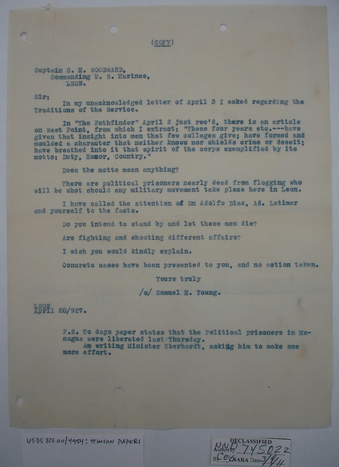 Nicaraguans' Letters to Henry Stimson