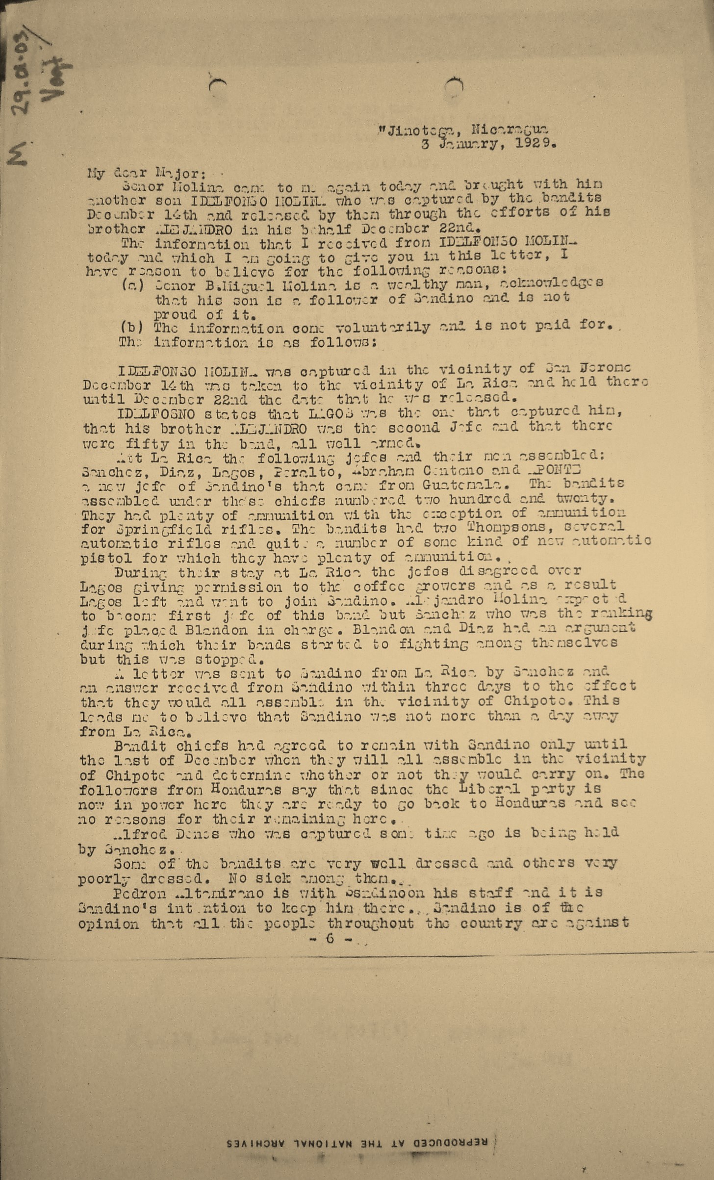 Alejandro Molina joined with Sandino in late 1927 and rose to the rank of sergeant major.