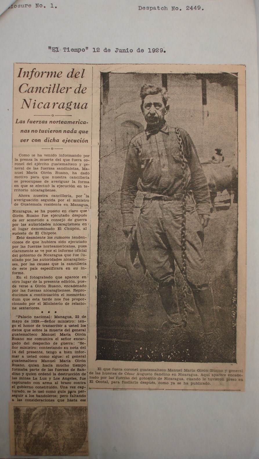 CAPTURE OF GENERAL MANUEL MARIA GIRON RUANO AND