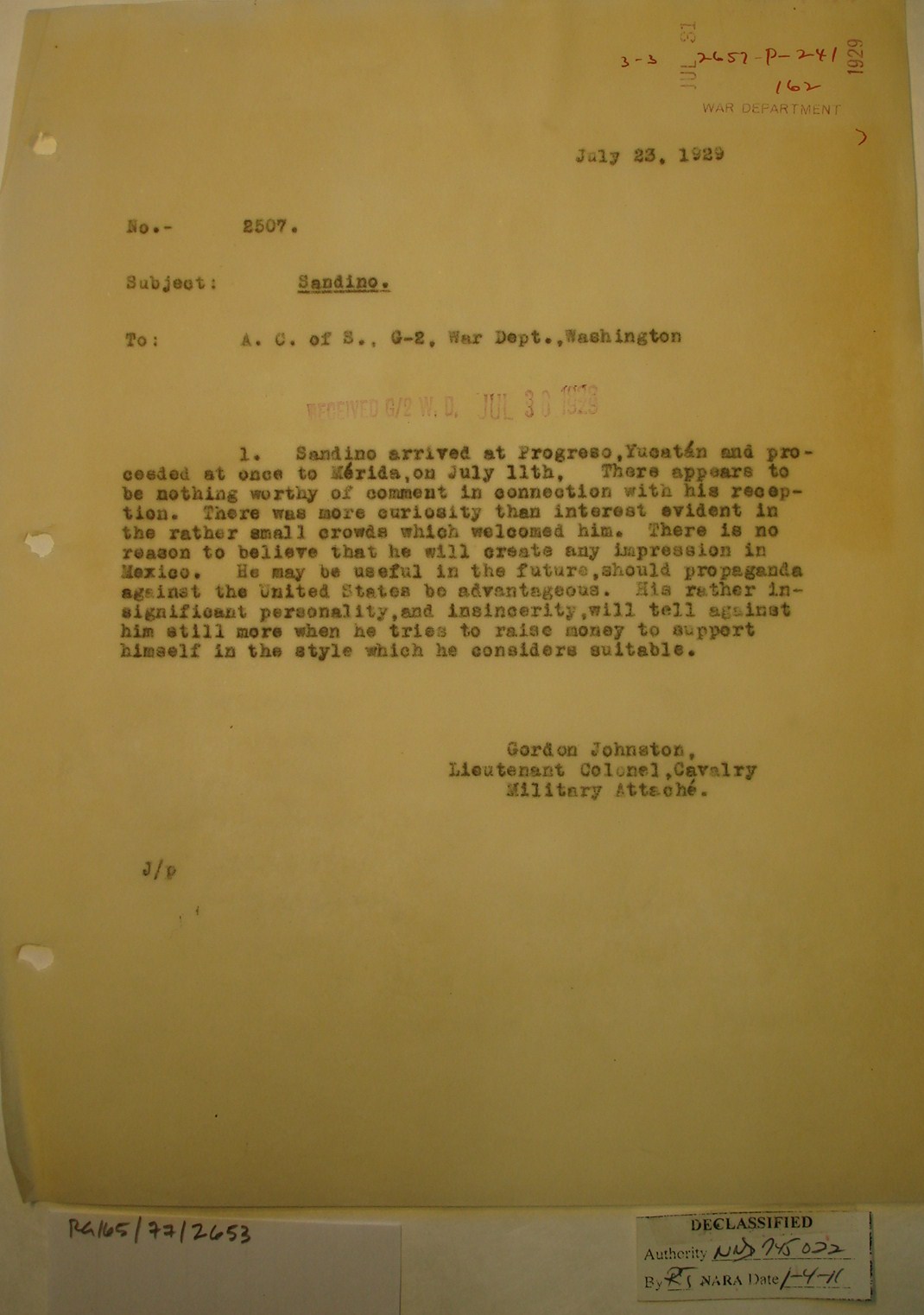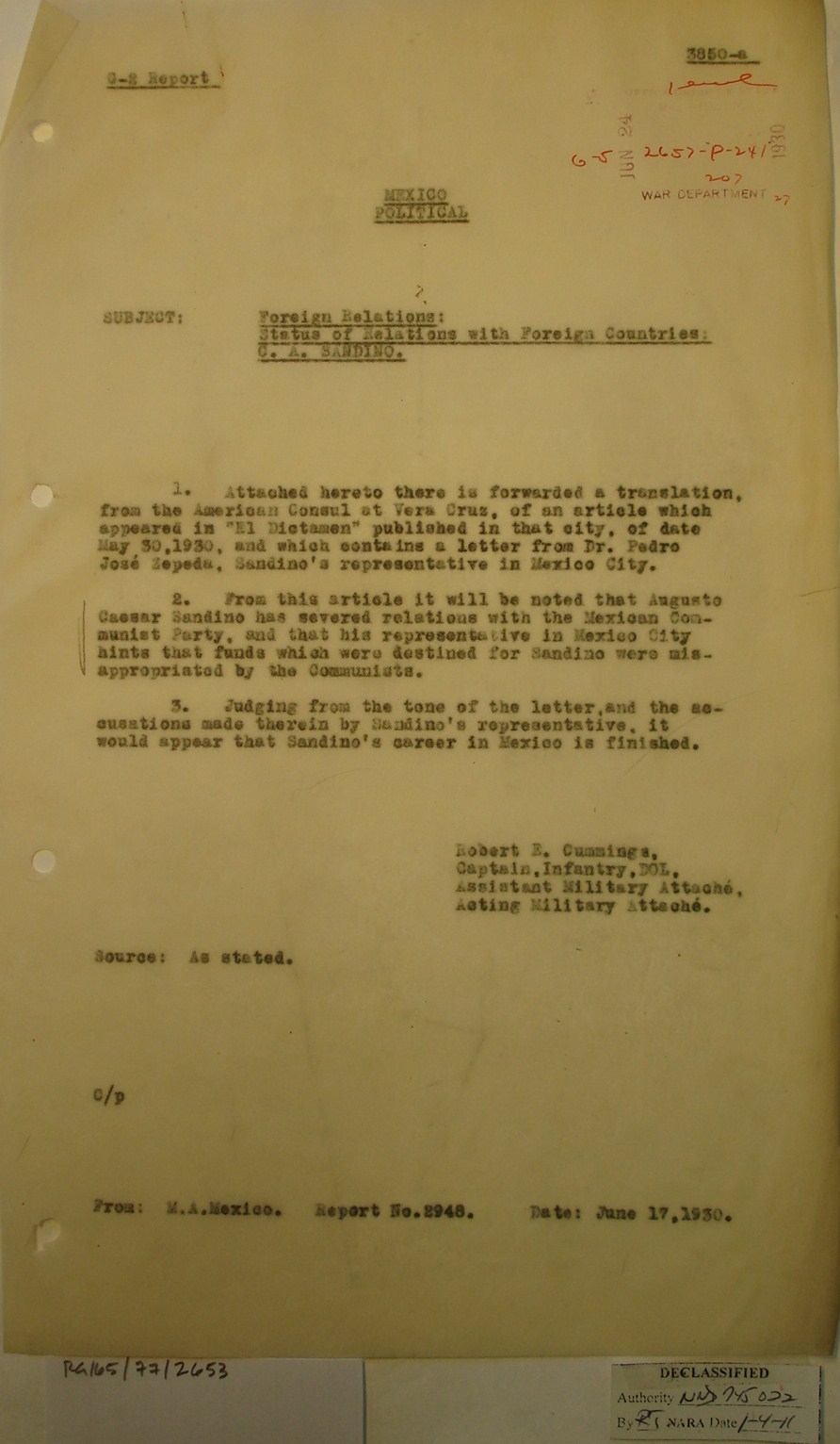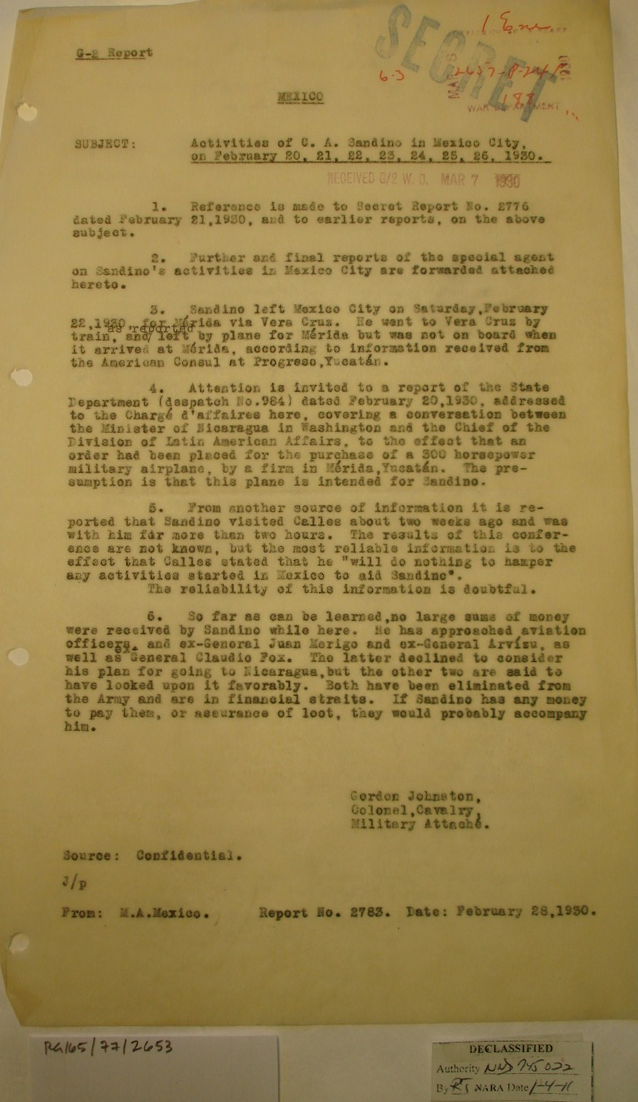 "G-2 Report ¶ MEXICO ¶ SUBJECT: