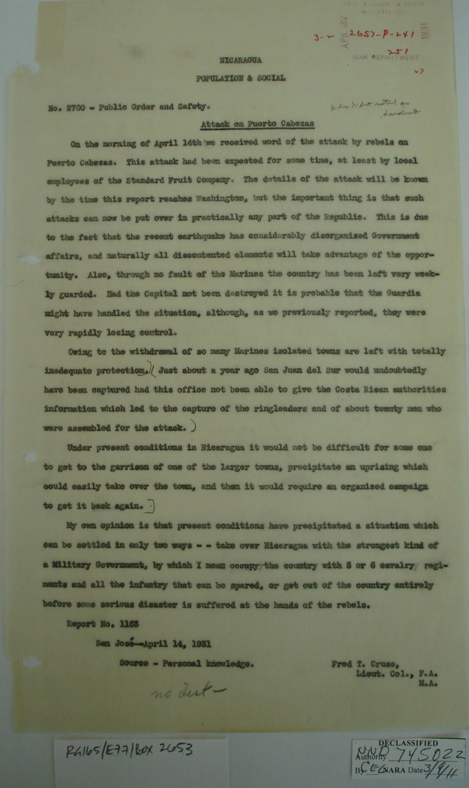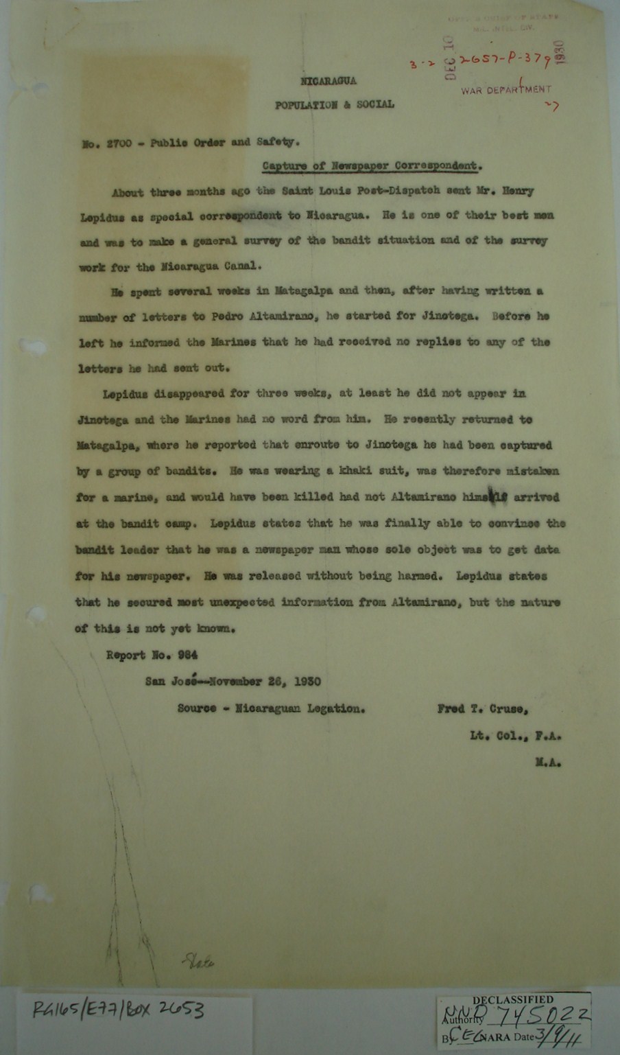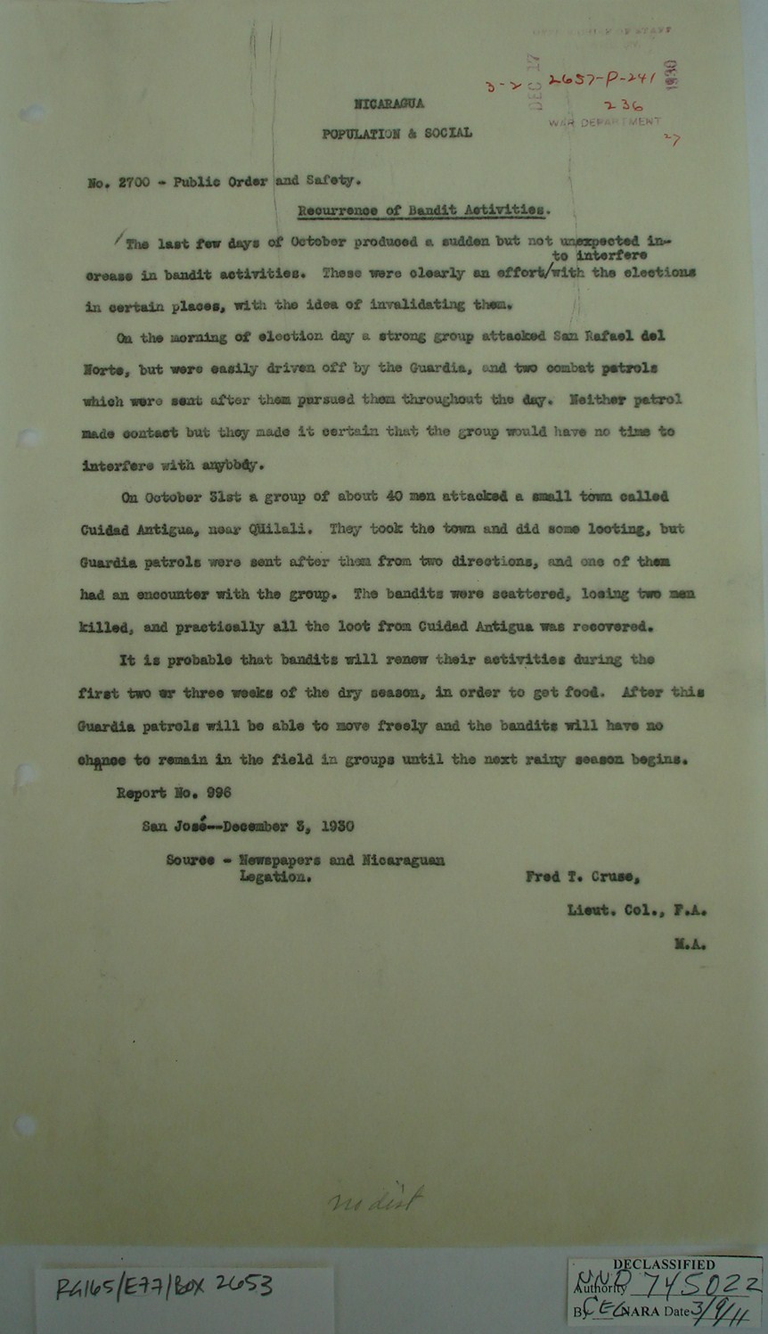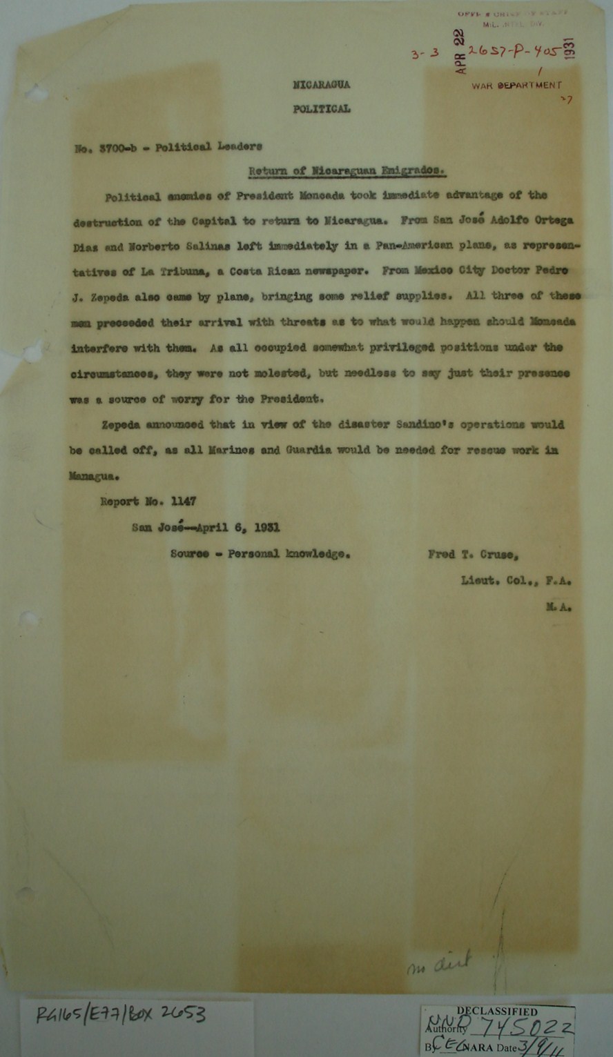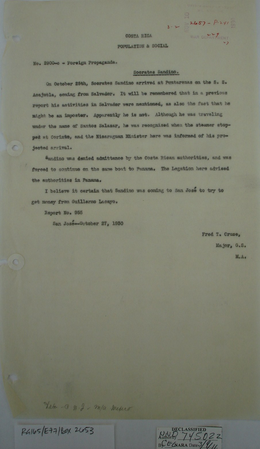 ¶ Fred T. Cruse, ¶ Major, G.S. ¶