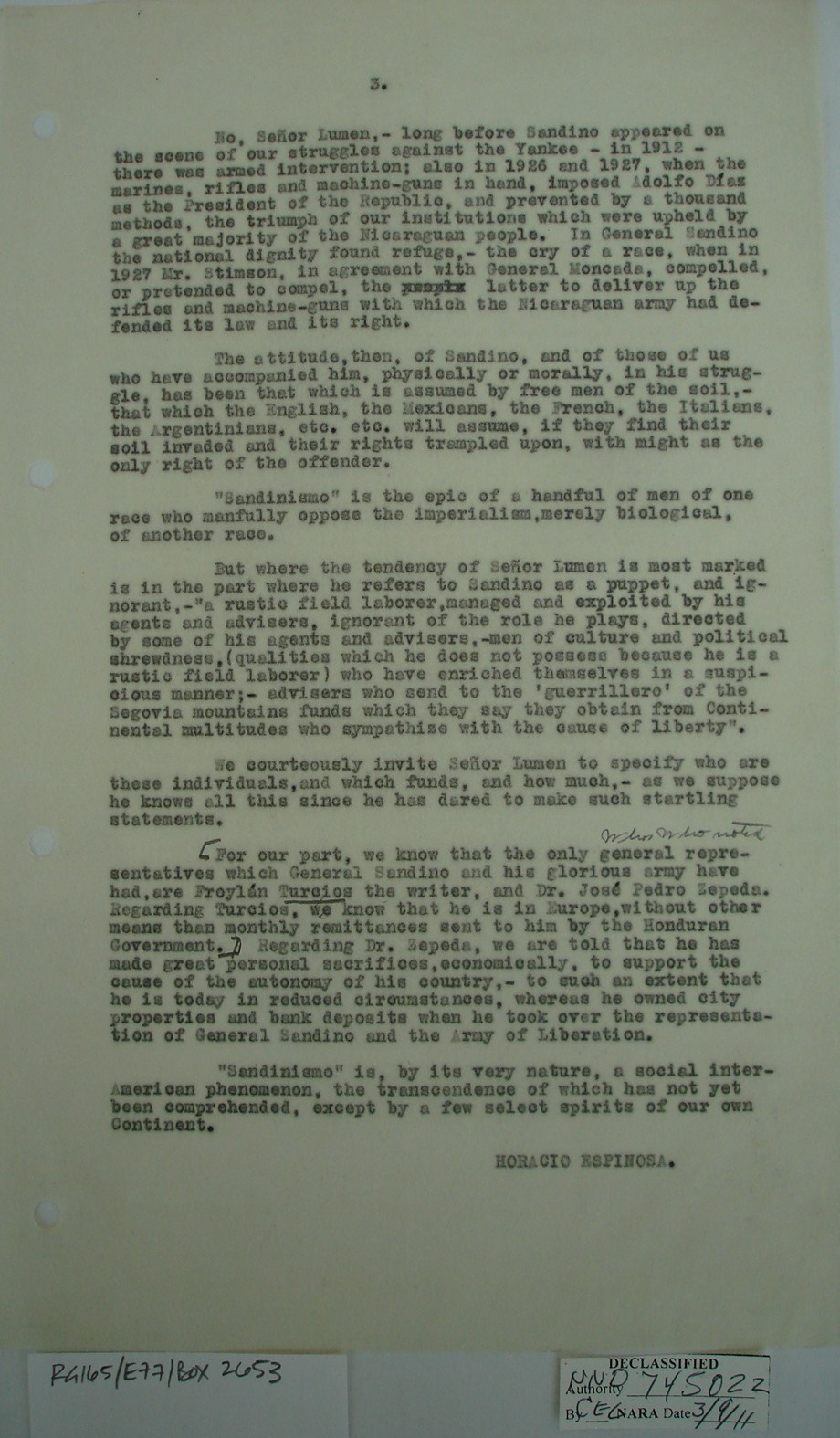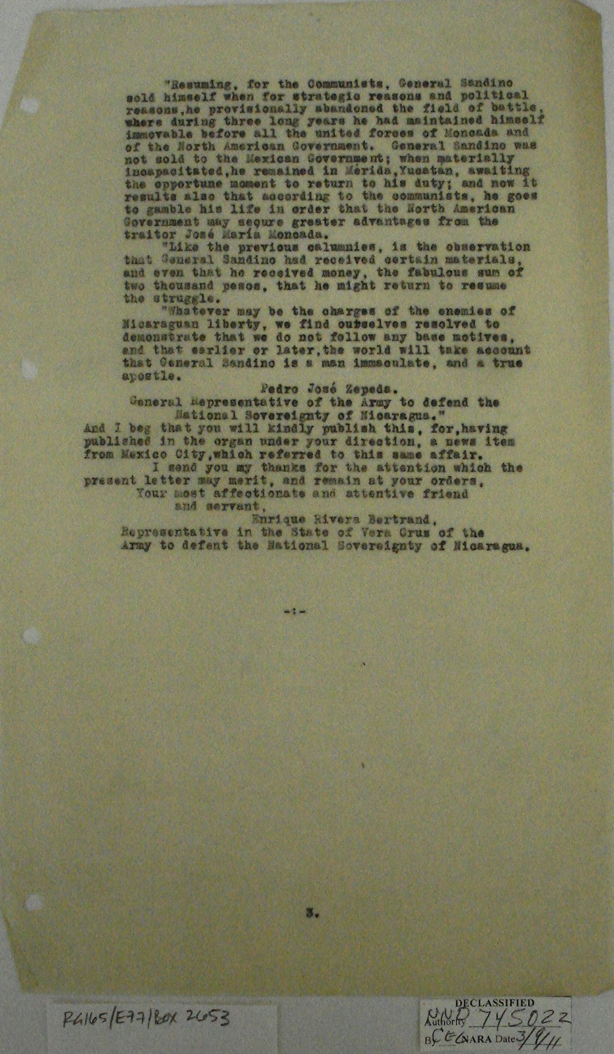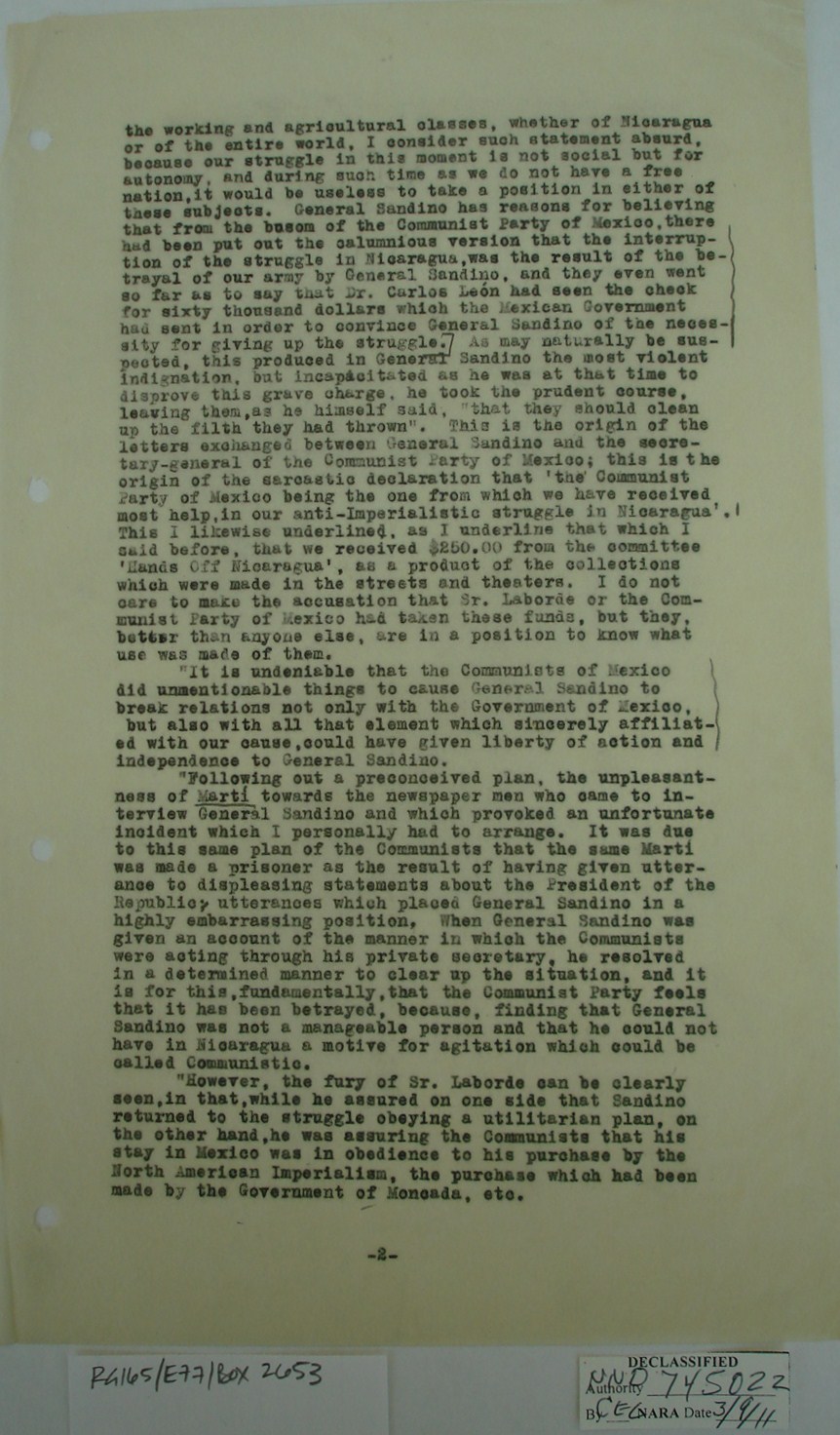 Sandino’s representative, it