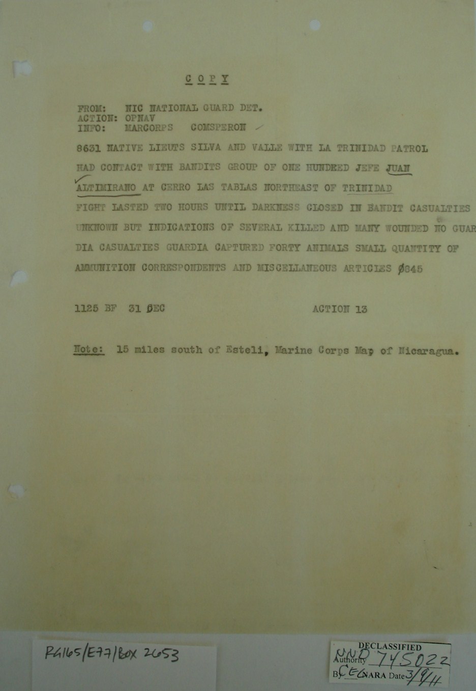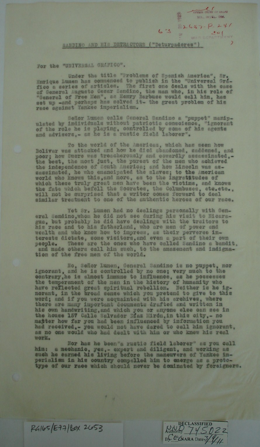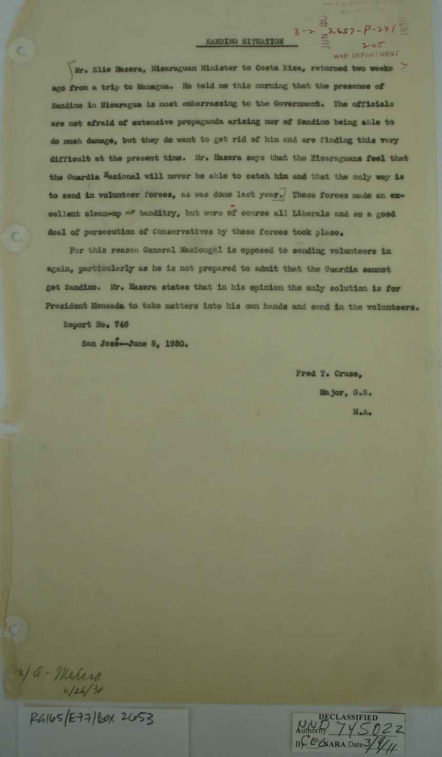 upon Sandino’s orders. It seems
