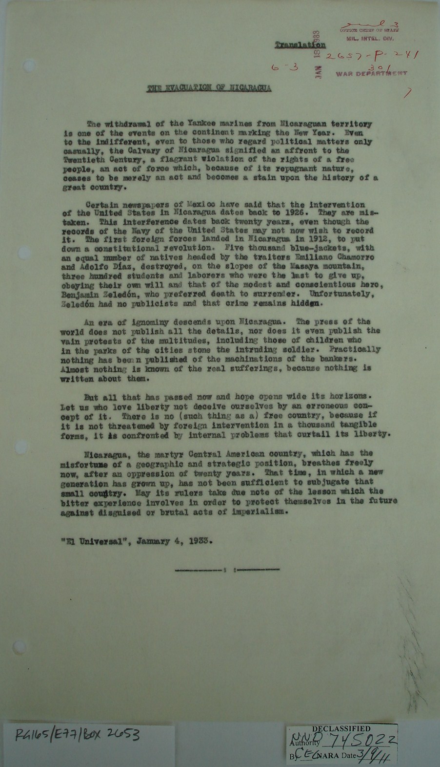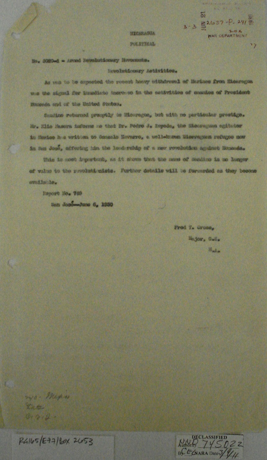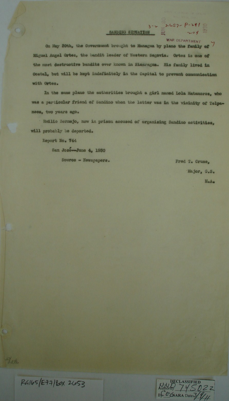 upon Sandino’s orders. It seems
