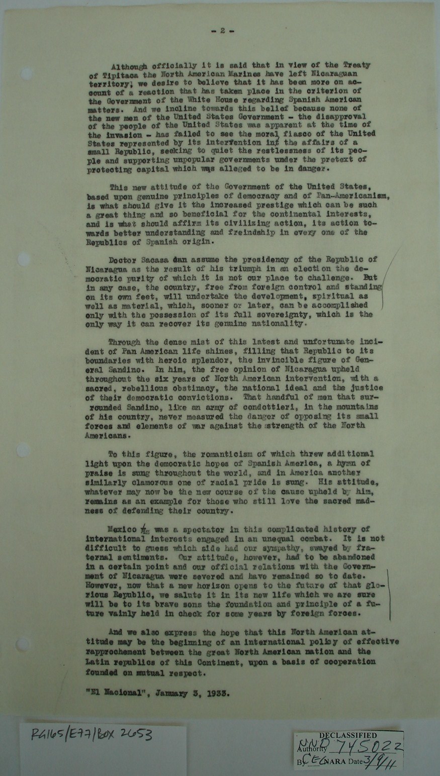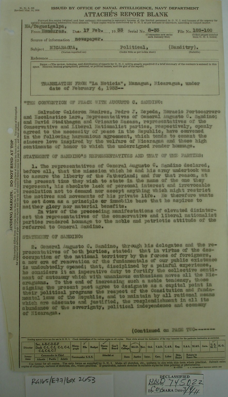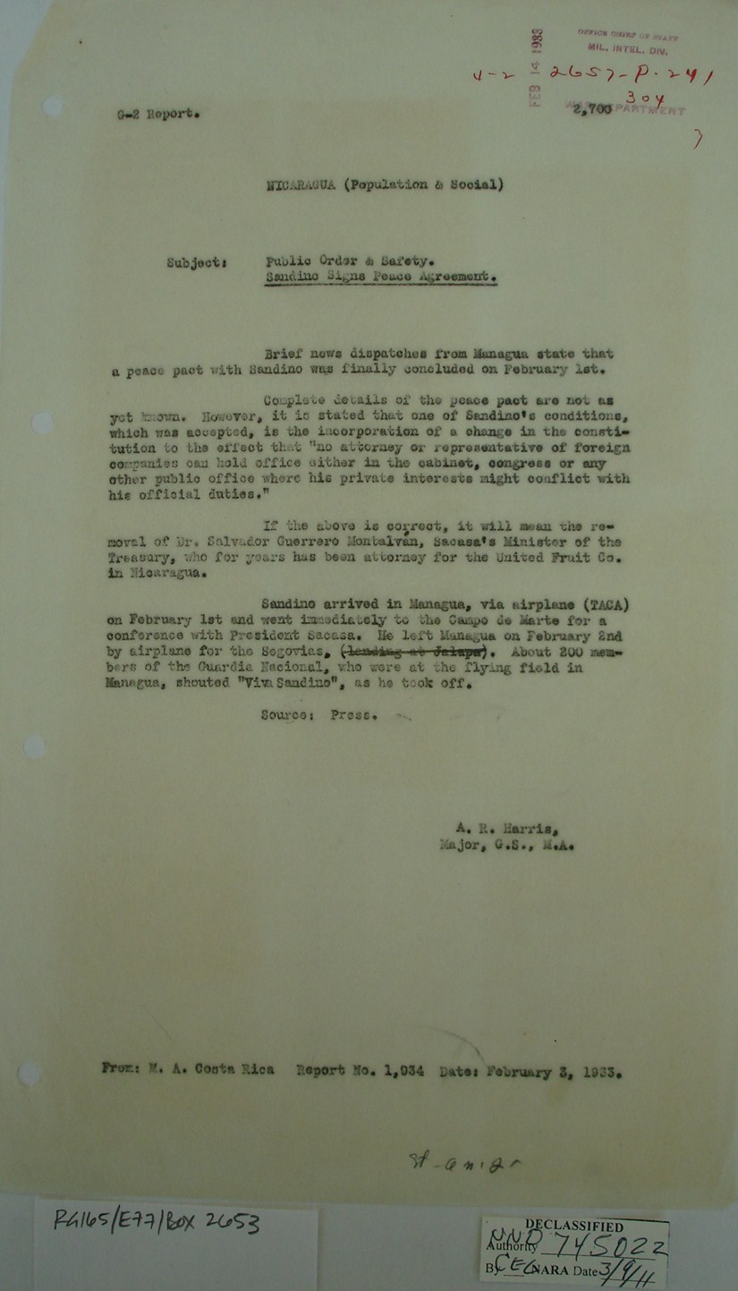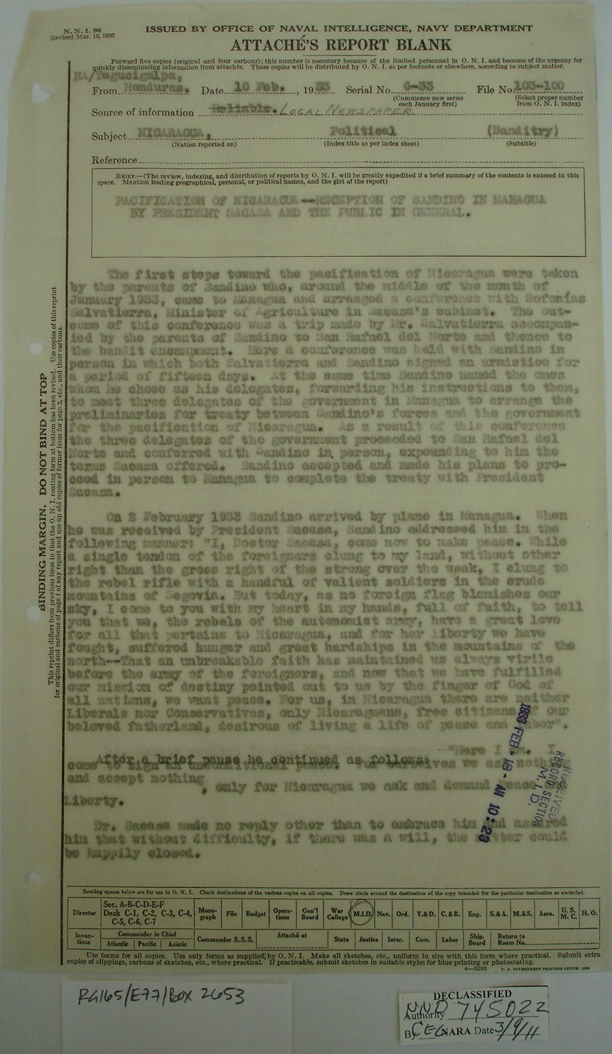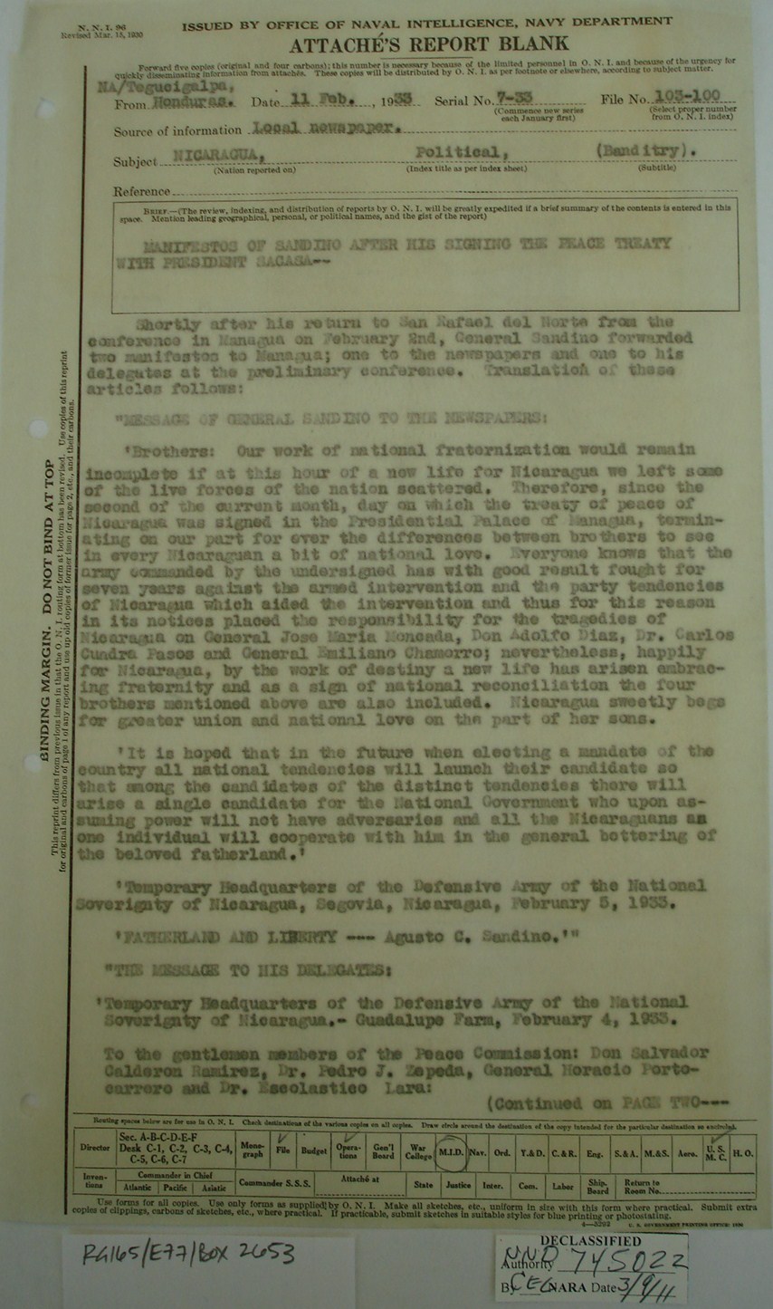 that Sandino, convinced of the