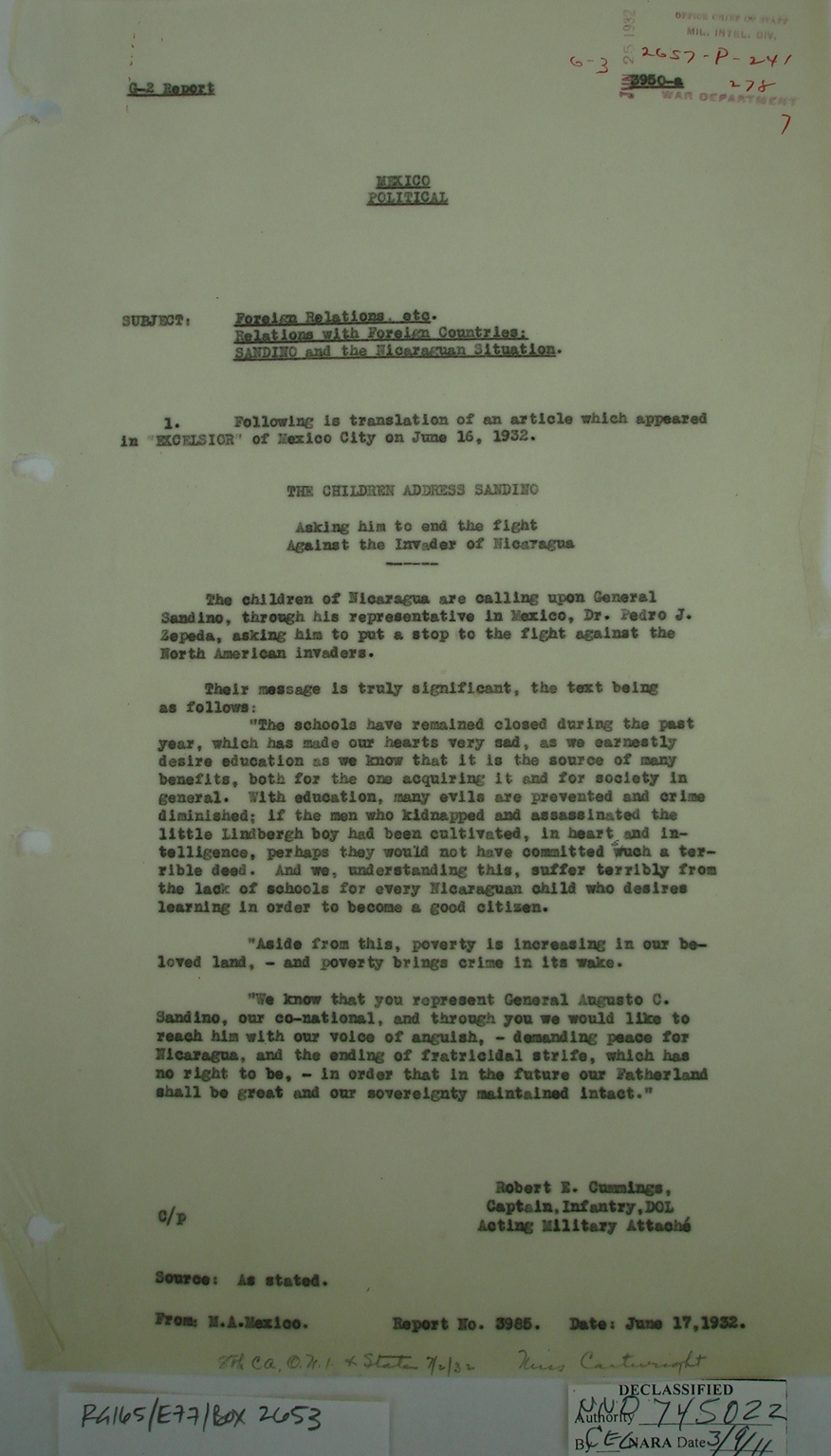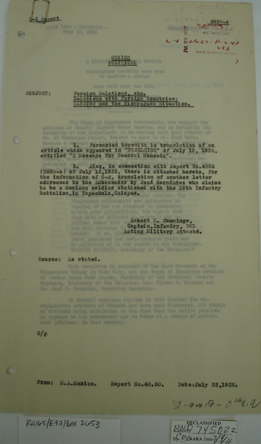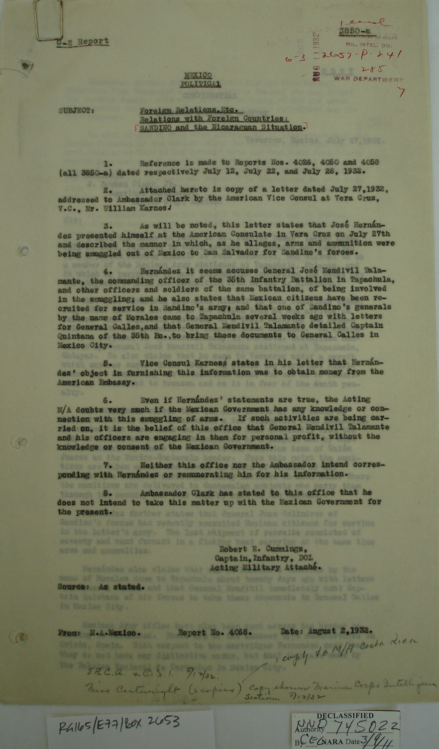 "G-2 Report ¶ 3950-a ¶ MEXICO ¶