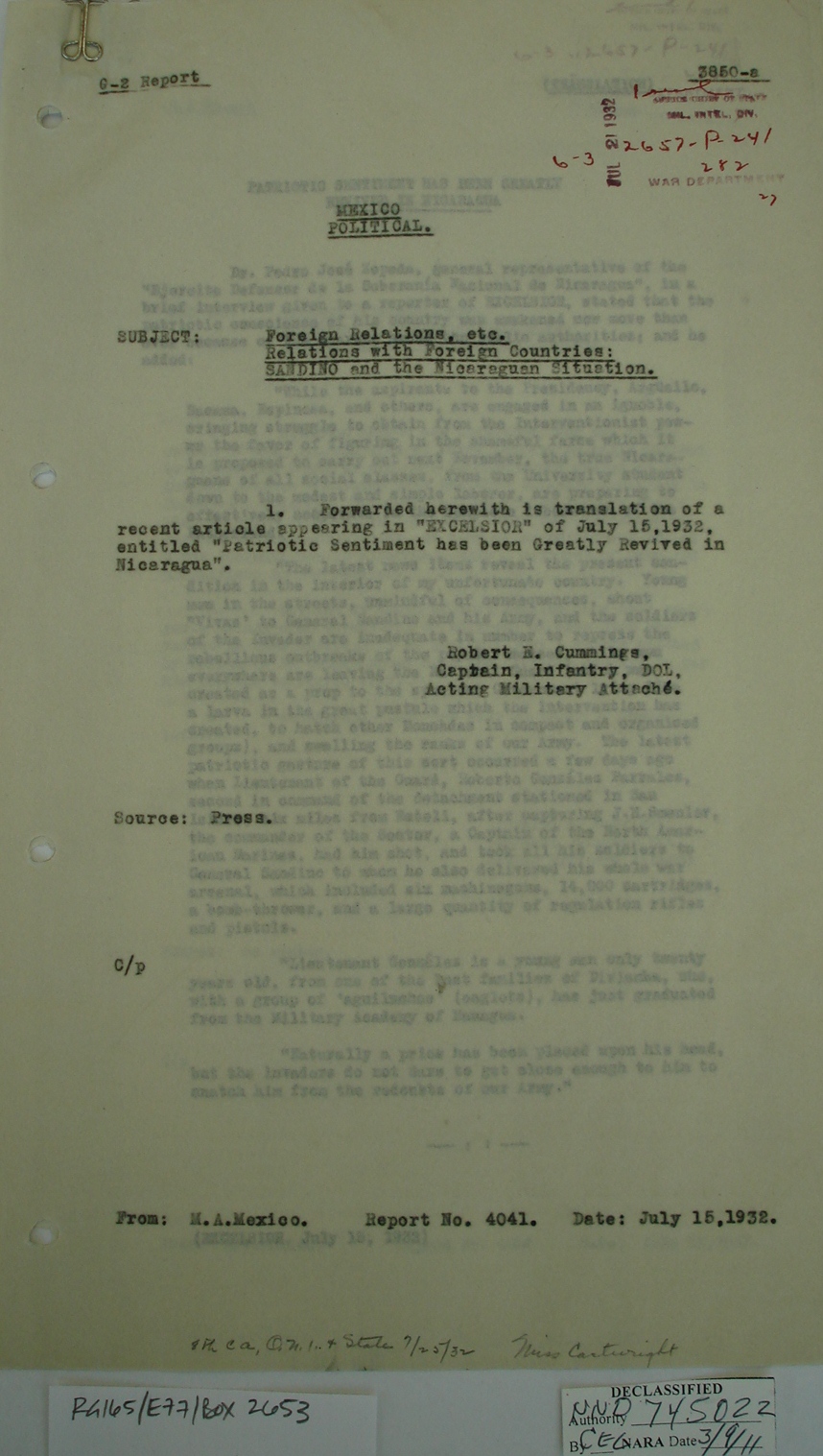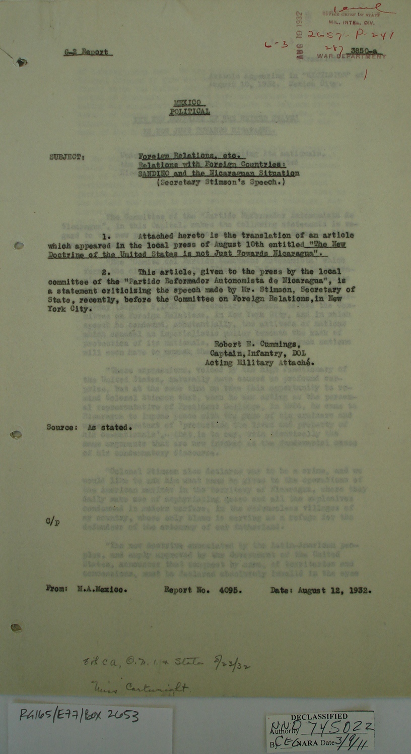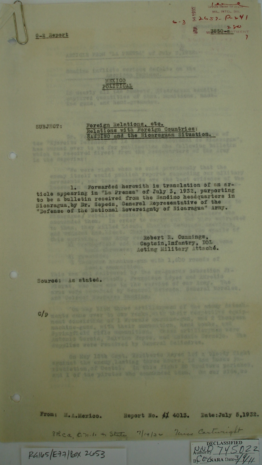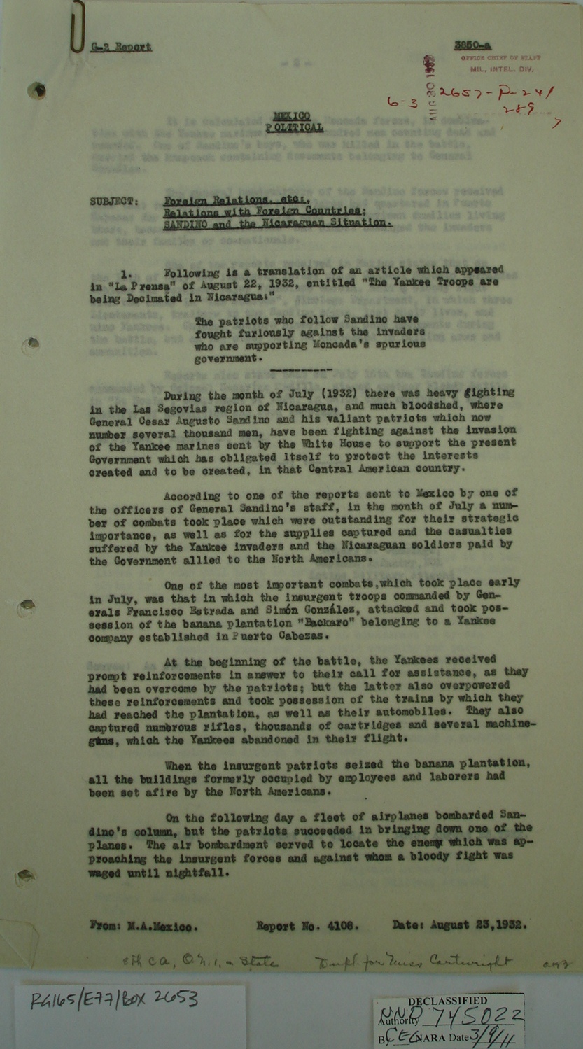 "G-2 Report ¶ 3950-a ¶ MEXICO ¶