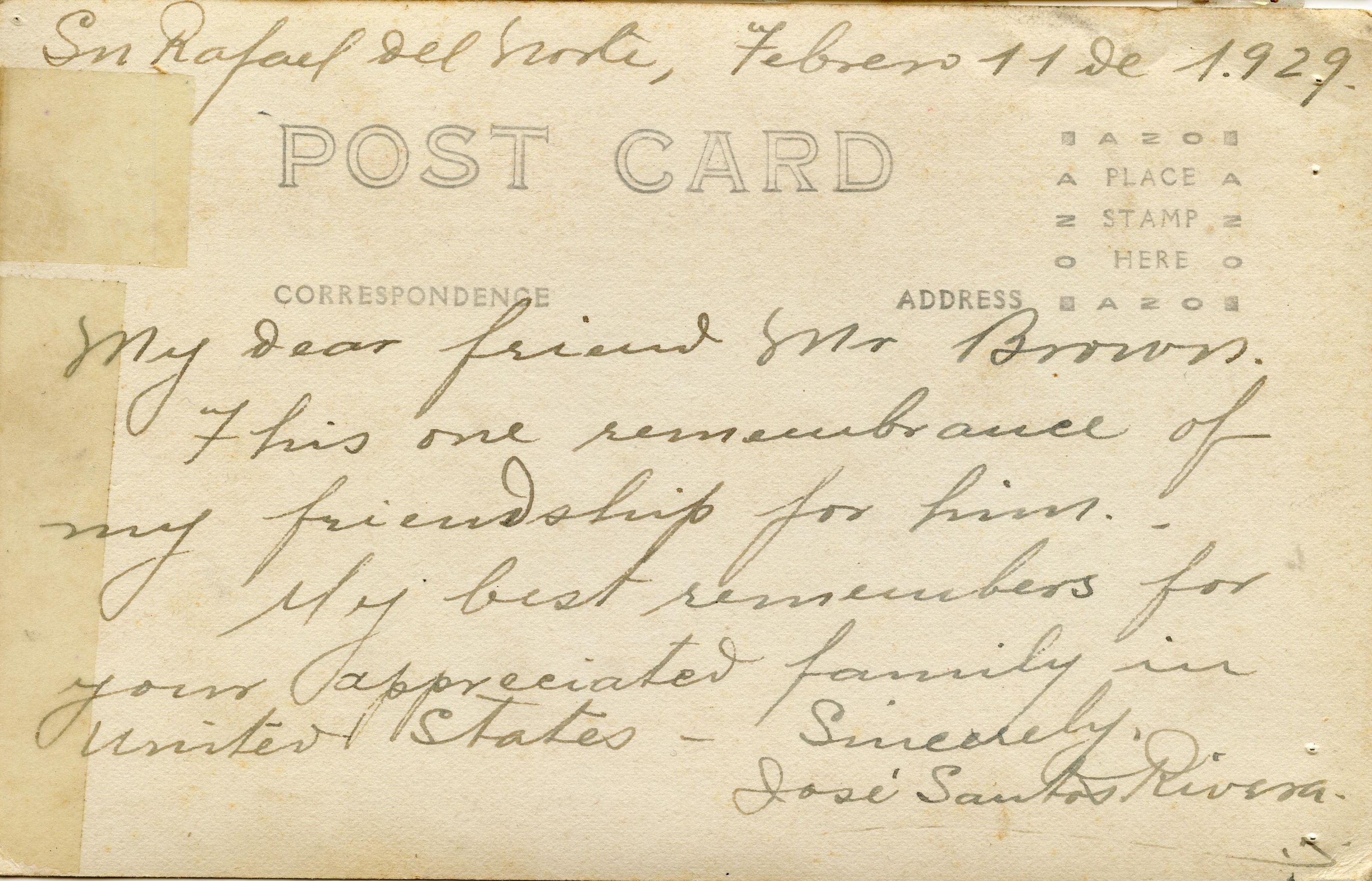 card and photograph: "J. Santos Rivera y Sra. San Rafael