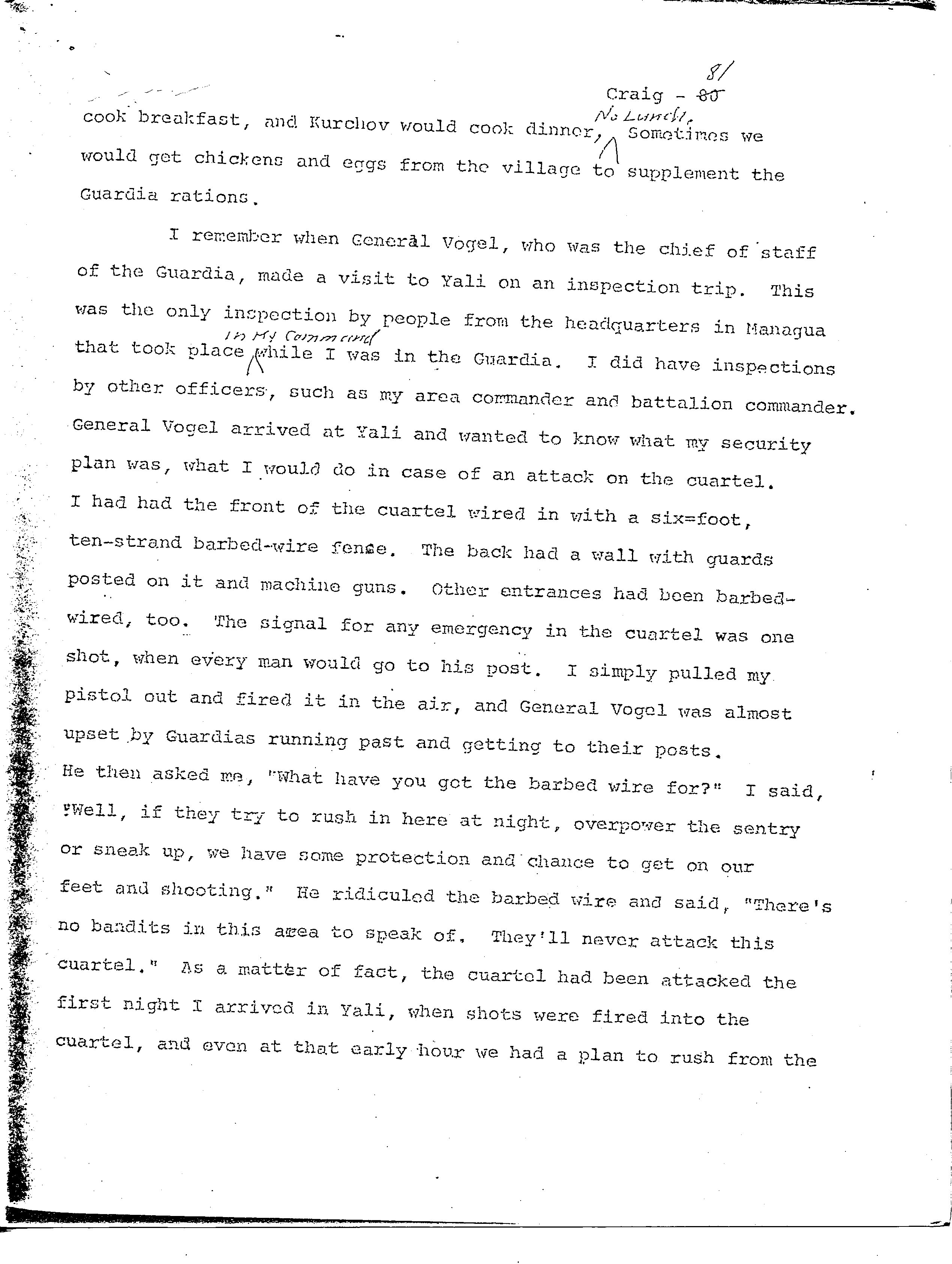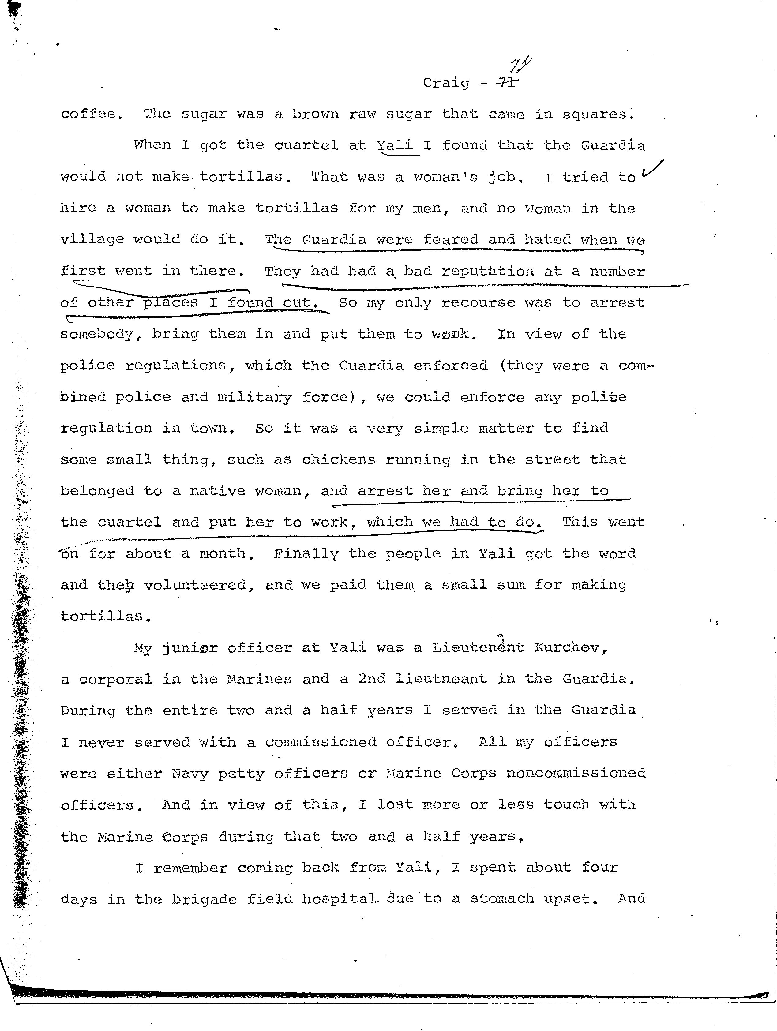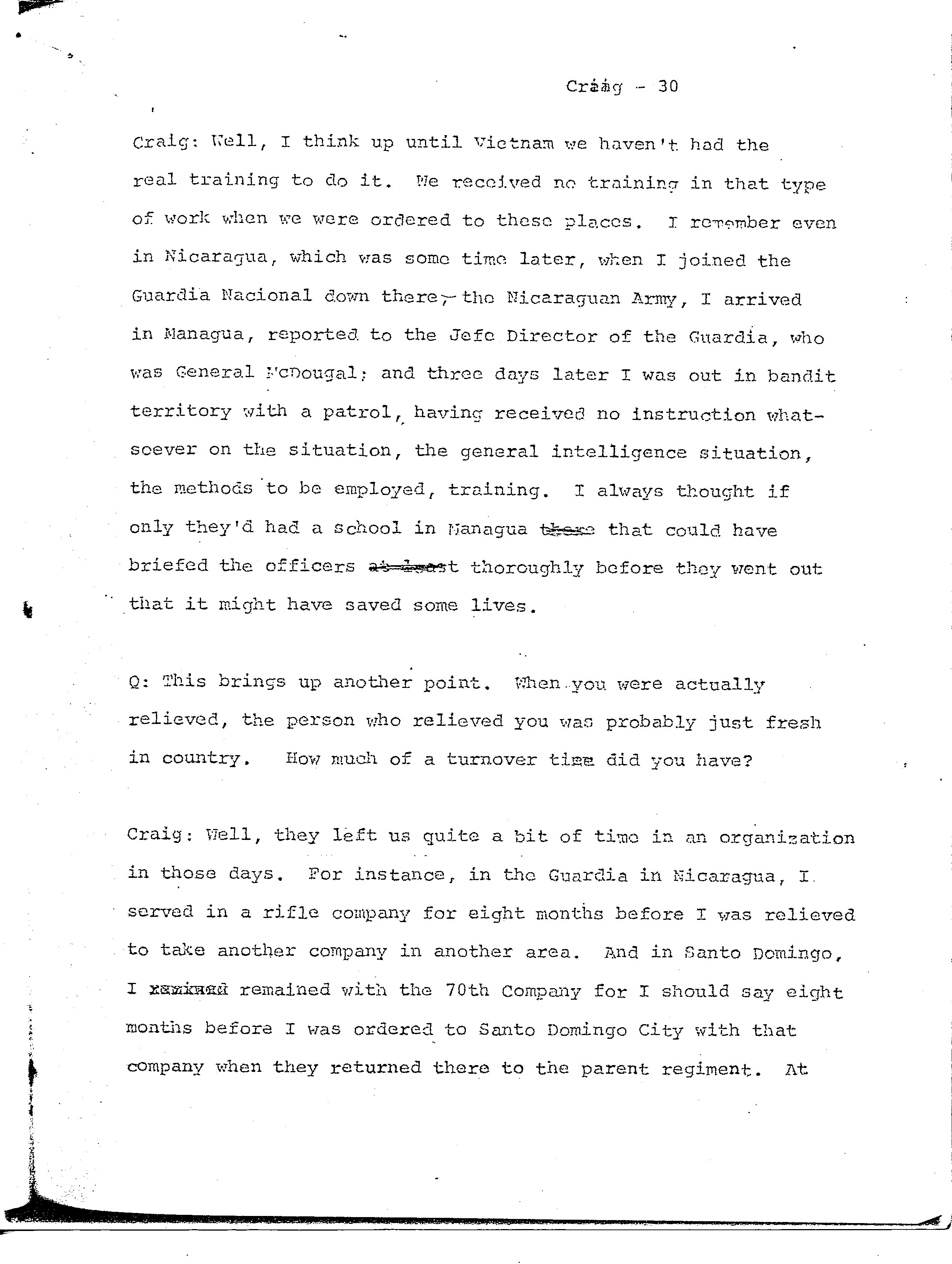 history transcript of Lieutenant General Edward A. Craig, USMC,