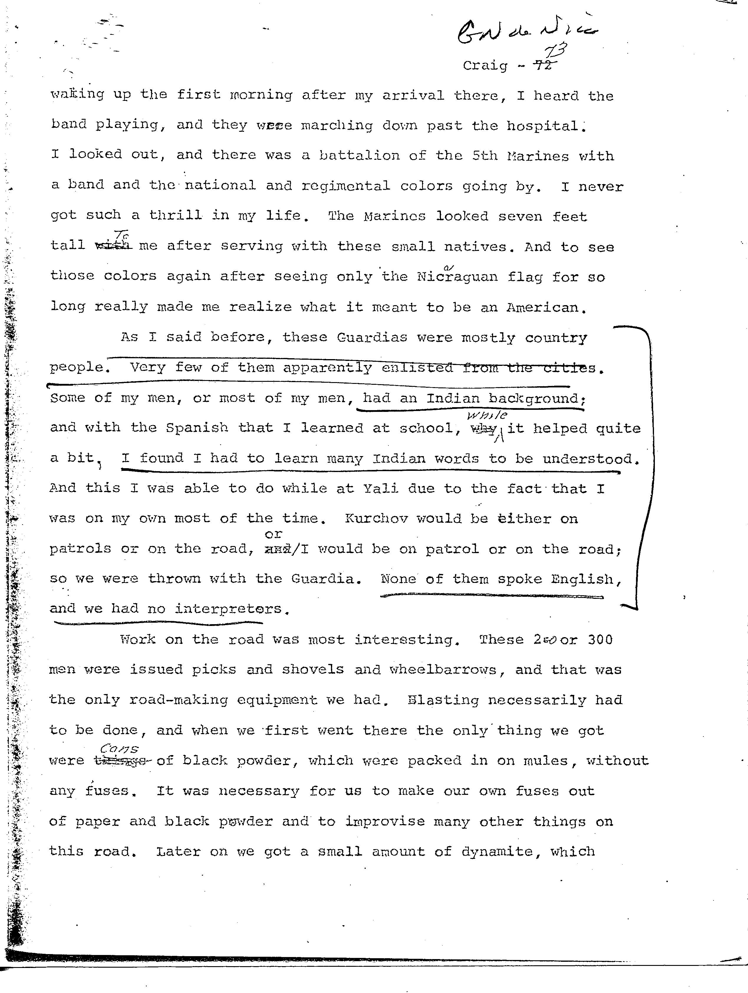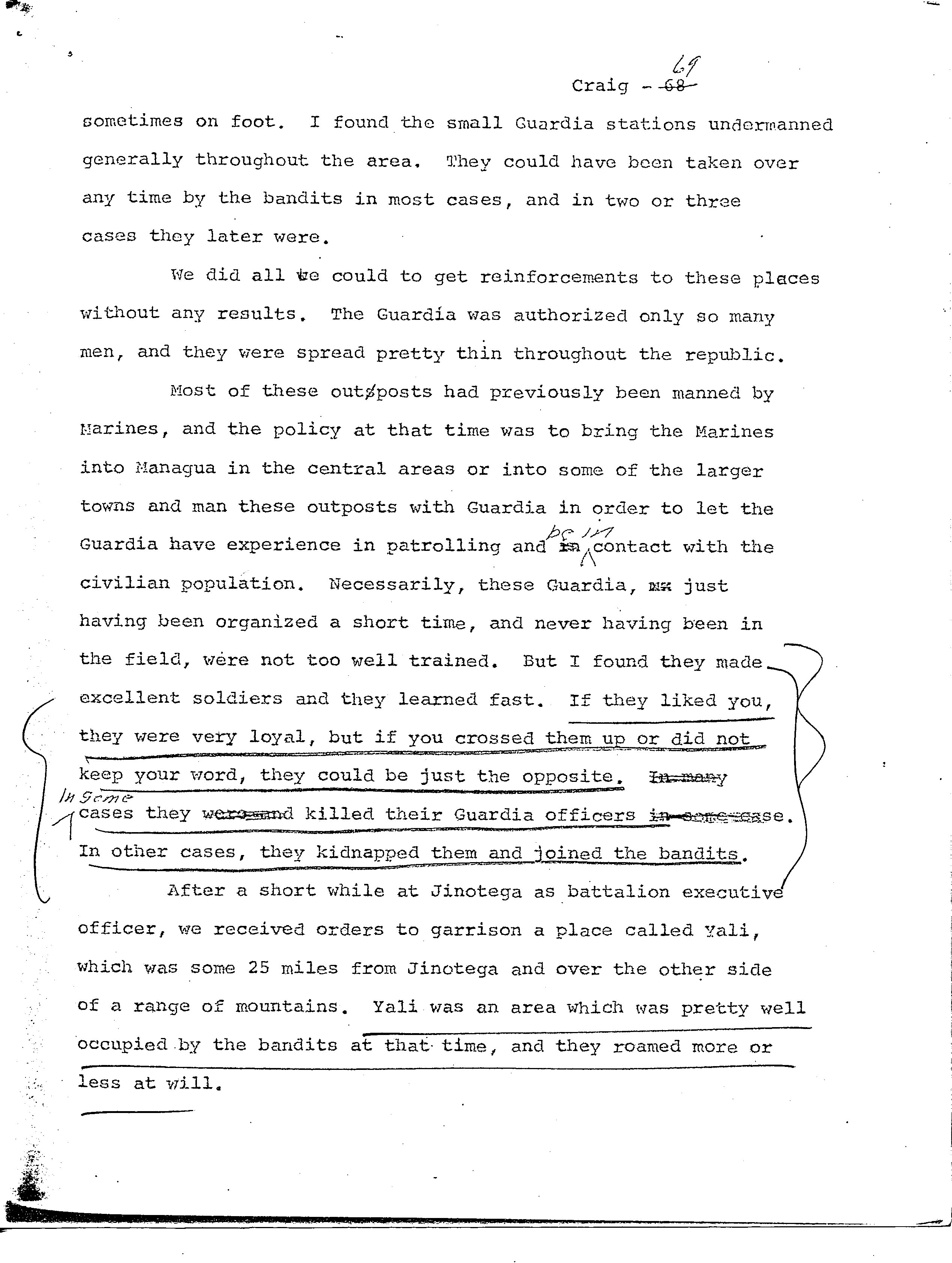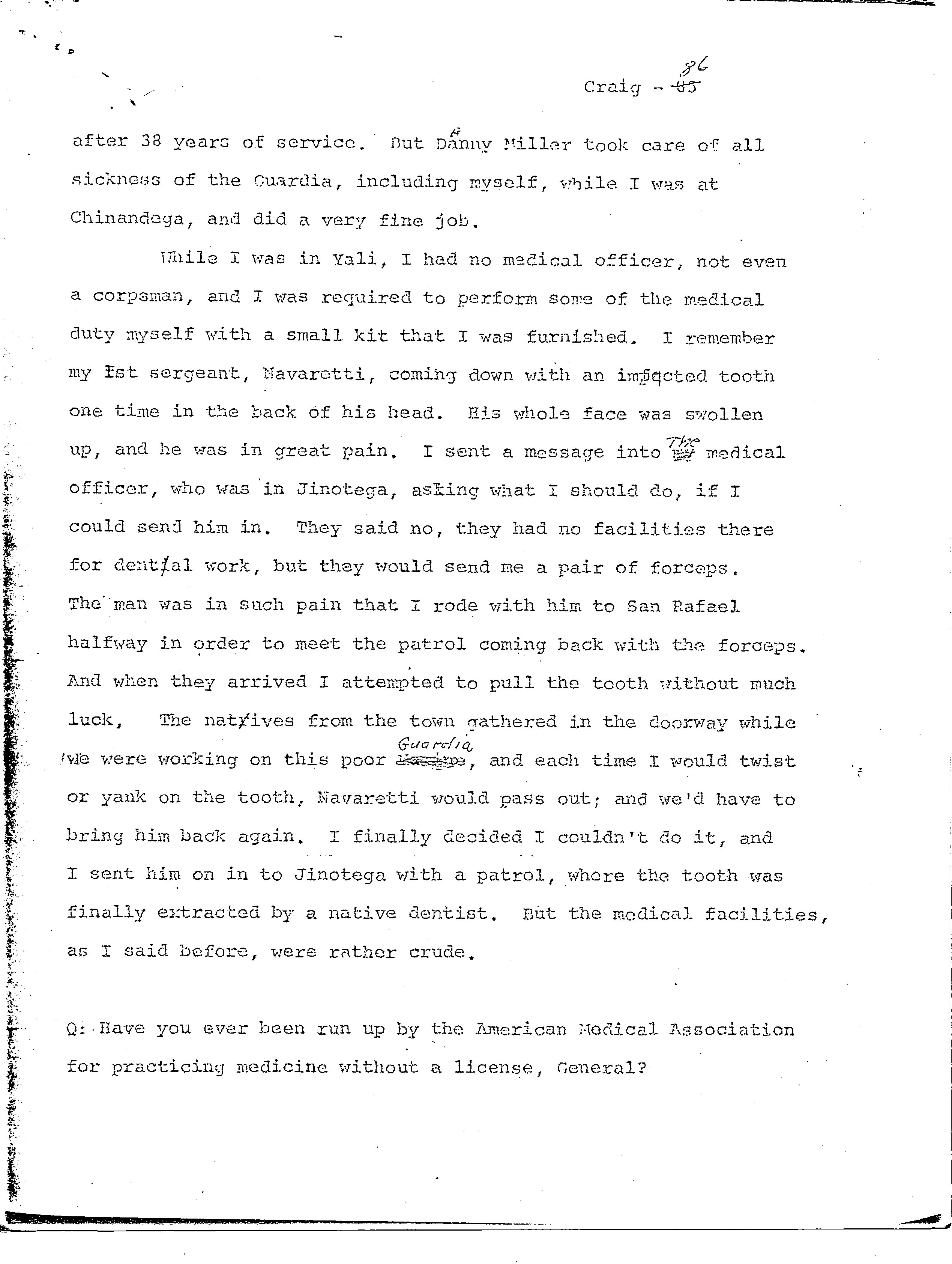 history transcript of Lieutenant General Edward A. Craig, USMC,