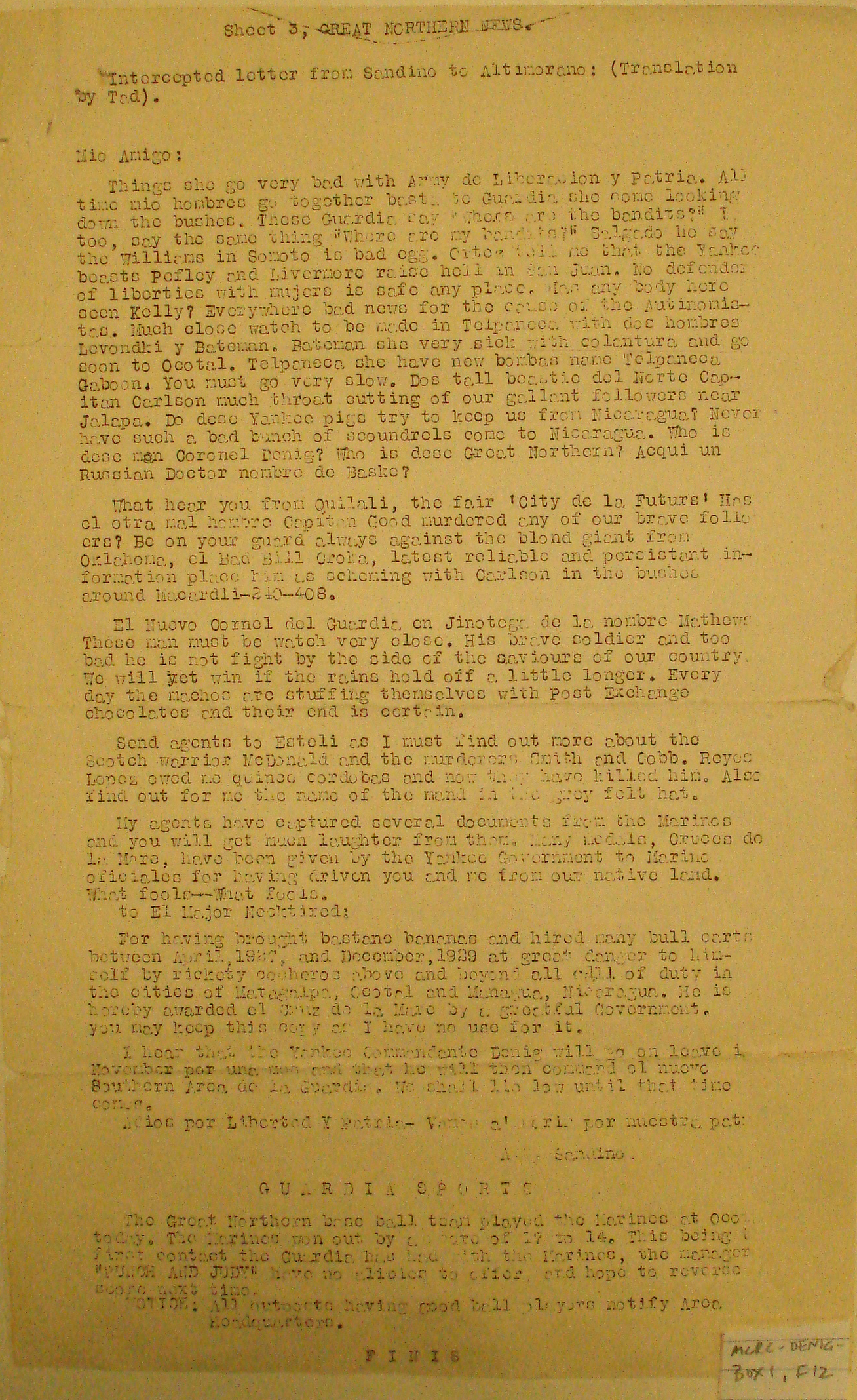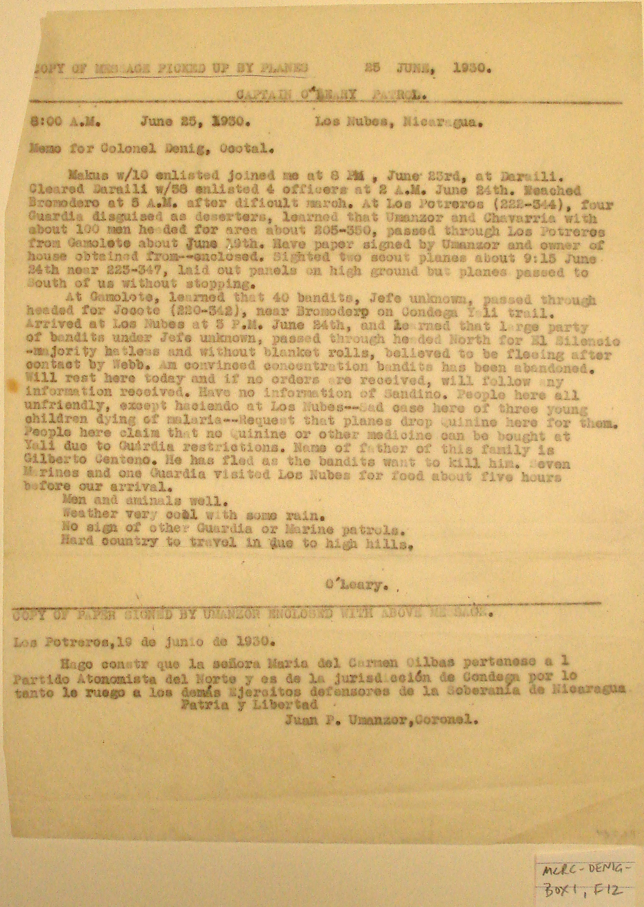 papers & photos in the Denig collection pertaining to Nicaragua.