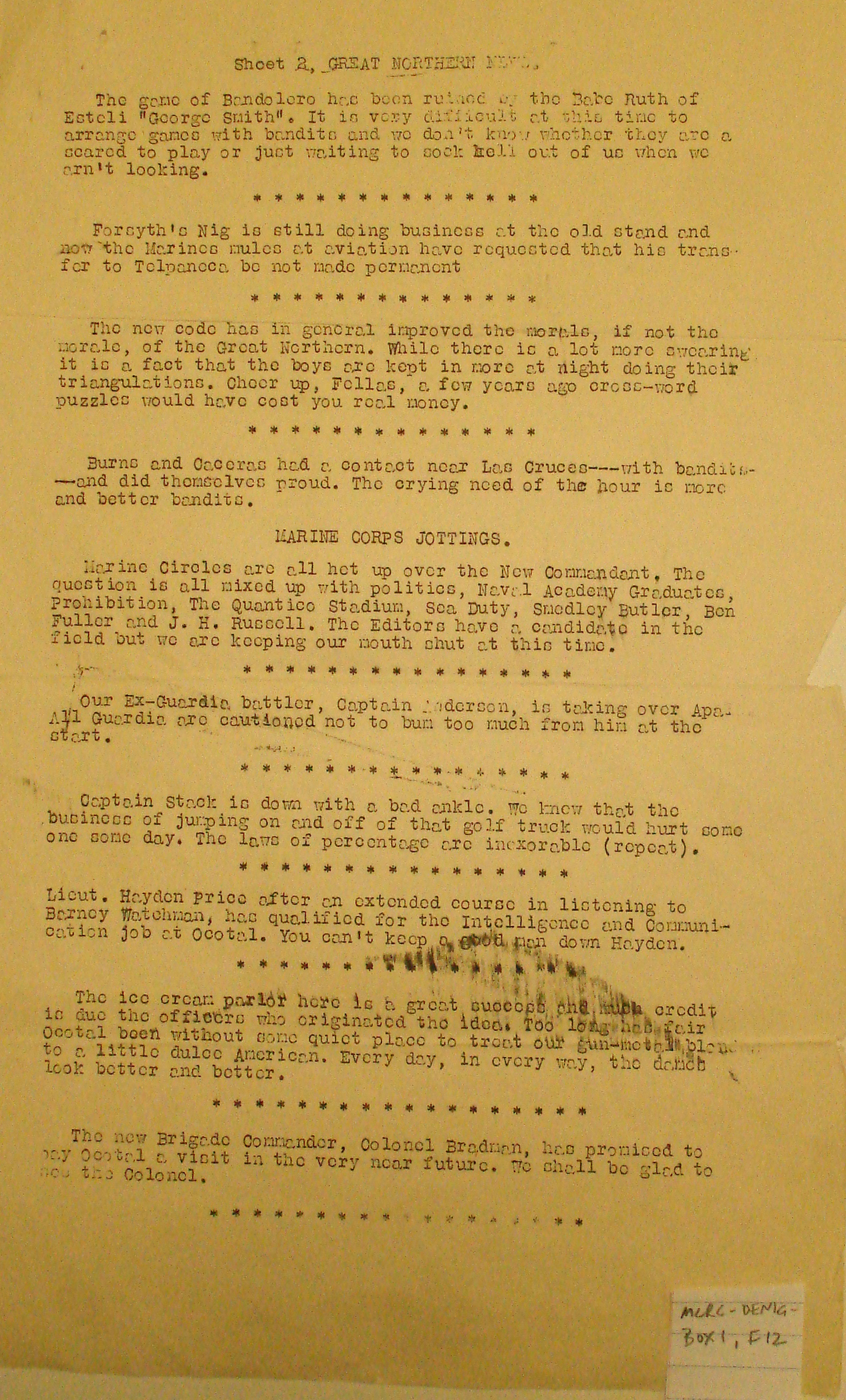 of Colonel Robert L. Denig, USMC, during his stint as Northern