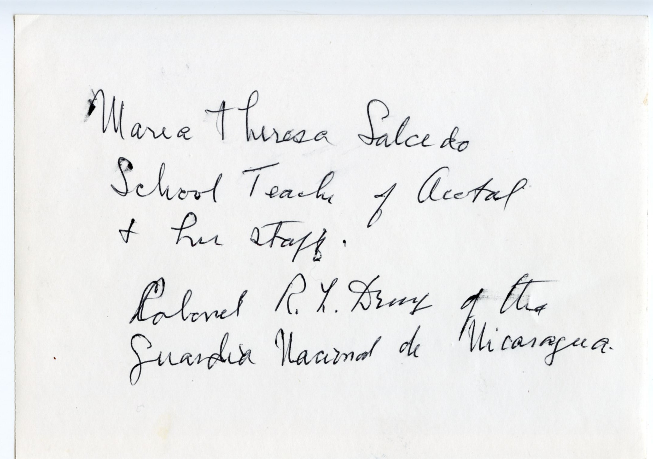Salcedo, School Teacher of Ocotal & her staff. Colonel