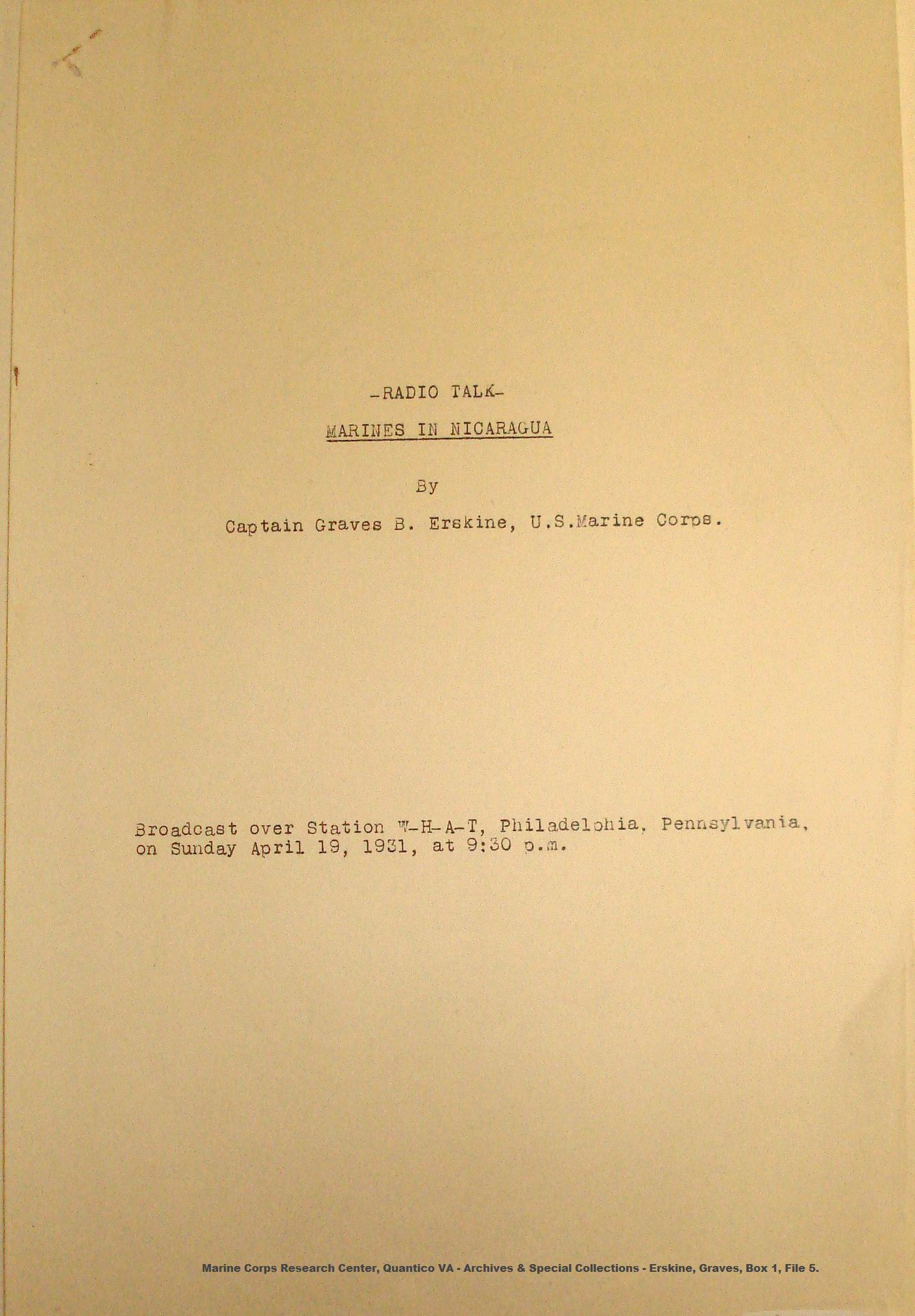 Capt. Graves B. Erskine, "Radio Talk: Marines in