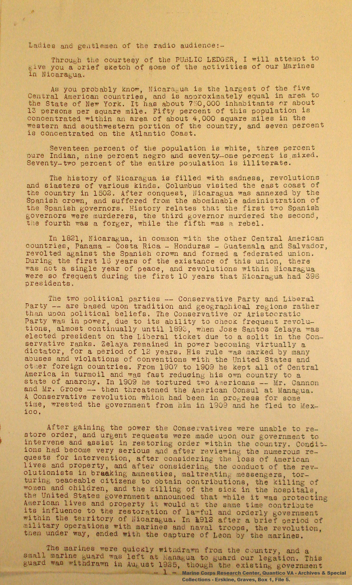 Nicaragua" (broadcast over station WHAT Philadelphia,