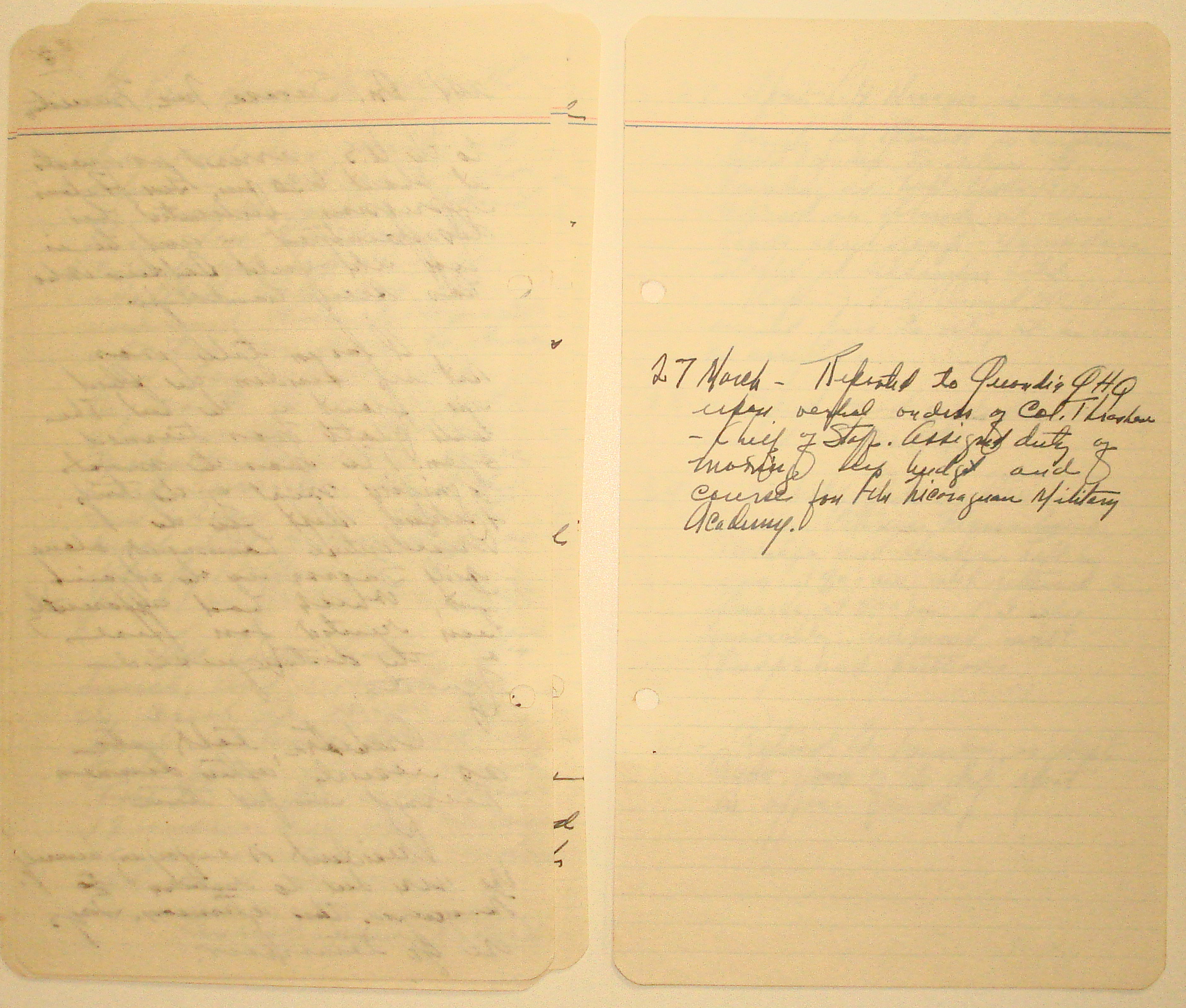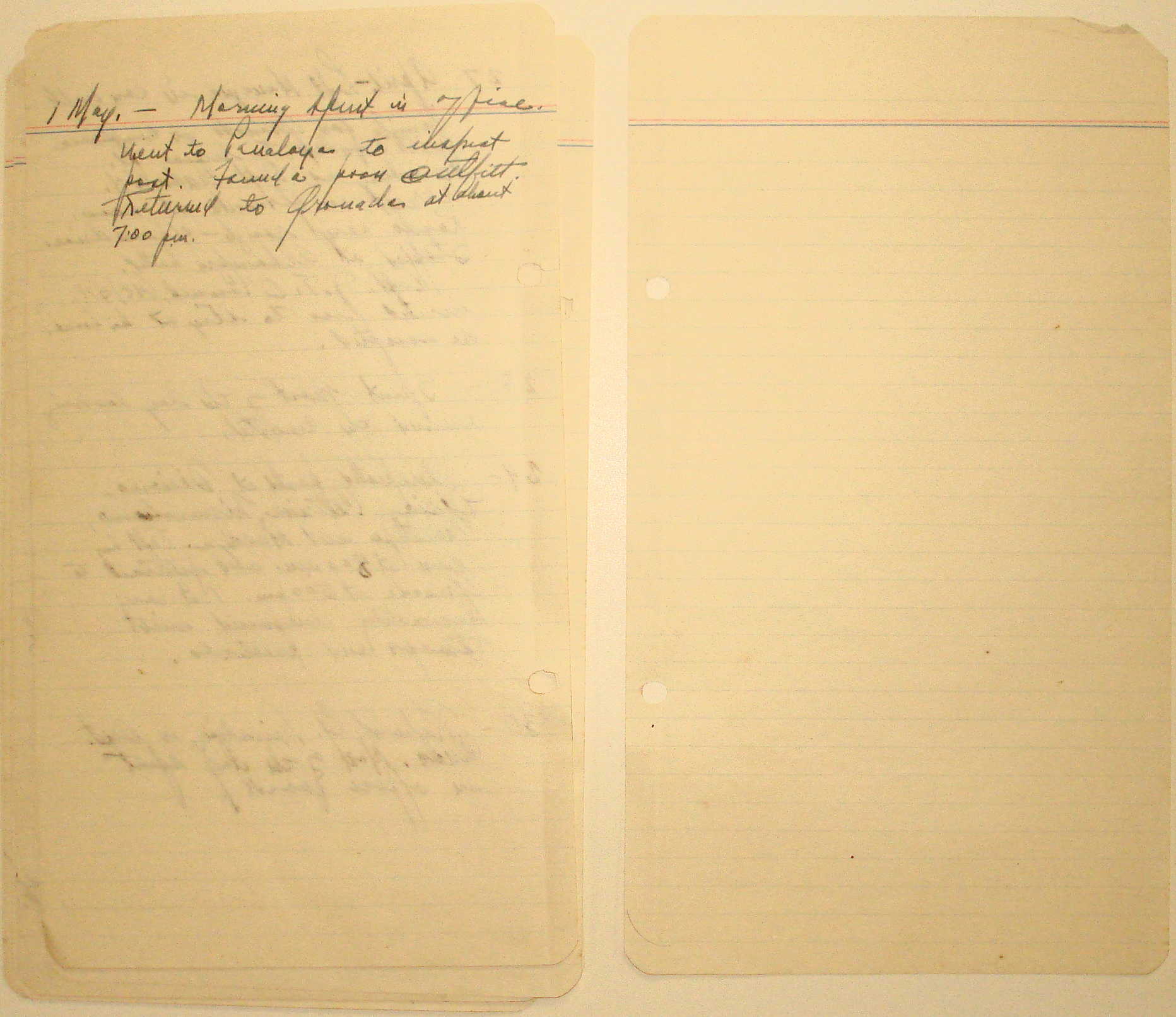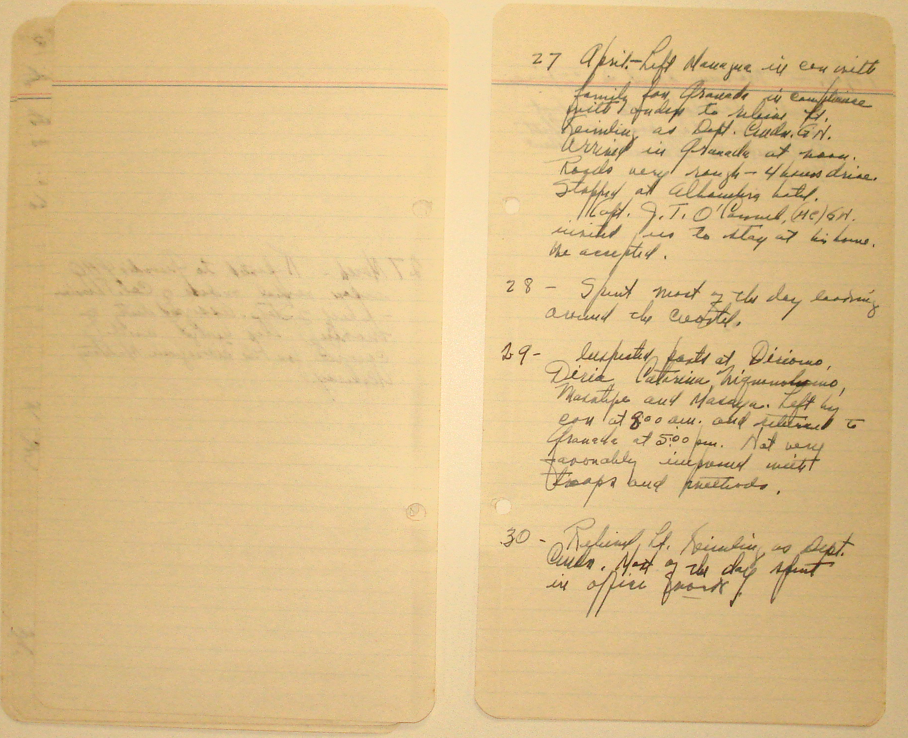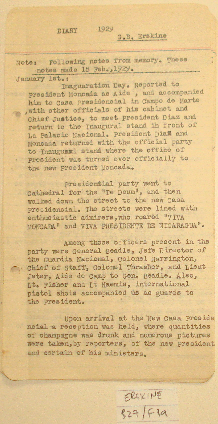 1, 1929. Diary of Capt. G. B. Erskine as aide to