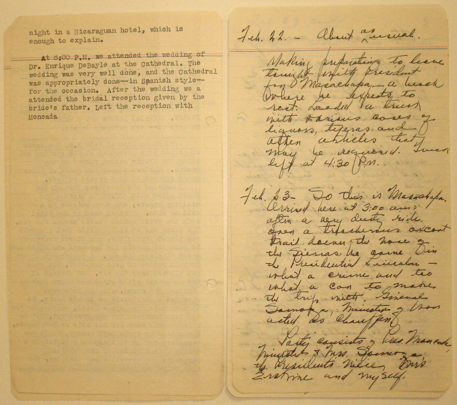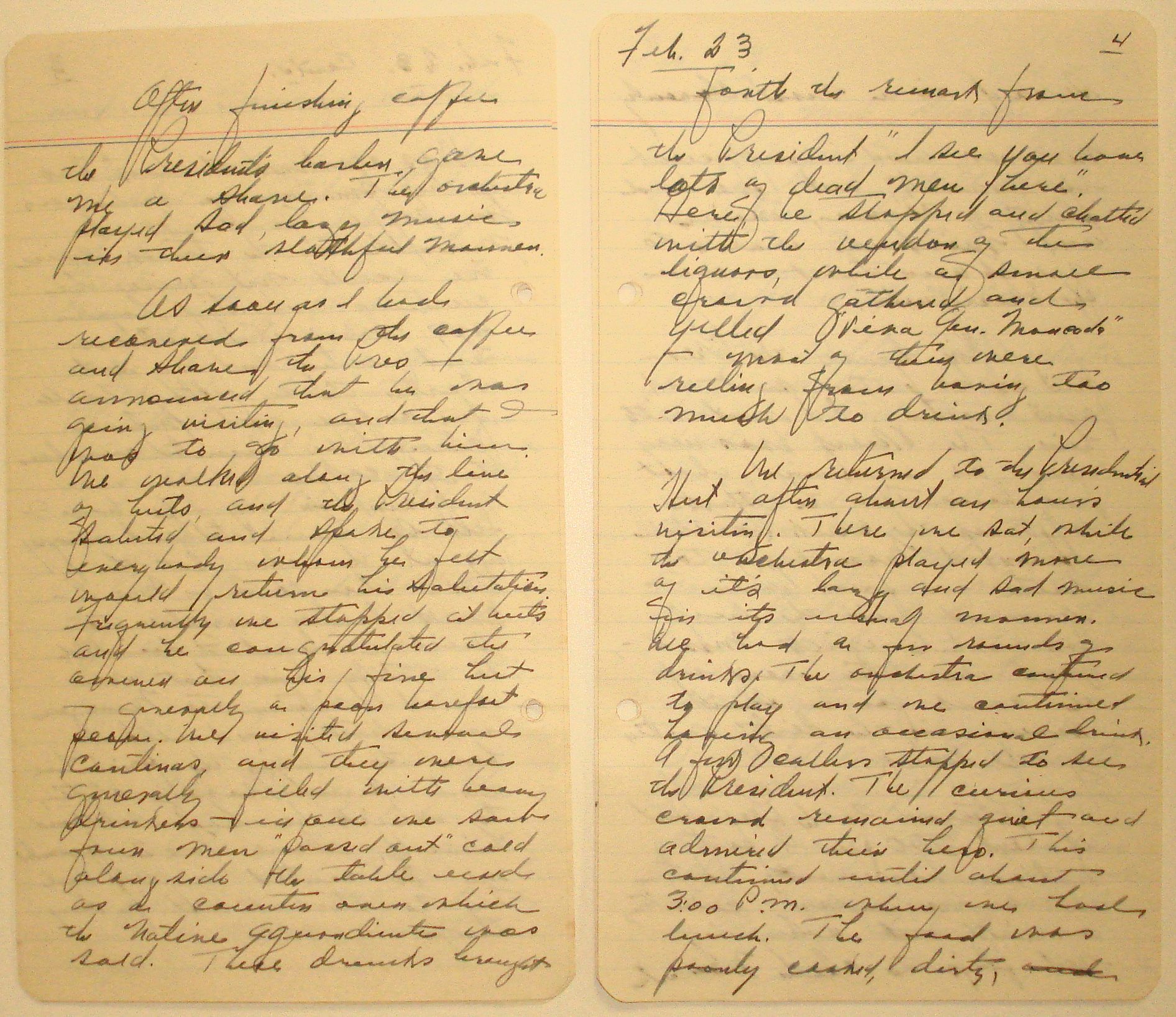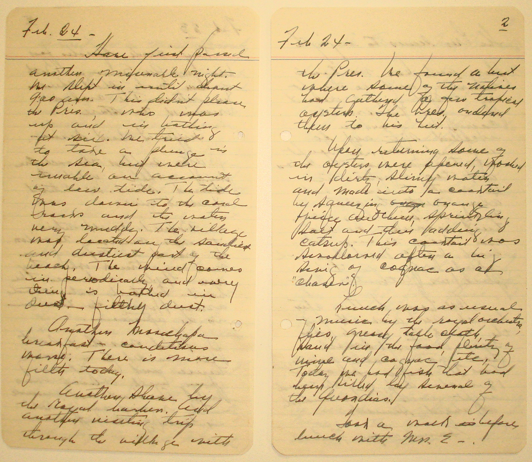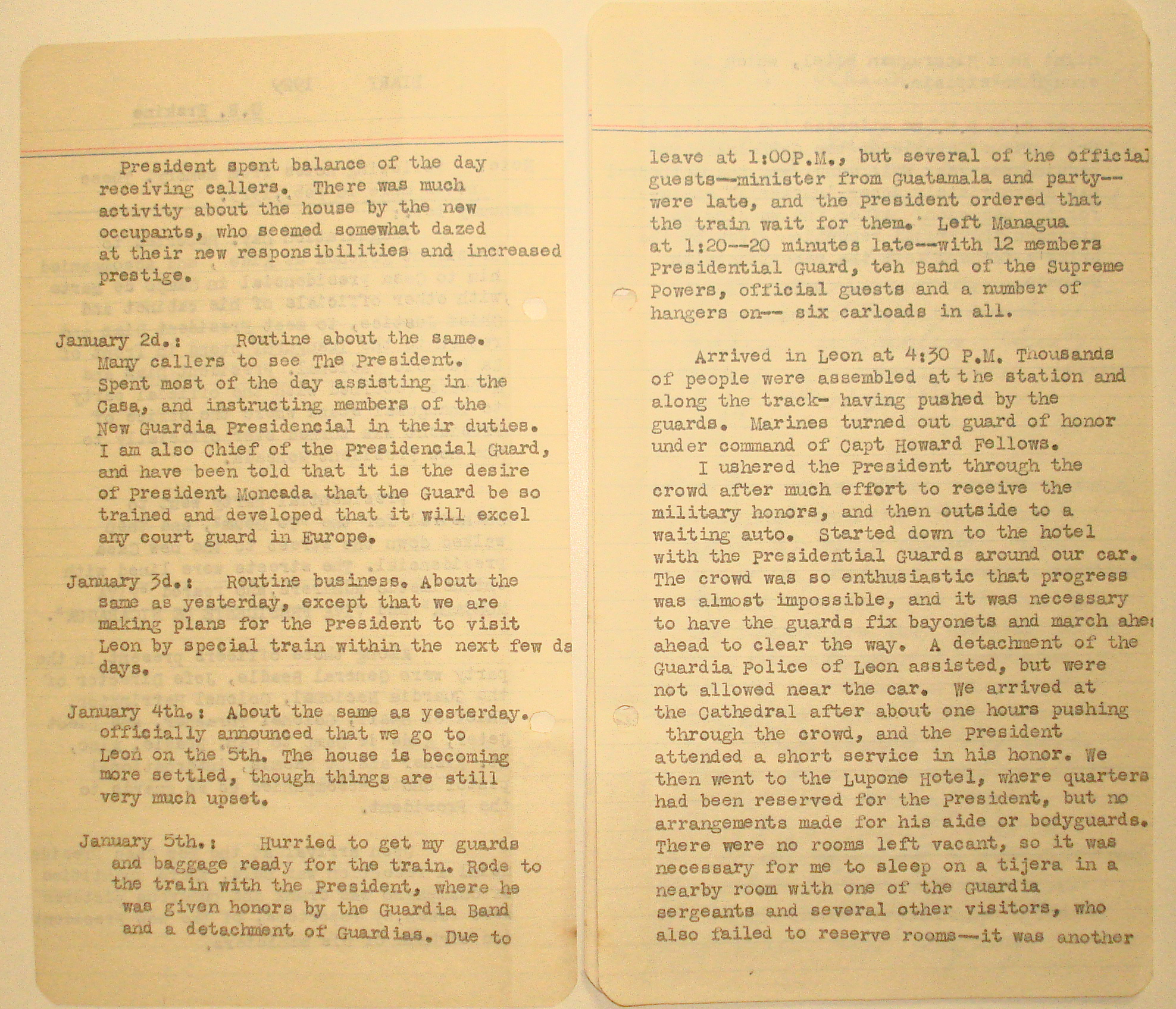 1, 1929. Diary of Capt. G. B. Erskine as aide to