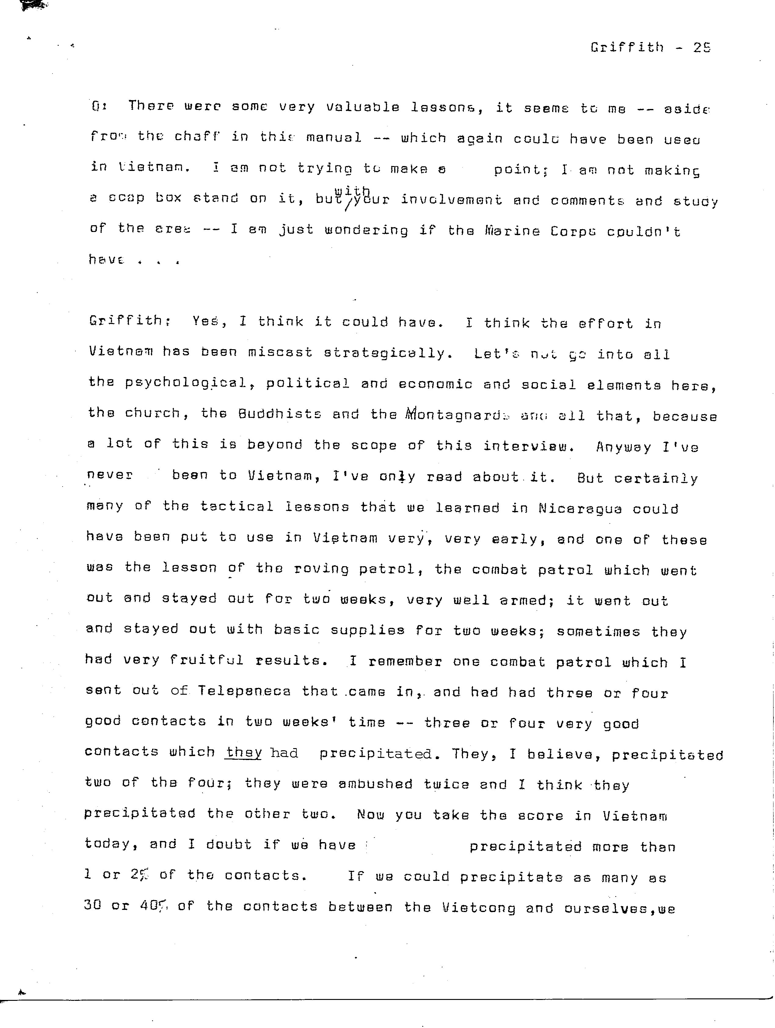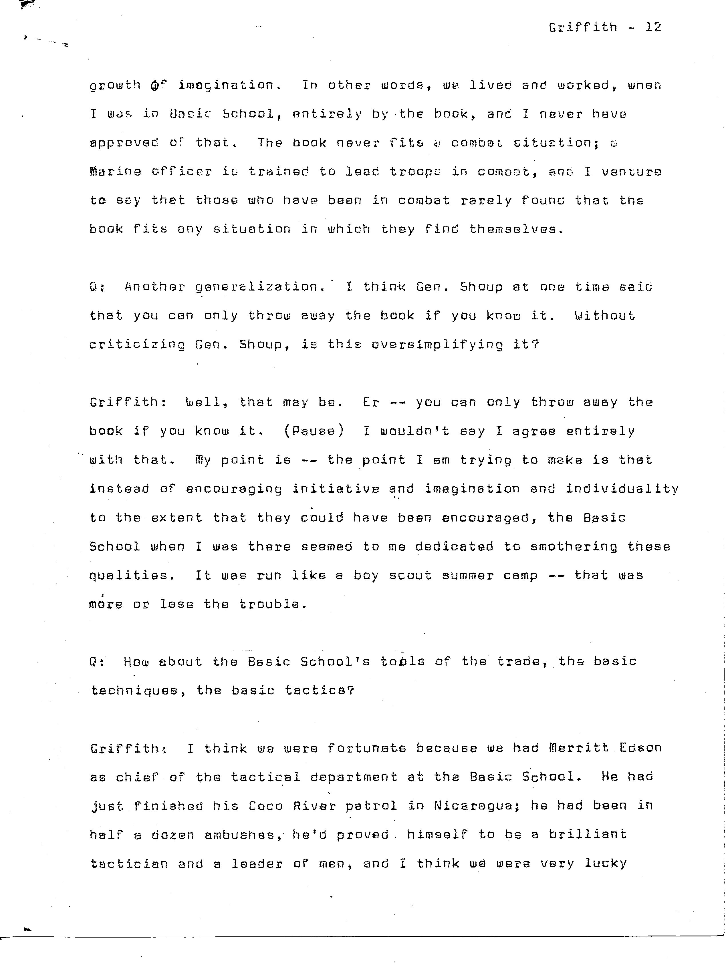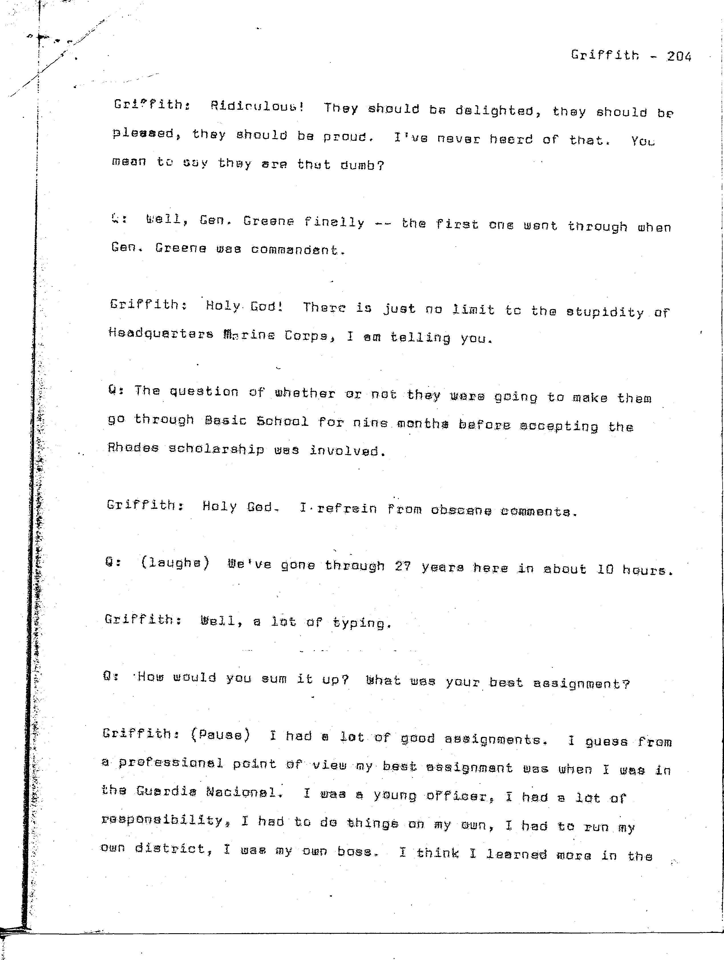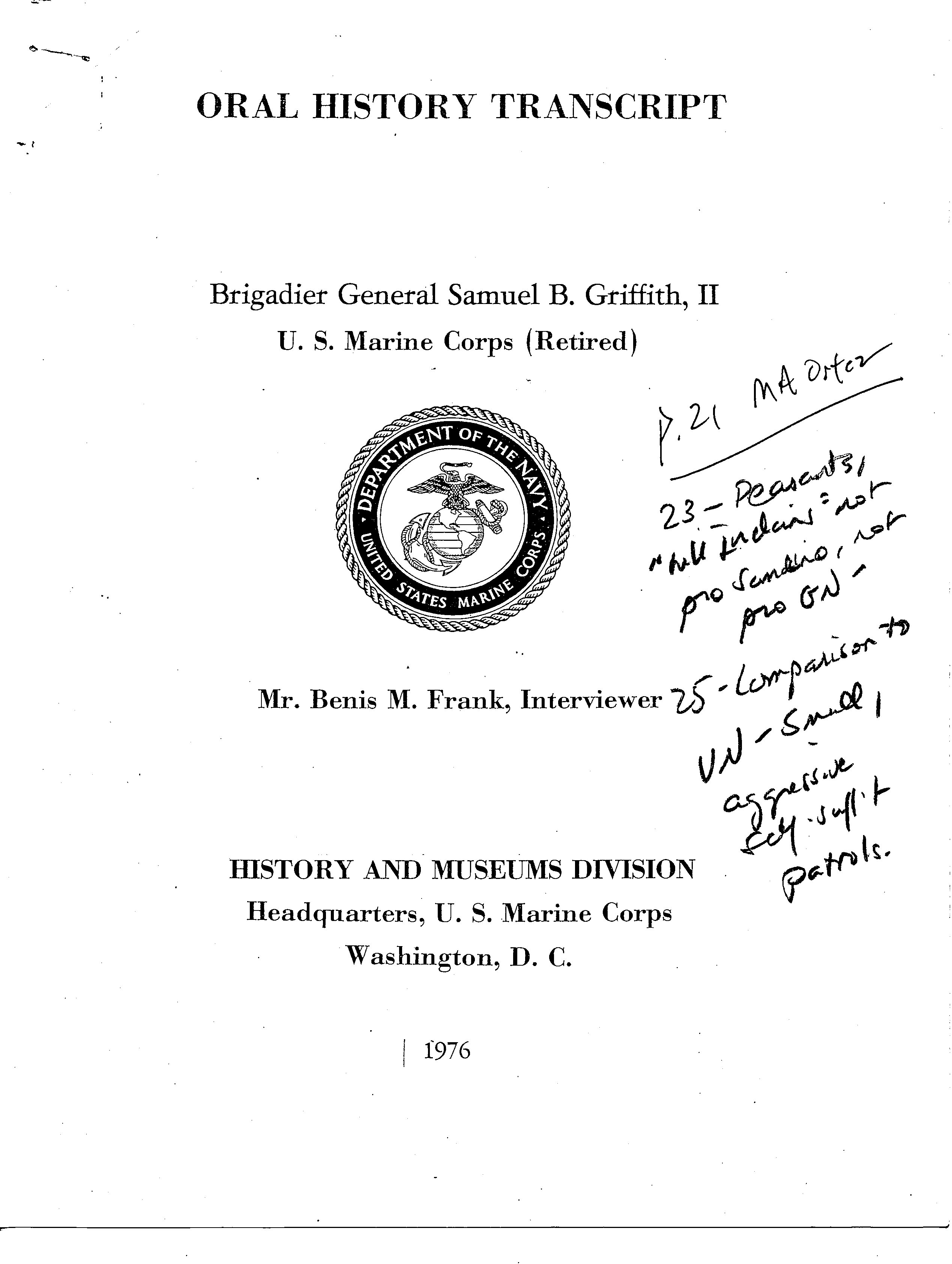 history transcript of Brigadier General Samuel B. Griffith, II,