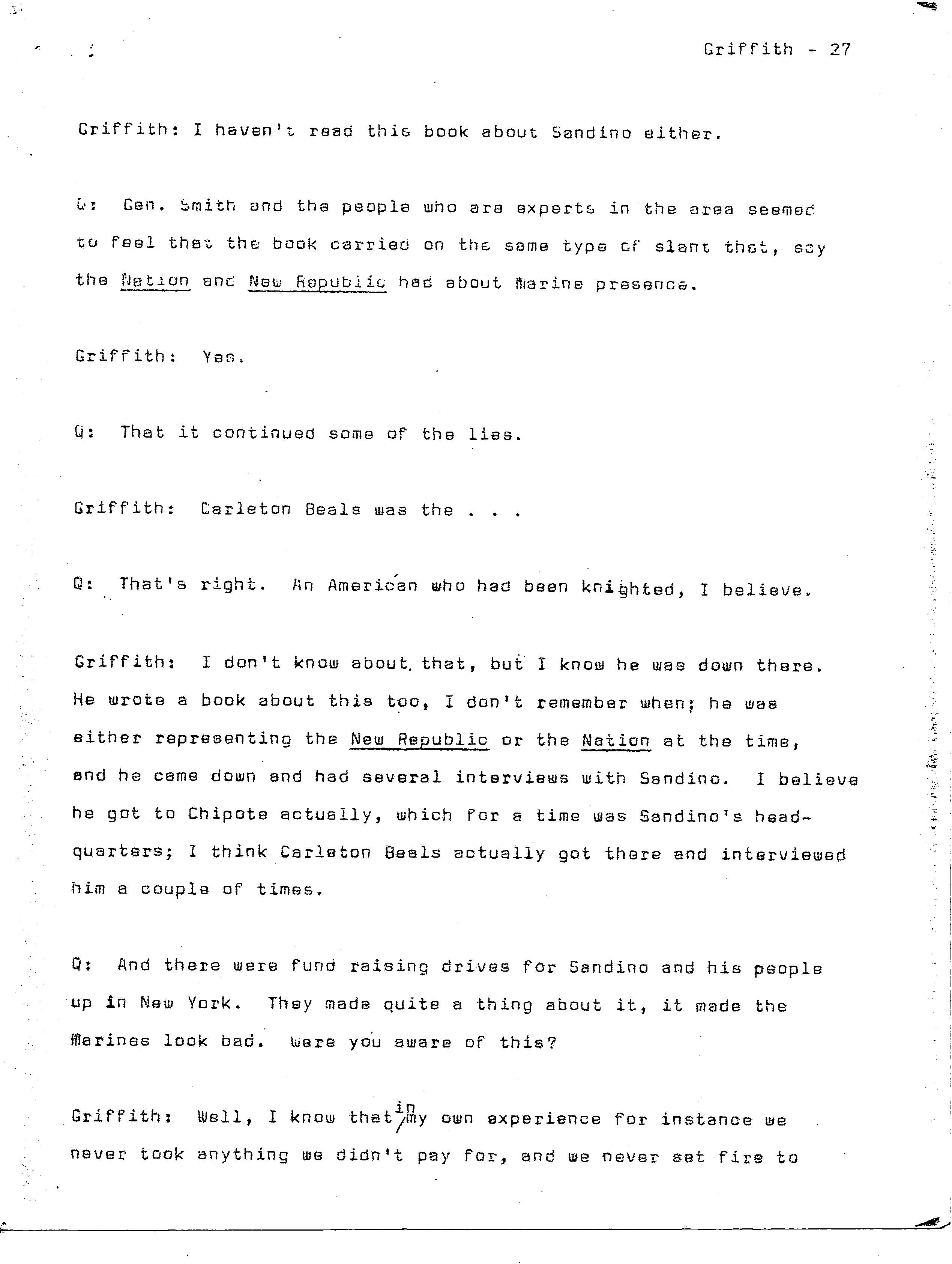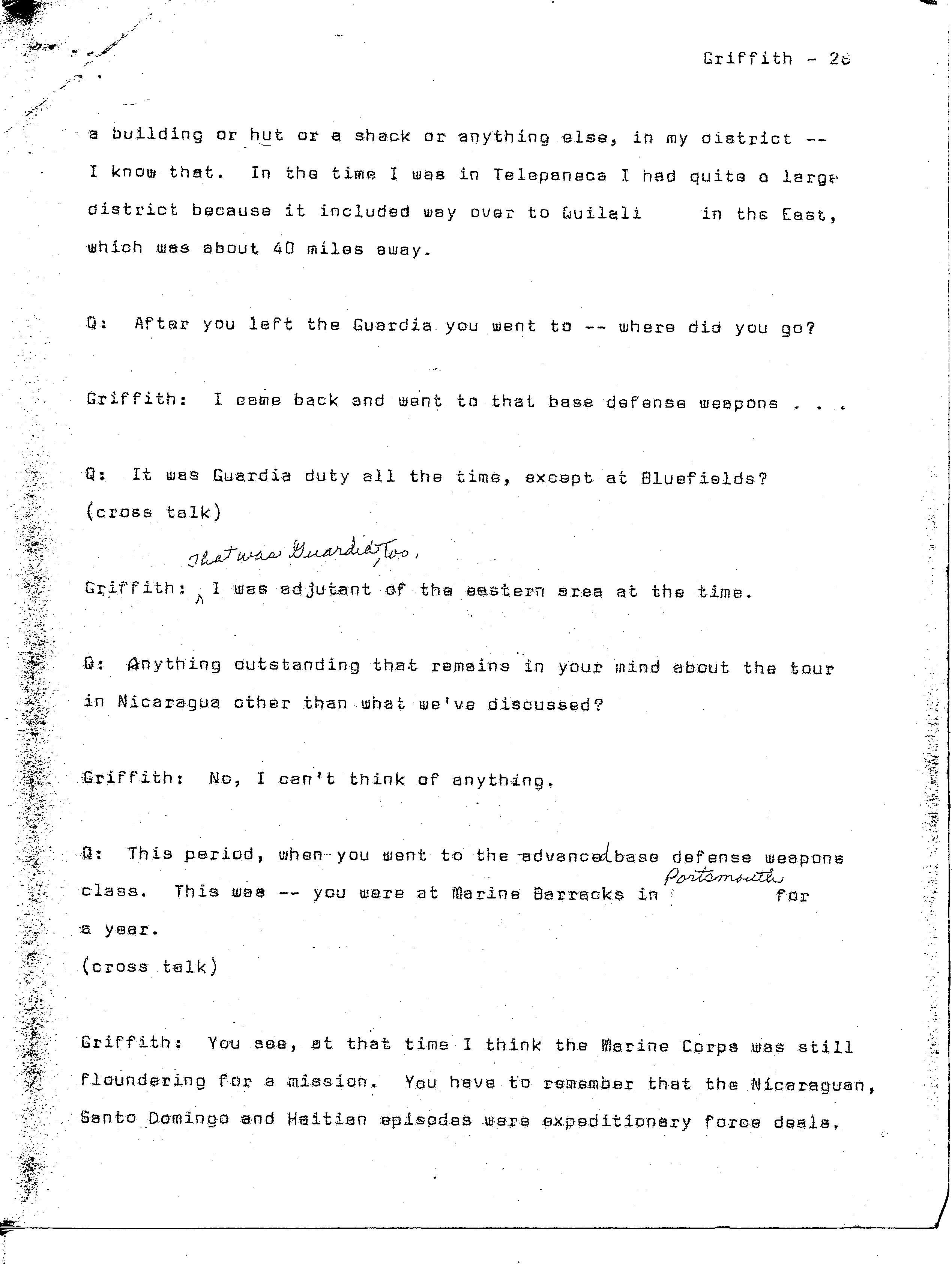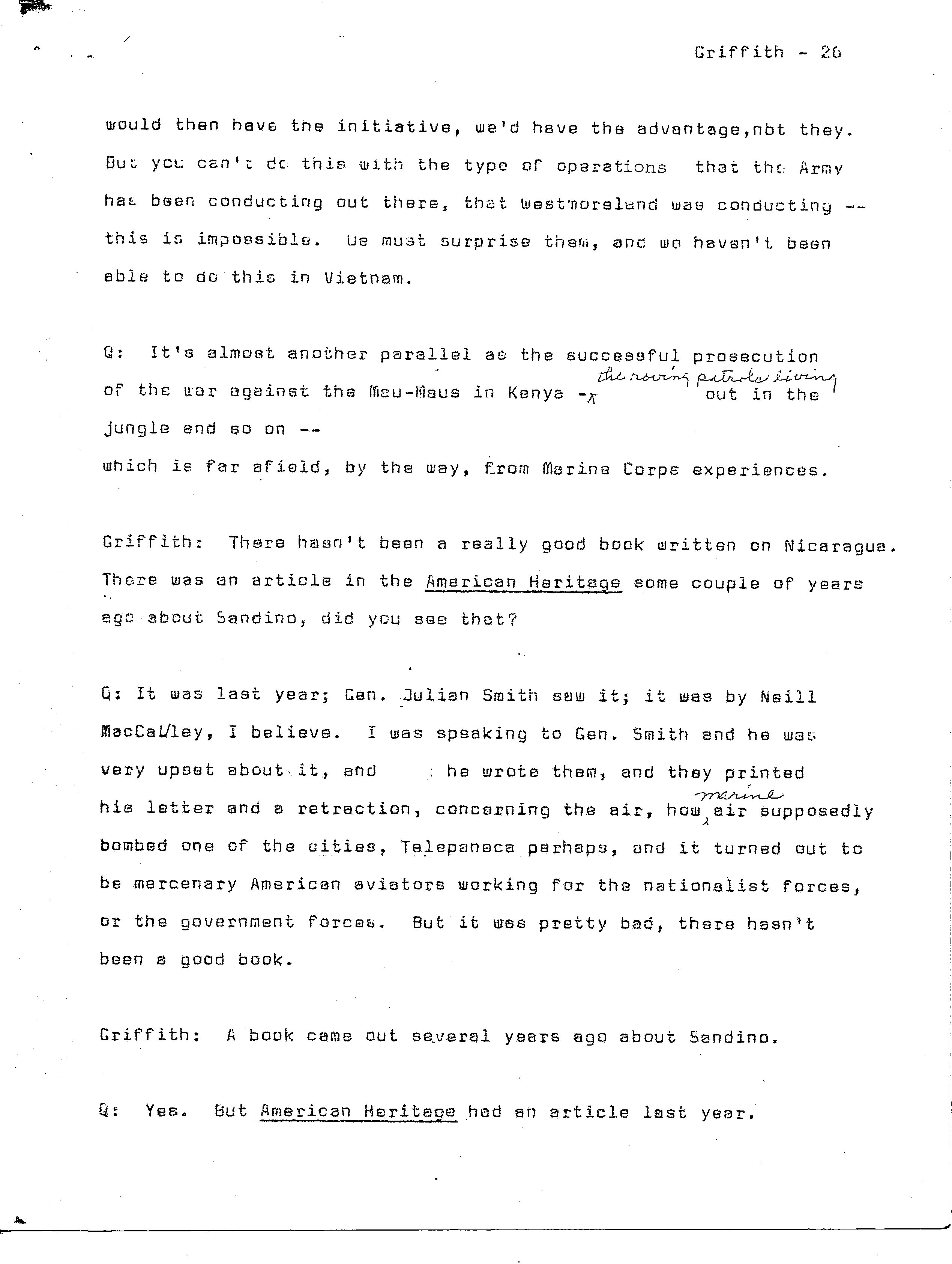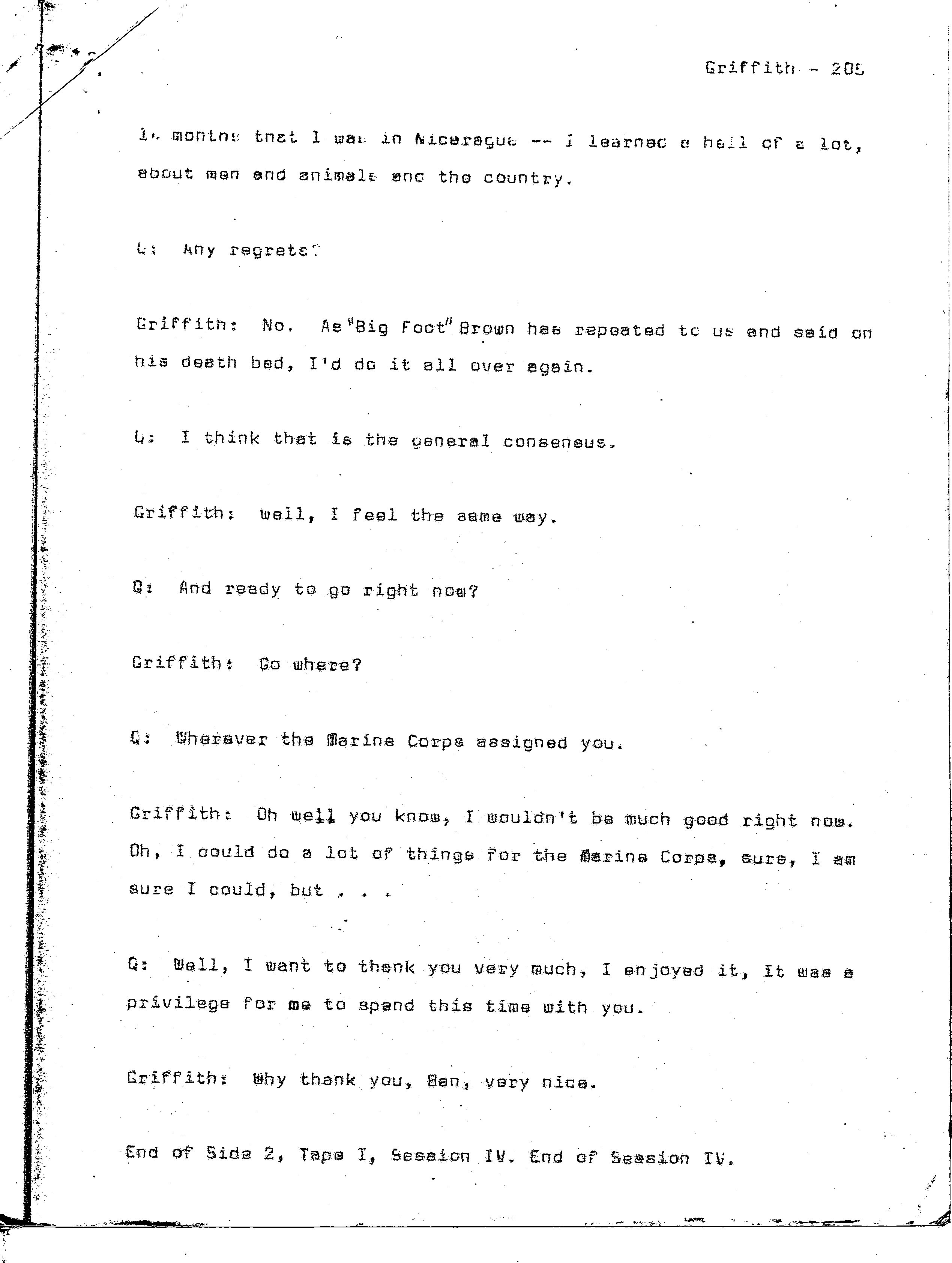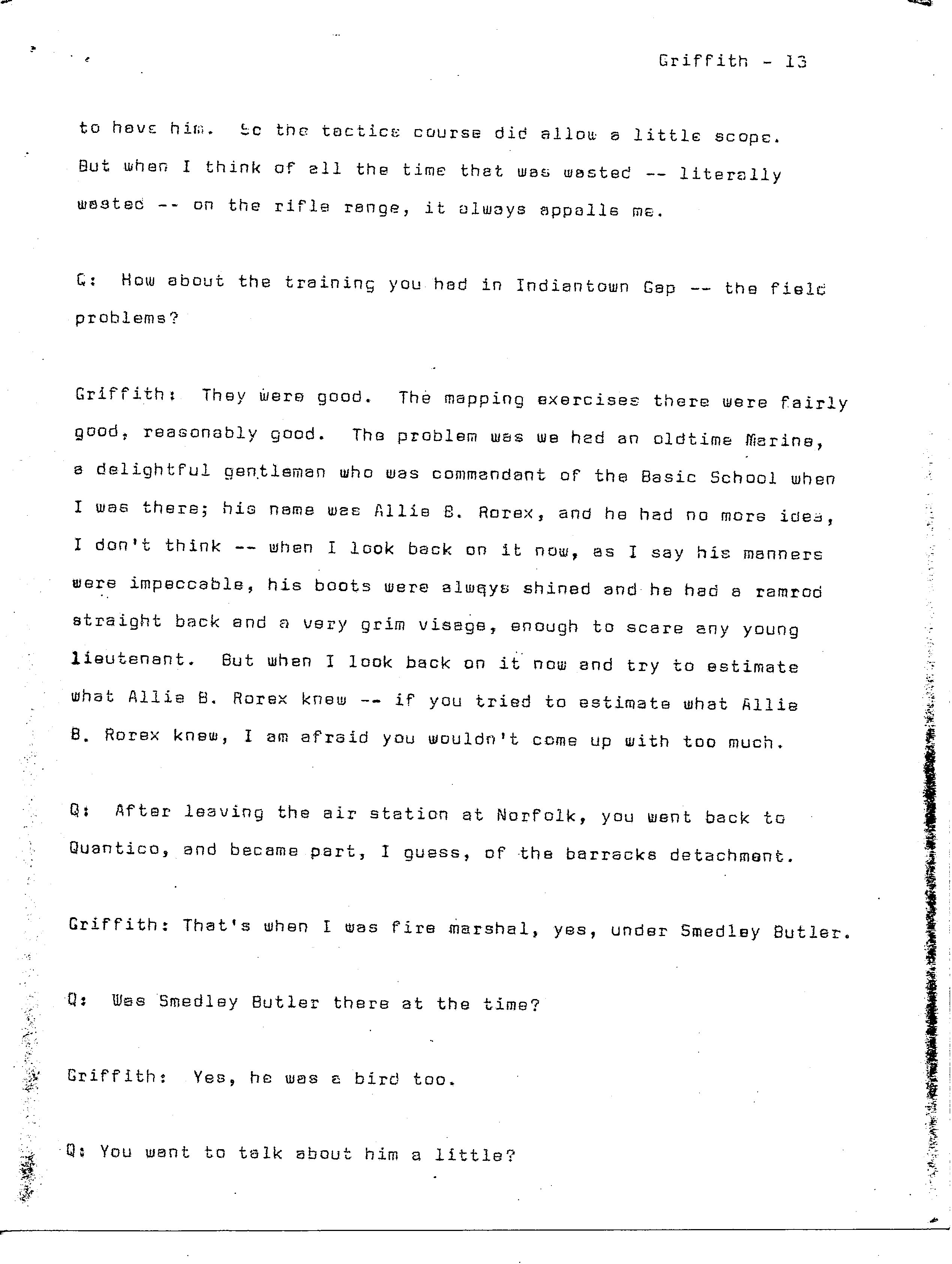 history transcript of Brigadier General Samuel B. Griffith, II,