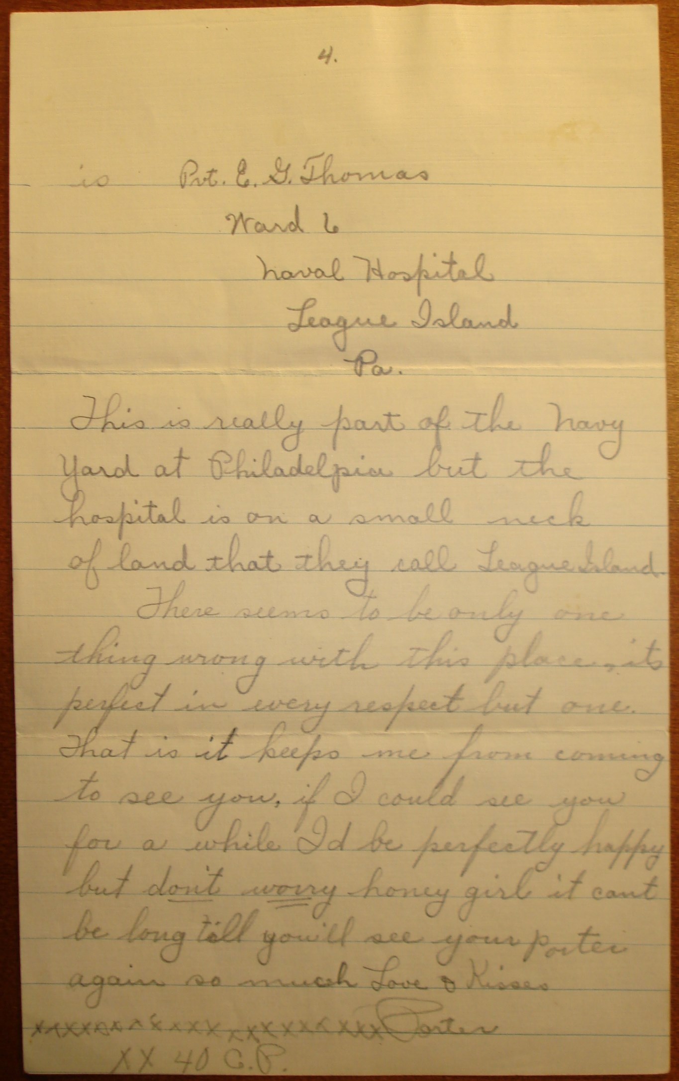 address is Pvt. E.G. Thomas Ward 6 Naval Hospital League