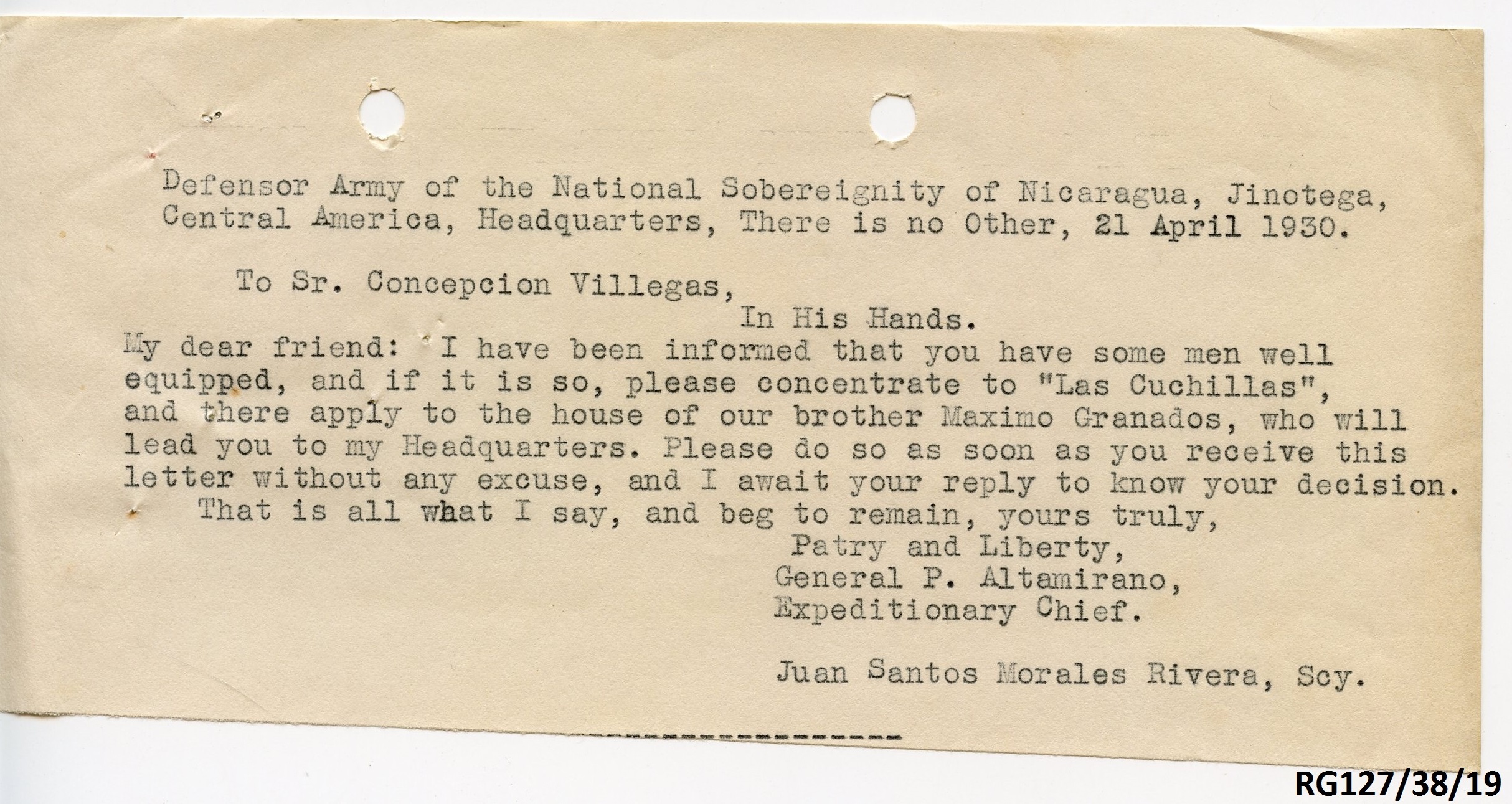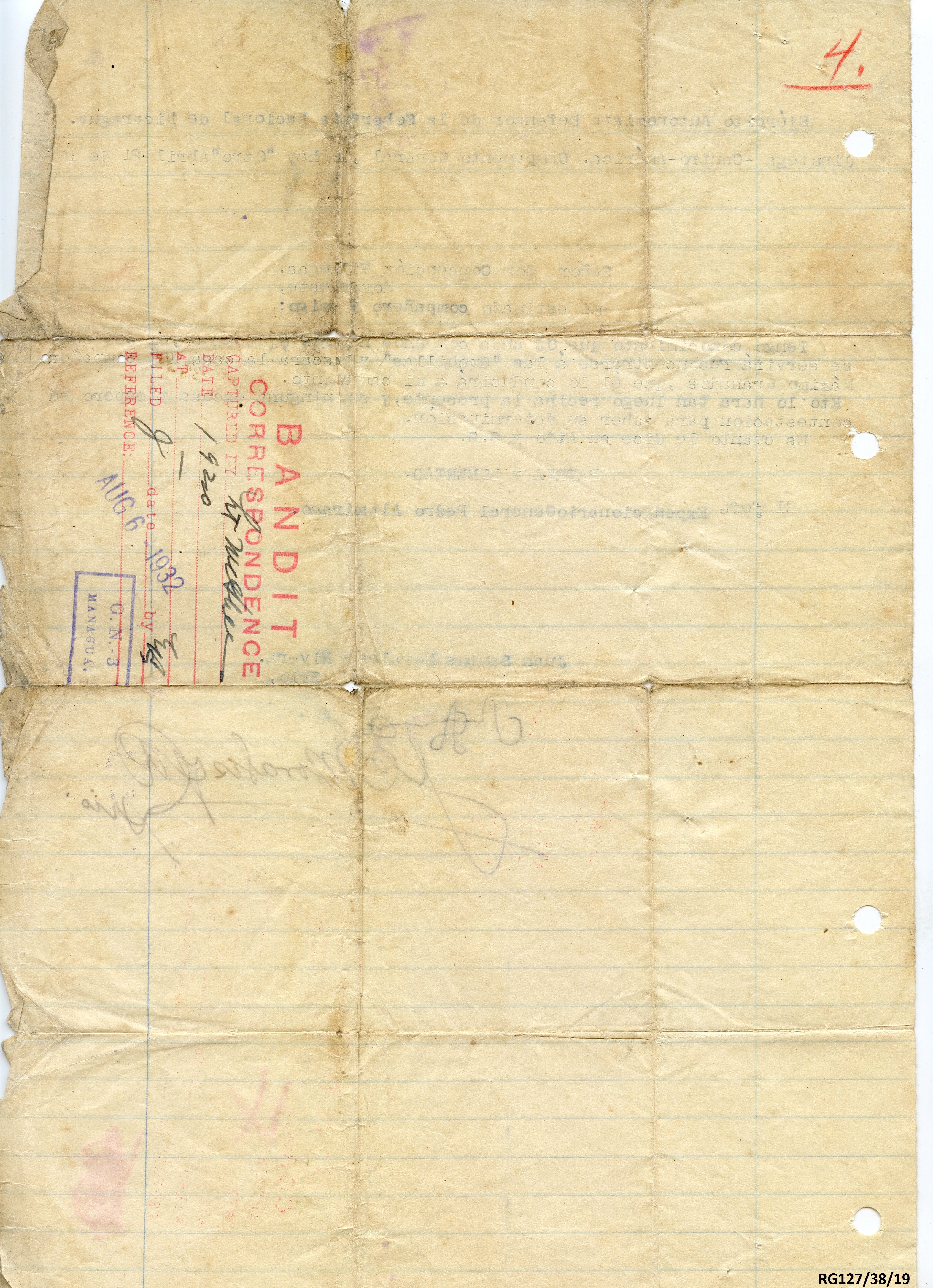 • Original document, RG127/38/19. Captured by Lt. McGhee (MCG).